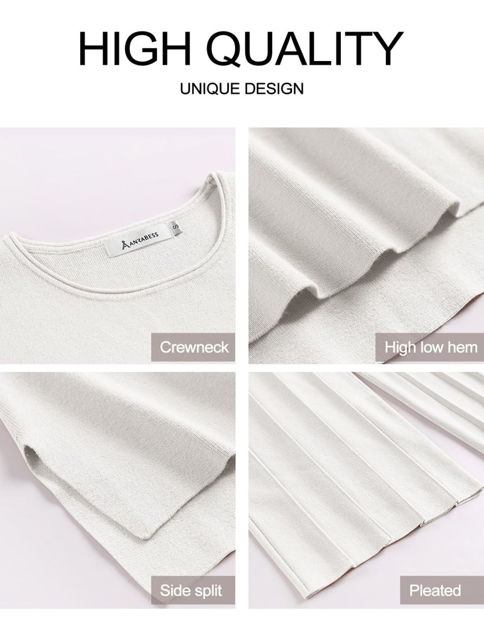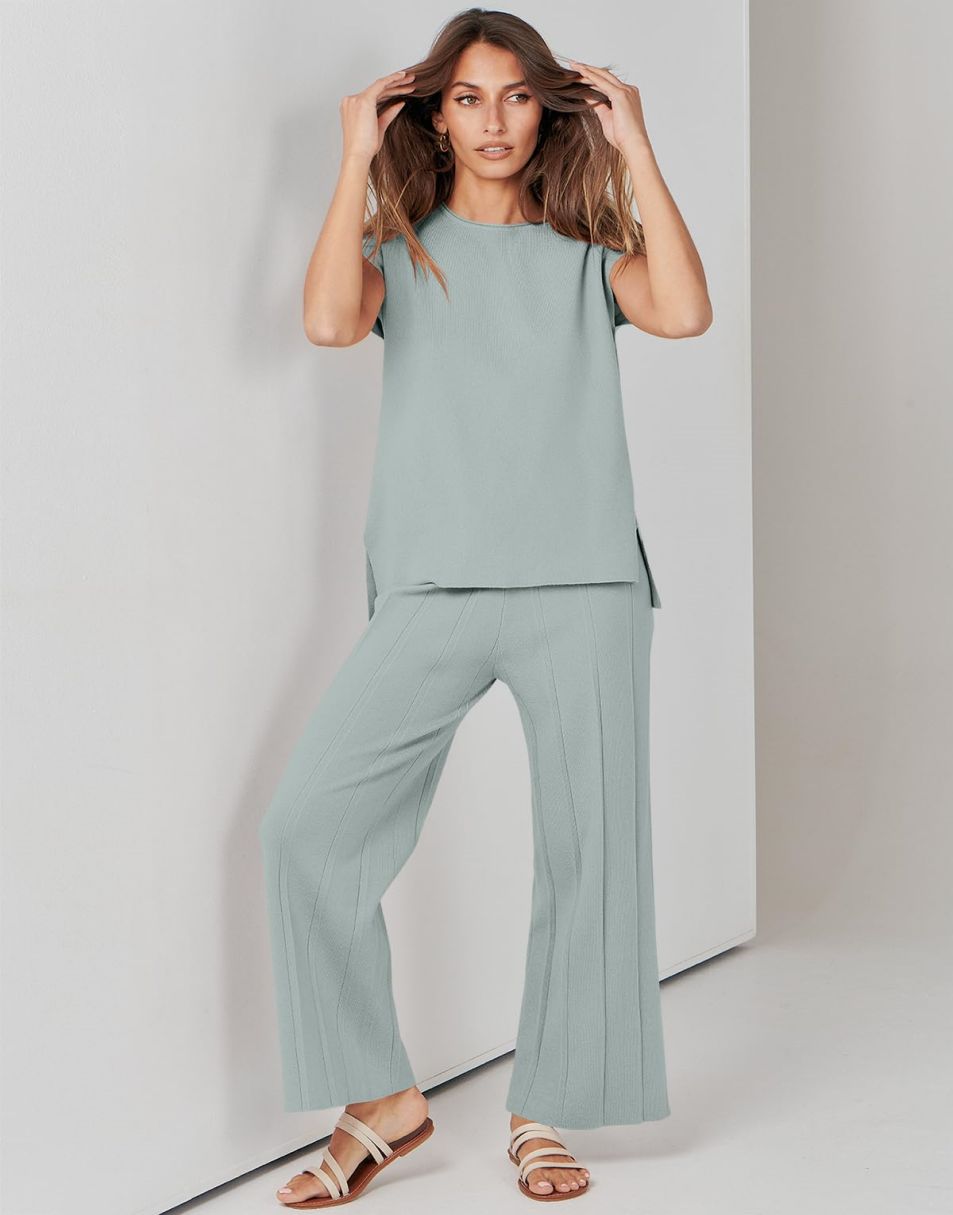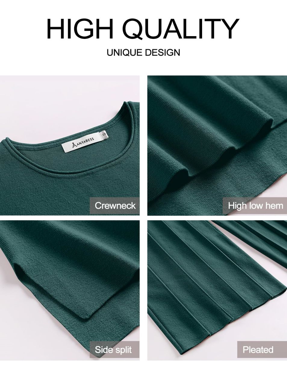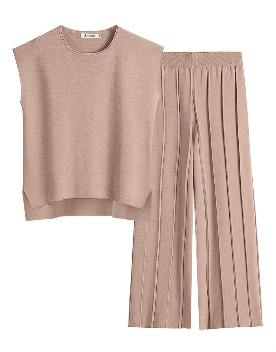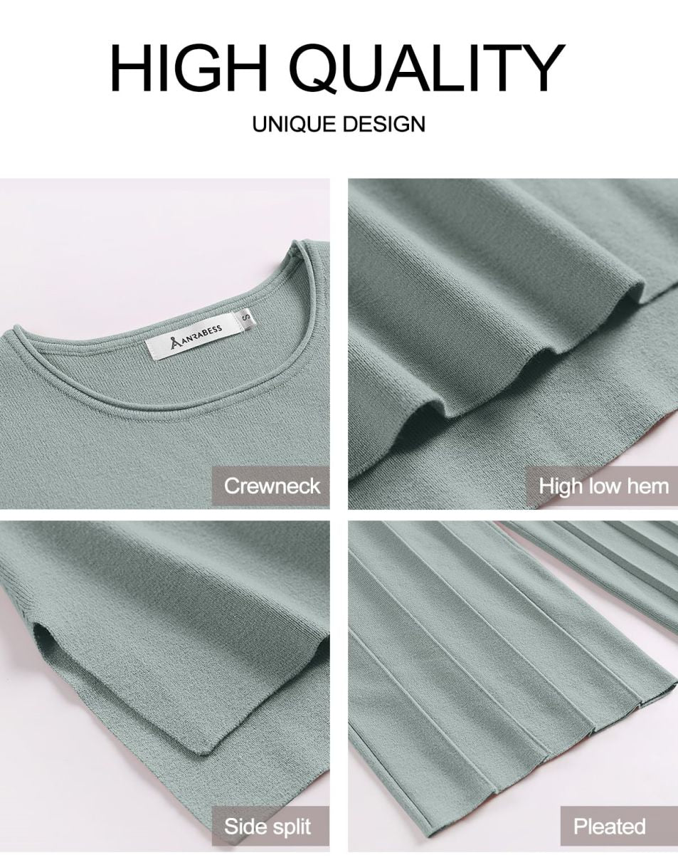 • ANRABESS Two Piece Outfits for Women Summer Sweater Sets Knit Pullover Tops Elastic Waisted Pants Lounge Sets Tracksuit