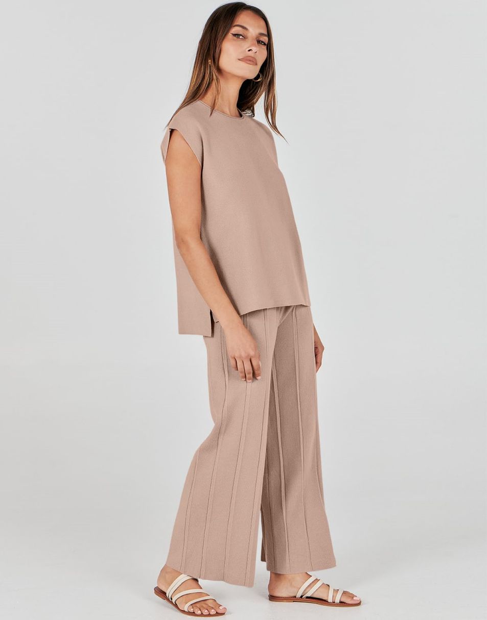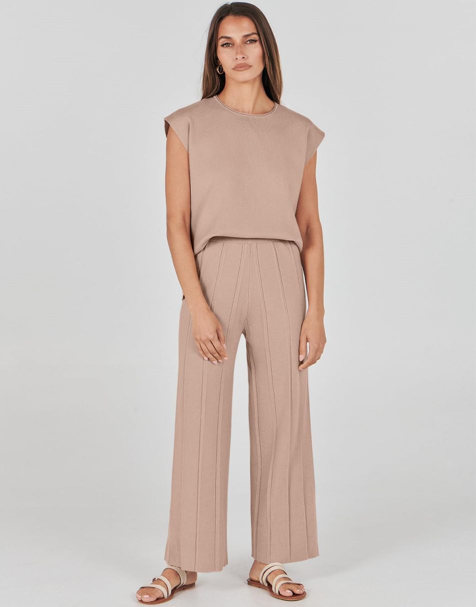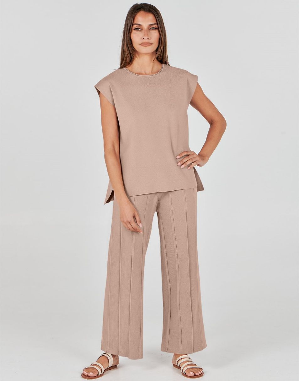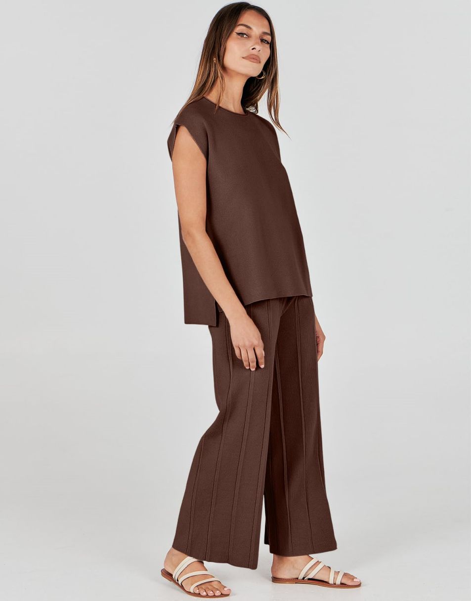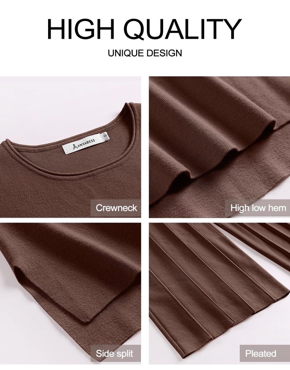• ANRABESS Two Piece Outfits for Women Summer Sweater Sets Knit Pullover Tops Elastic Waisted Pants Lounge Sets Tracksuit