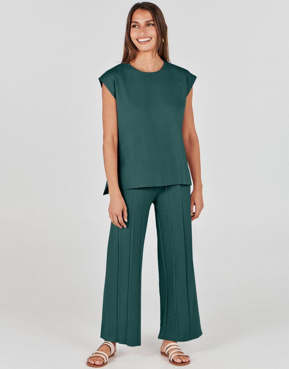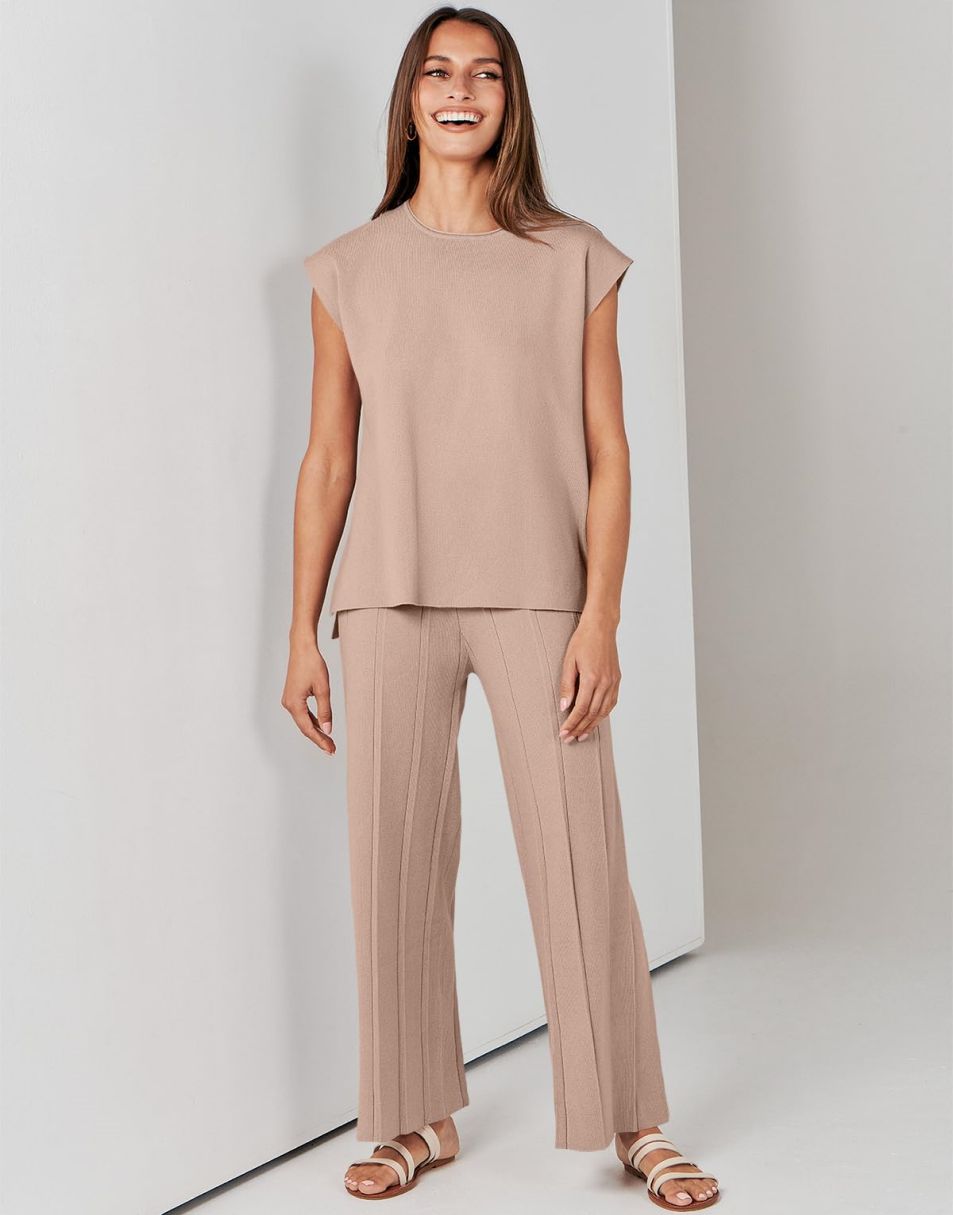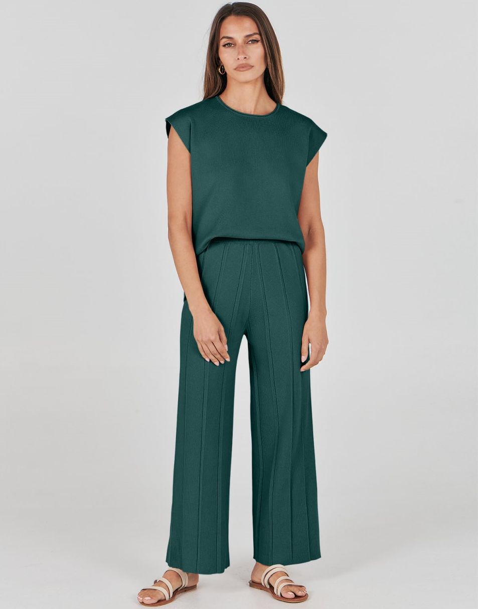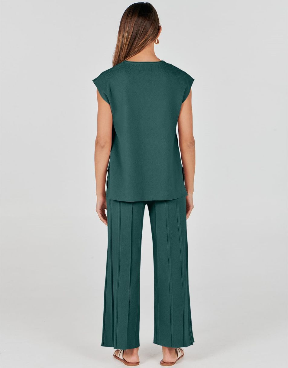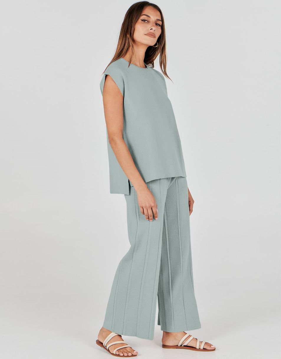 • ANRABESS Two Piece Outfits for Women Summer Sweater Sets Knit Pullover Tops Elastic Waisted Pants Lounge Sets Tracksuit