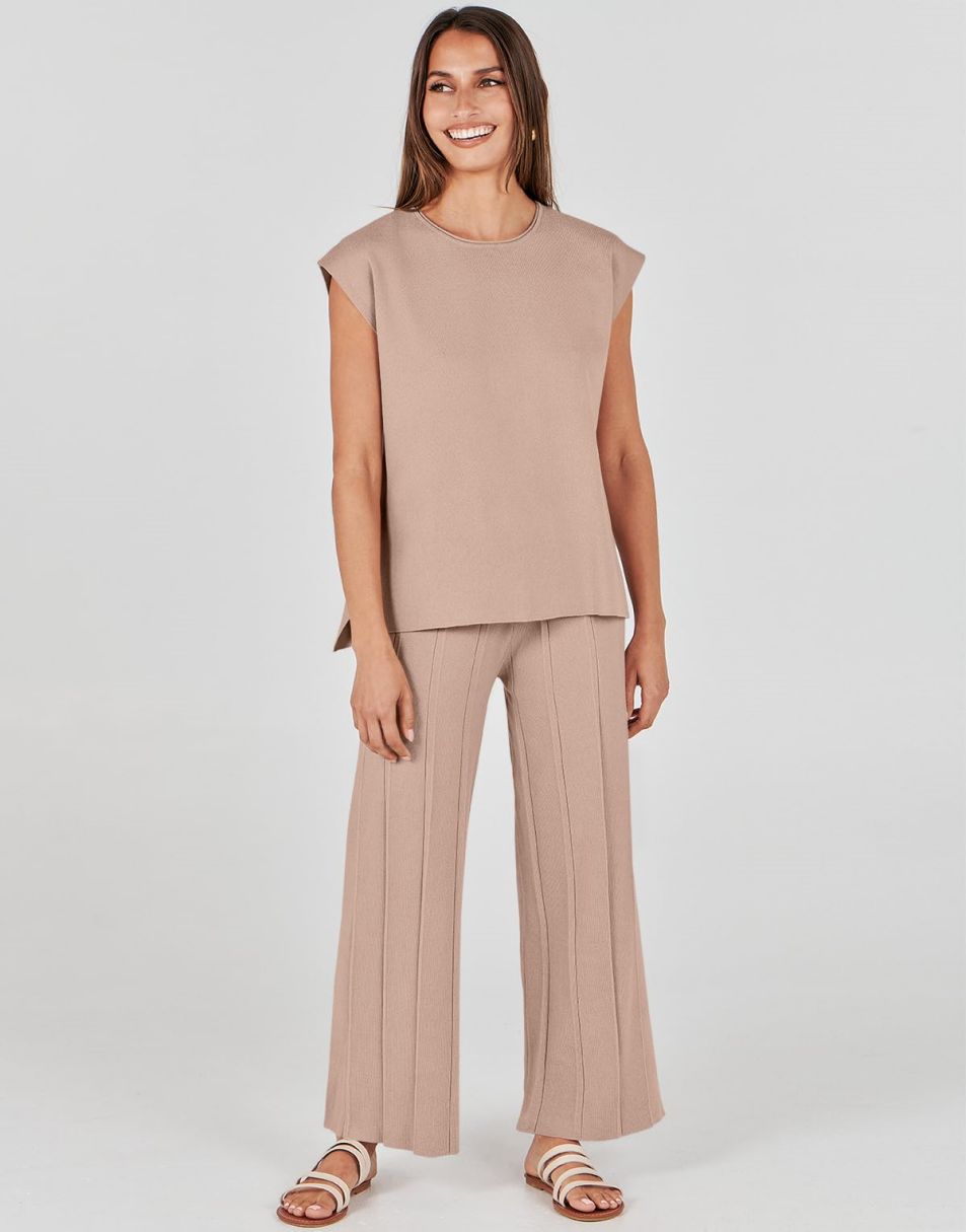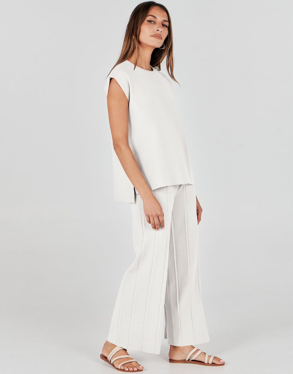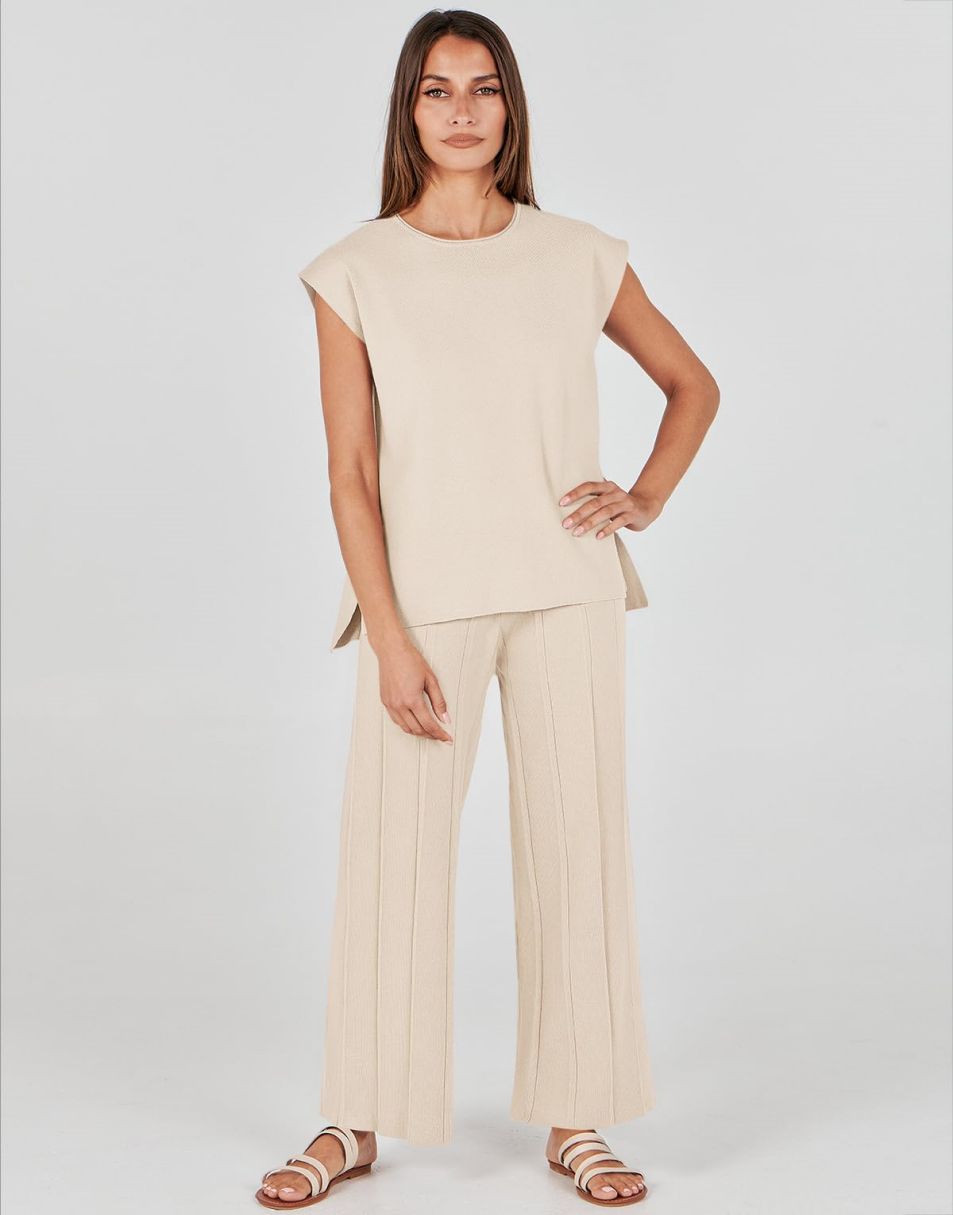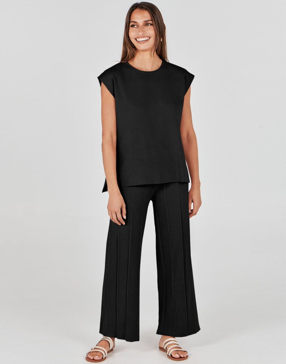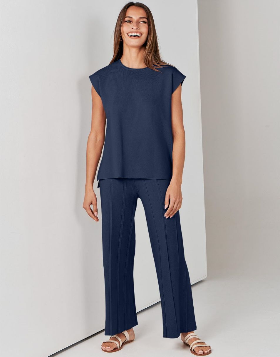 • ANRABESS Two Piece Outfits for Women Summer Sweater Sets Knit Pullover Tops Elastic Waisted Pants Lounge Sets Tracksuit