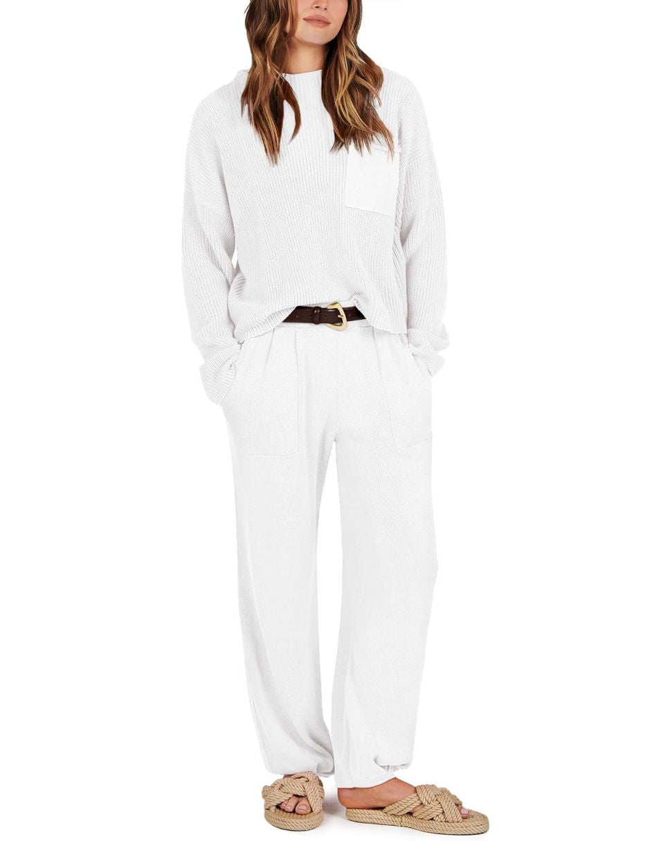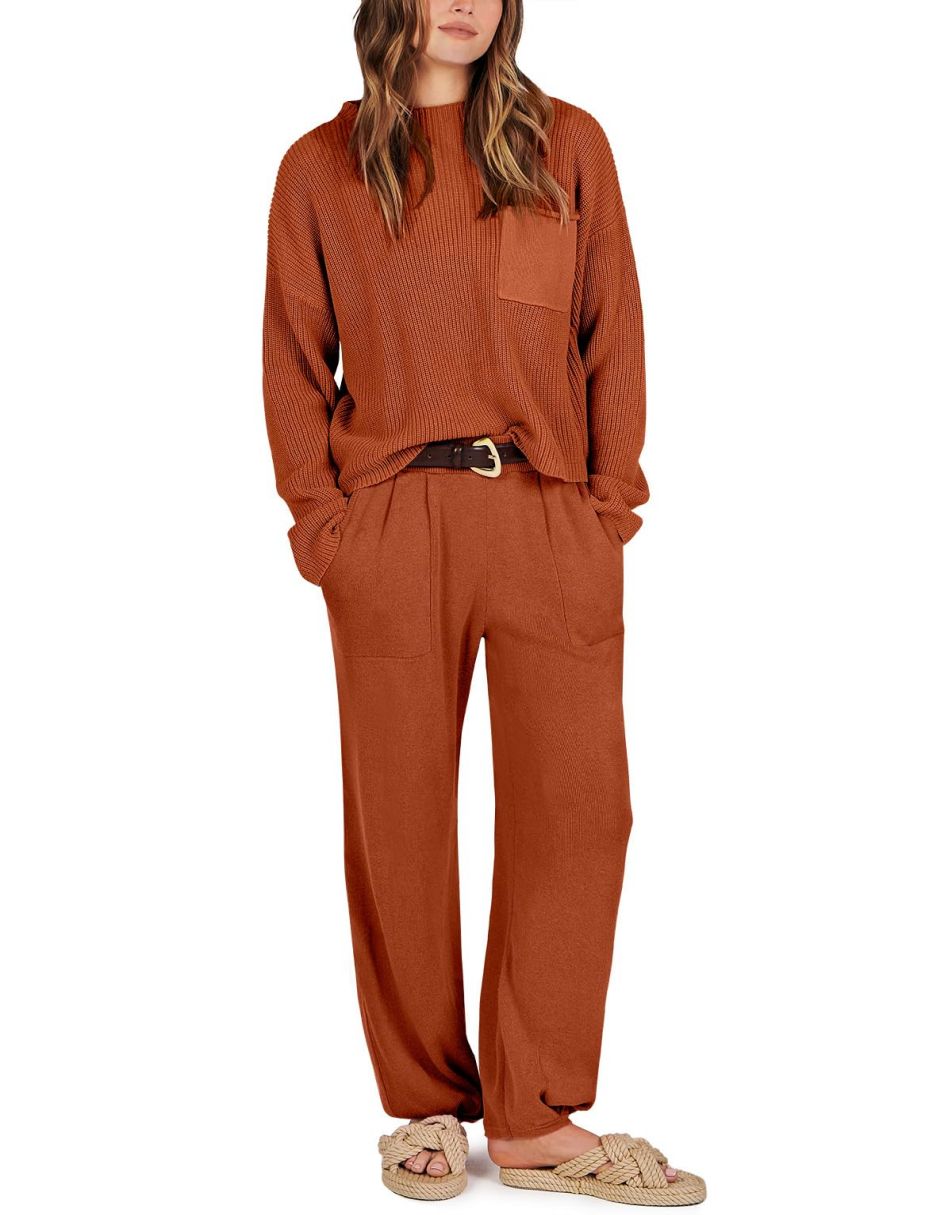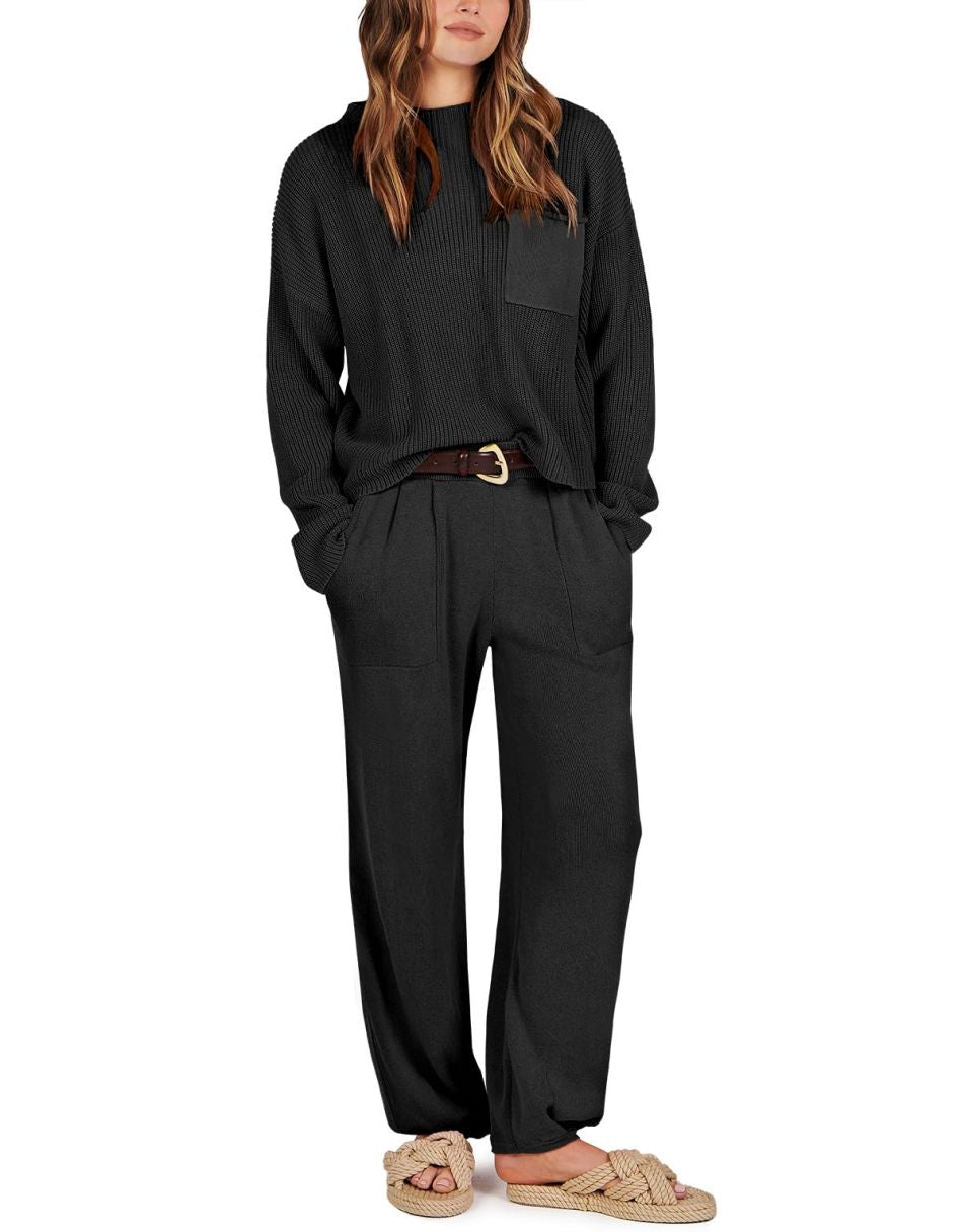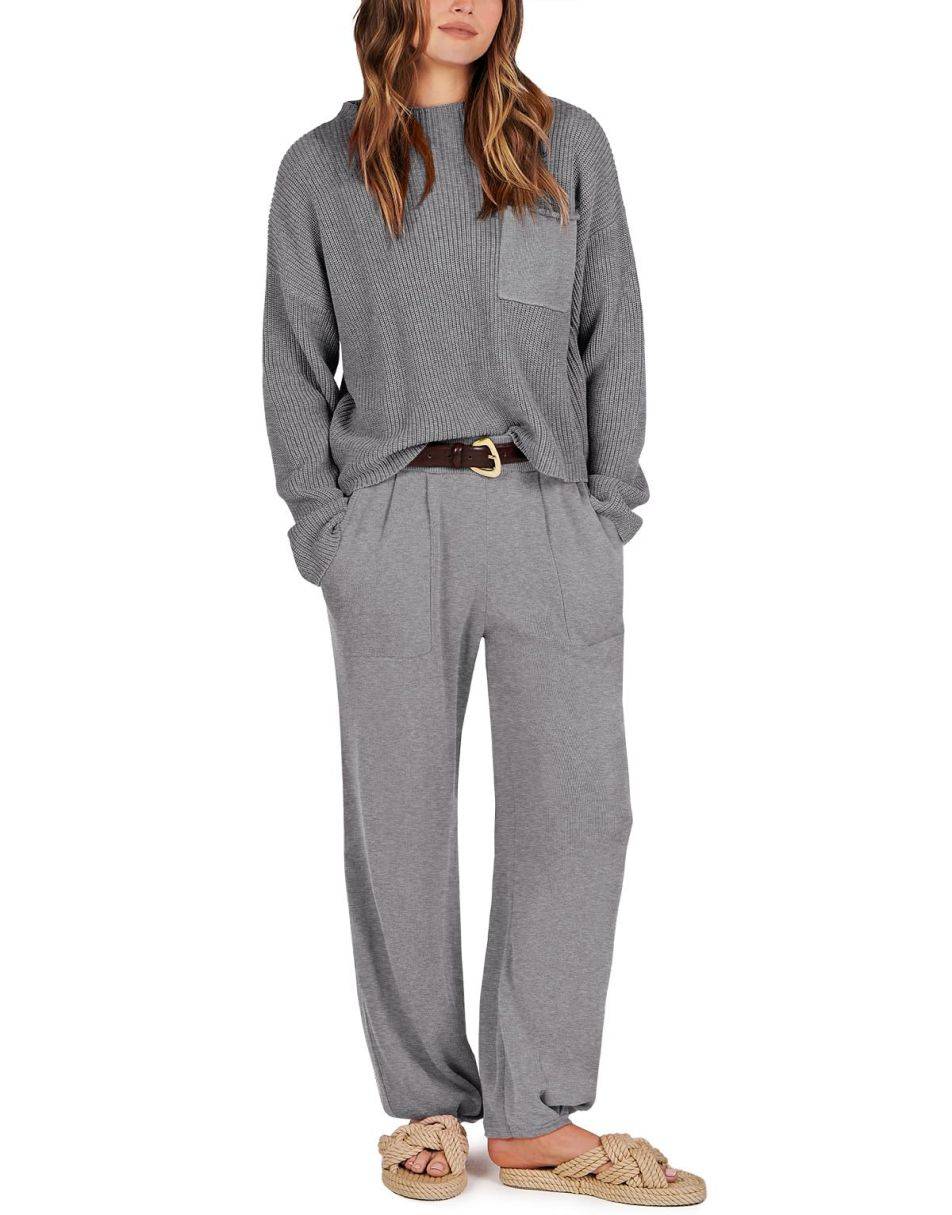 • ANRABESS Women's Two Piece Outfits Long Sleeve Knit Top Fall Sweater Set Oversized Pants Tracksuit Lounge Sets
