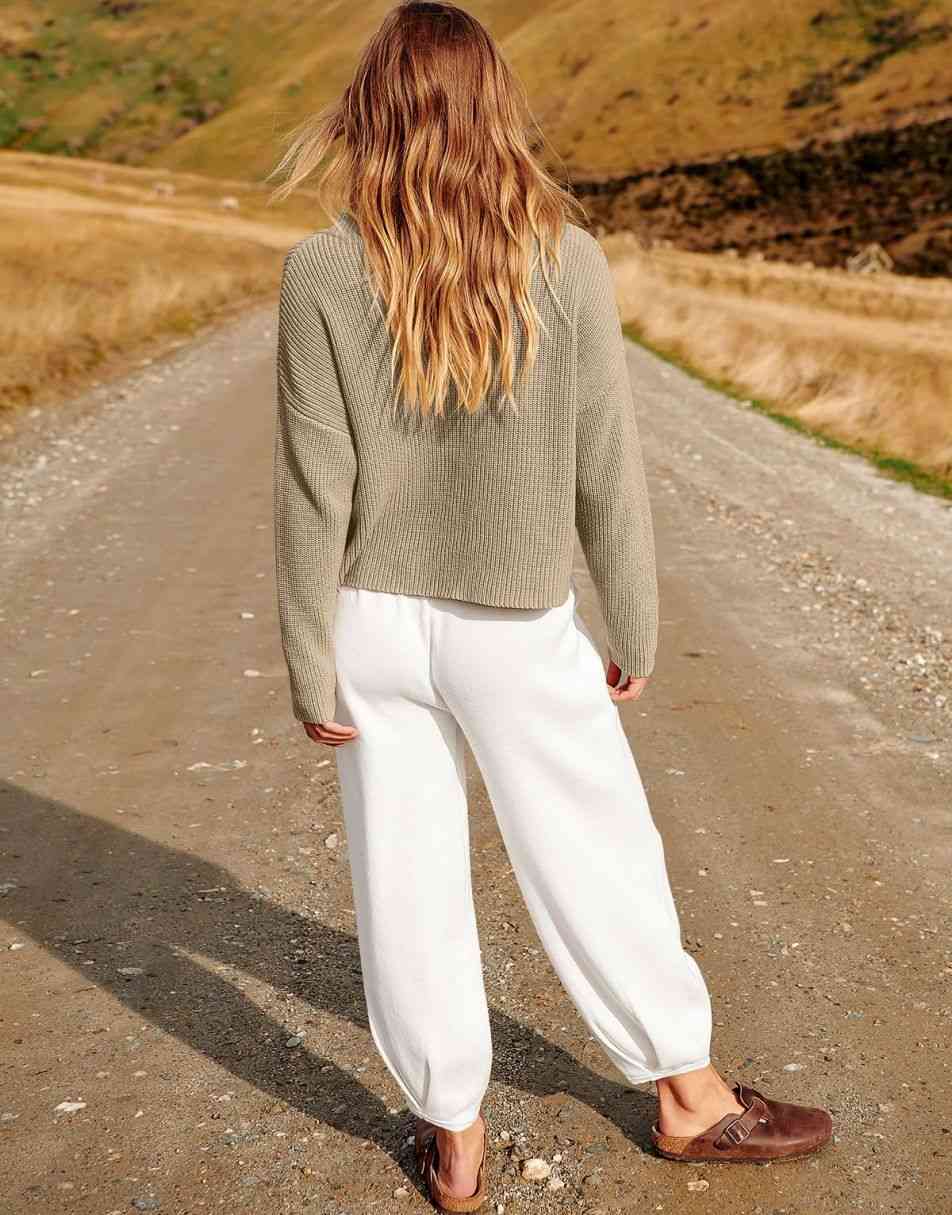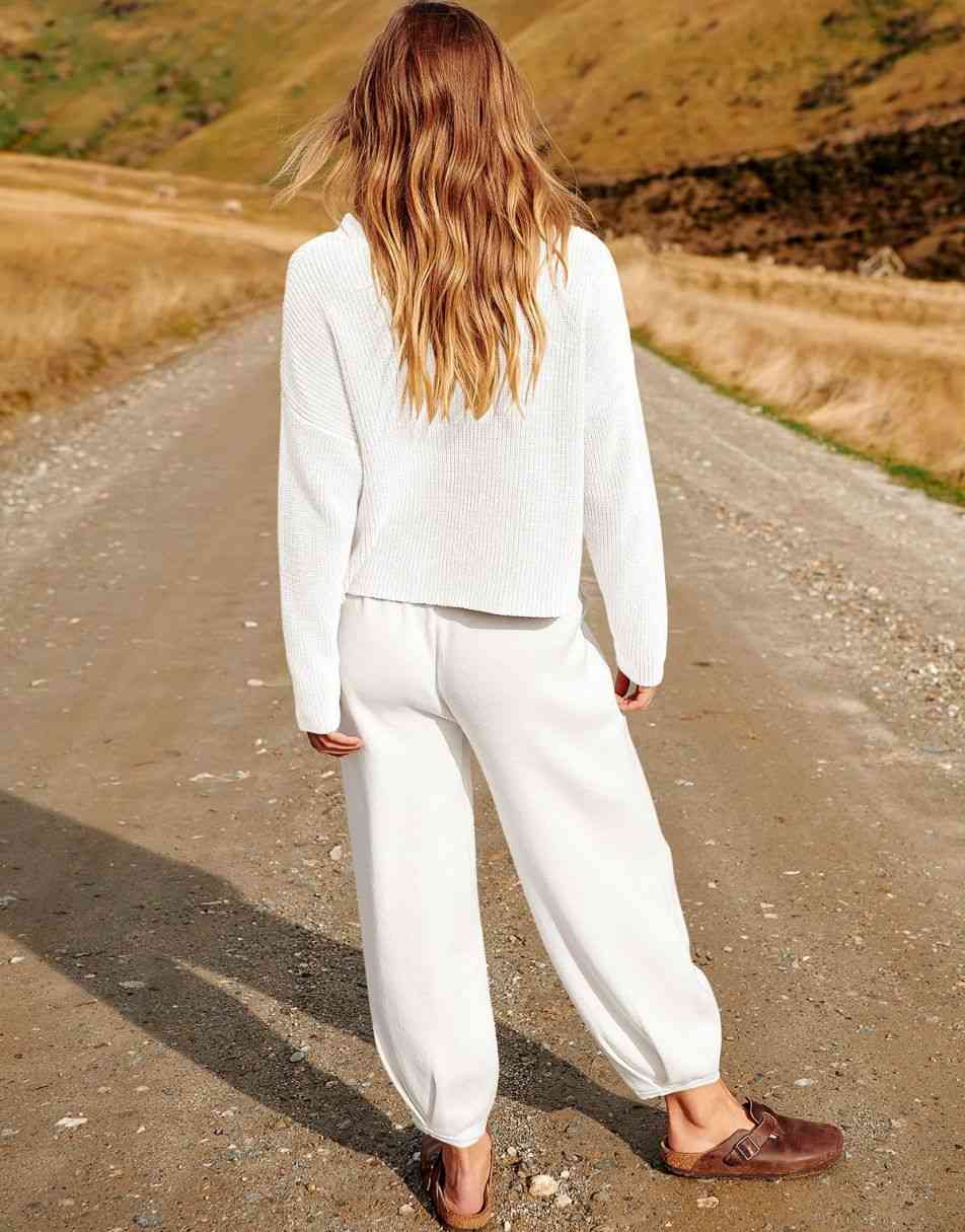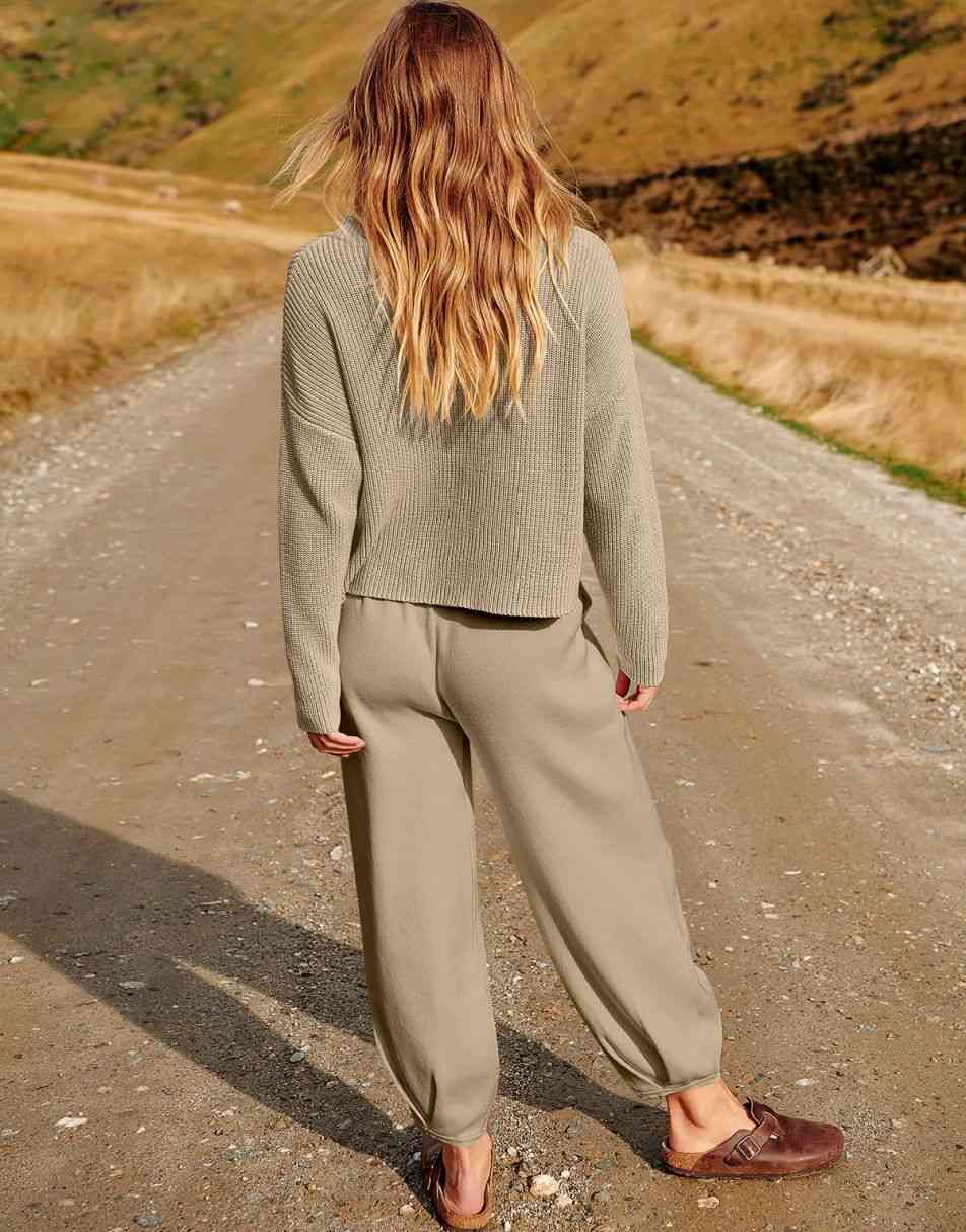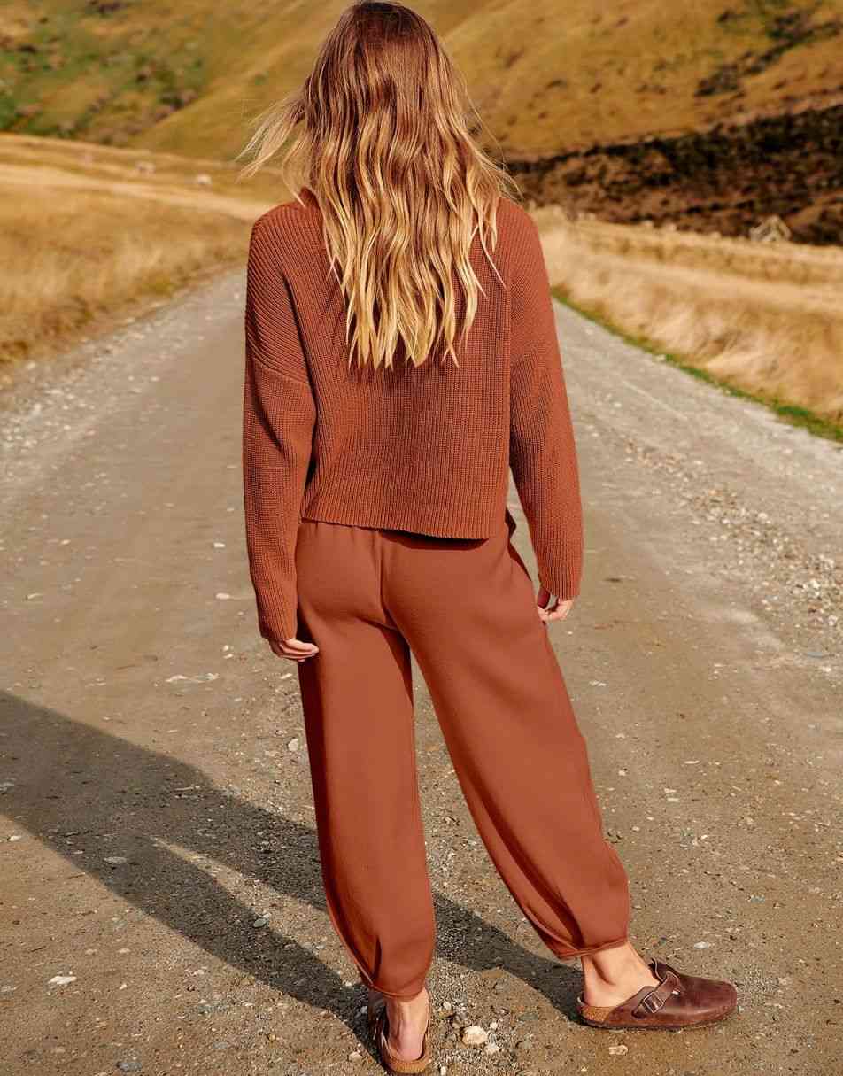 • ANRABESS Women's Two Piece Outfits Long Sleeve Knit Top Fall Sweater Set Oversized Pants Tracksuit Lounge Sets