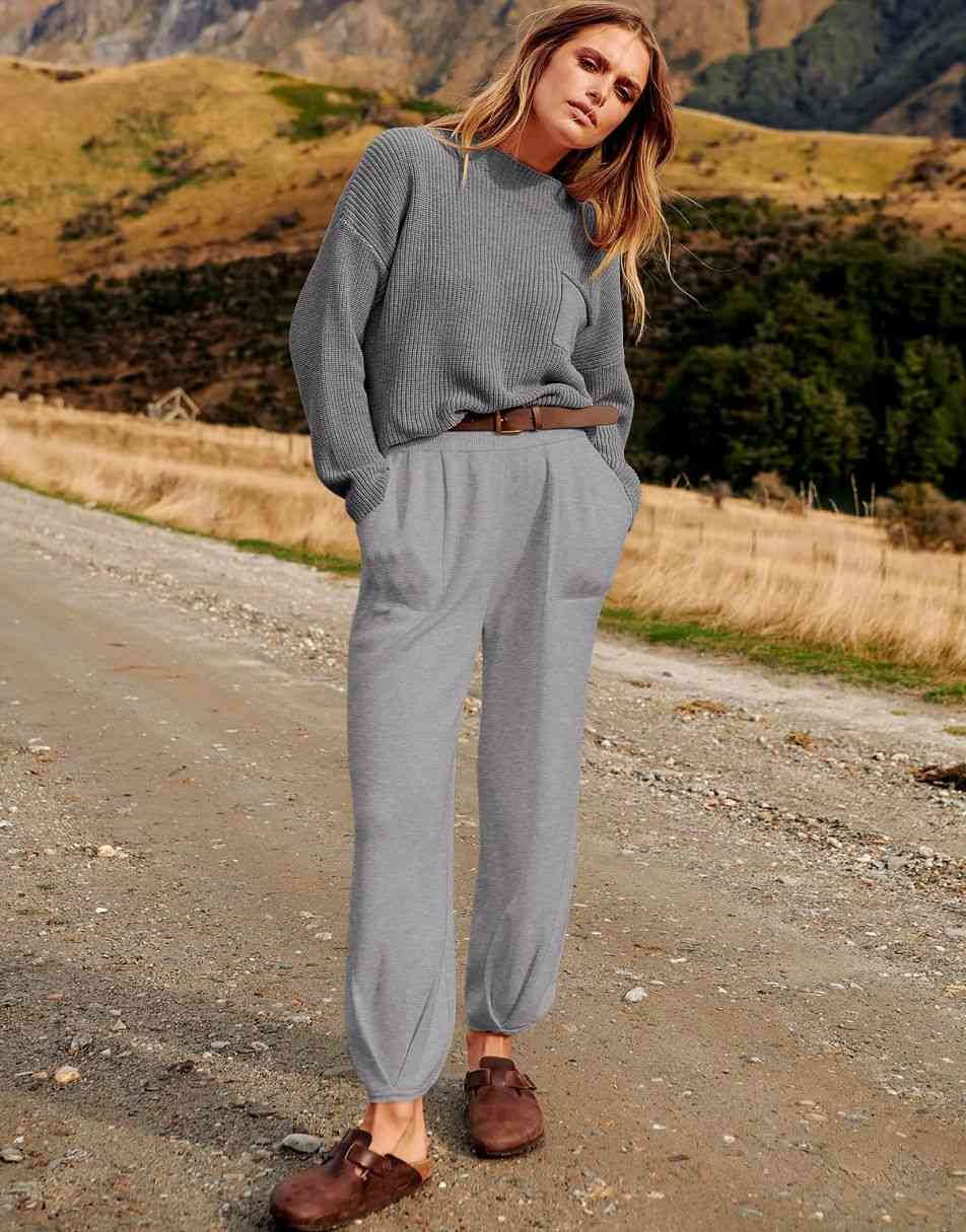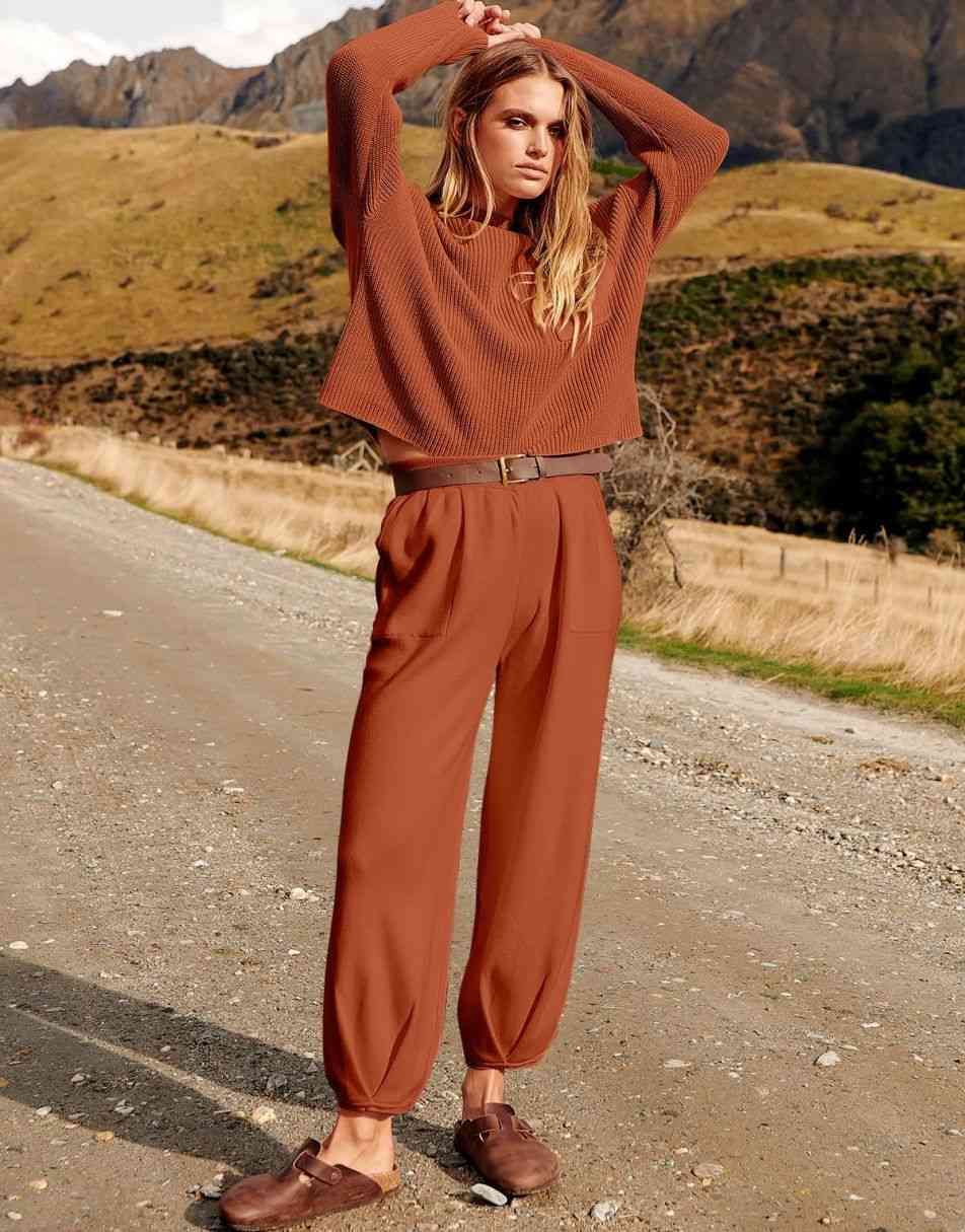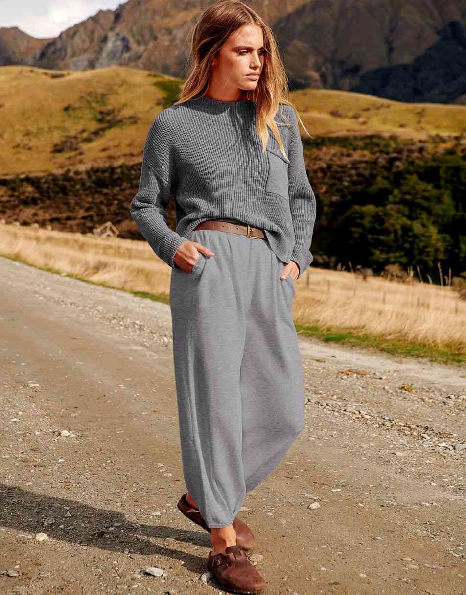 • Fabric - Perfect in a so soft knit fabrication, this two piece matching sets is a cozy instant outfit.Slouchy, relaxed fit with wide-leg pants.