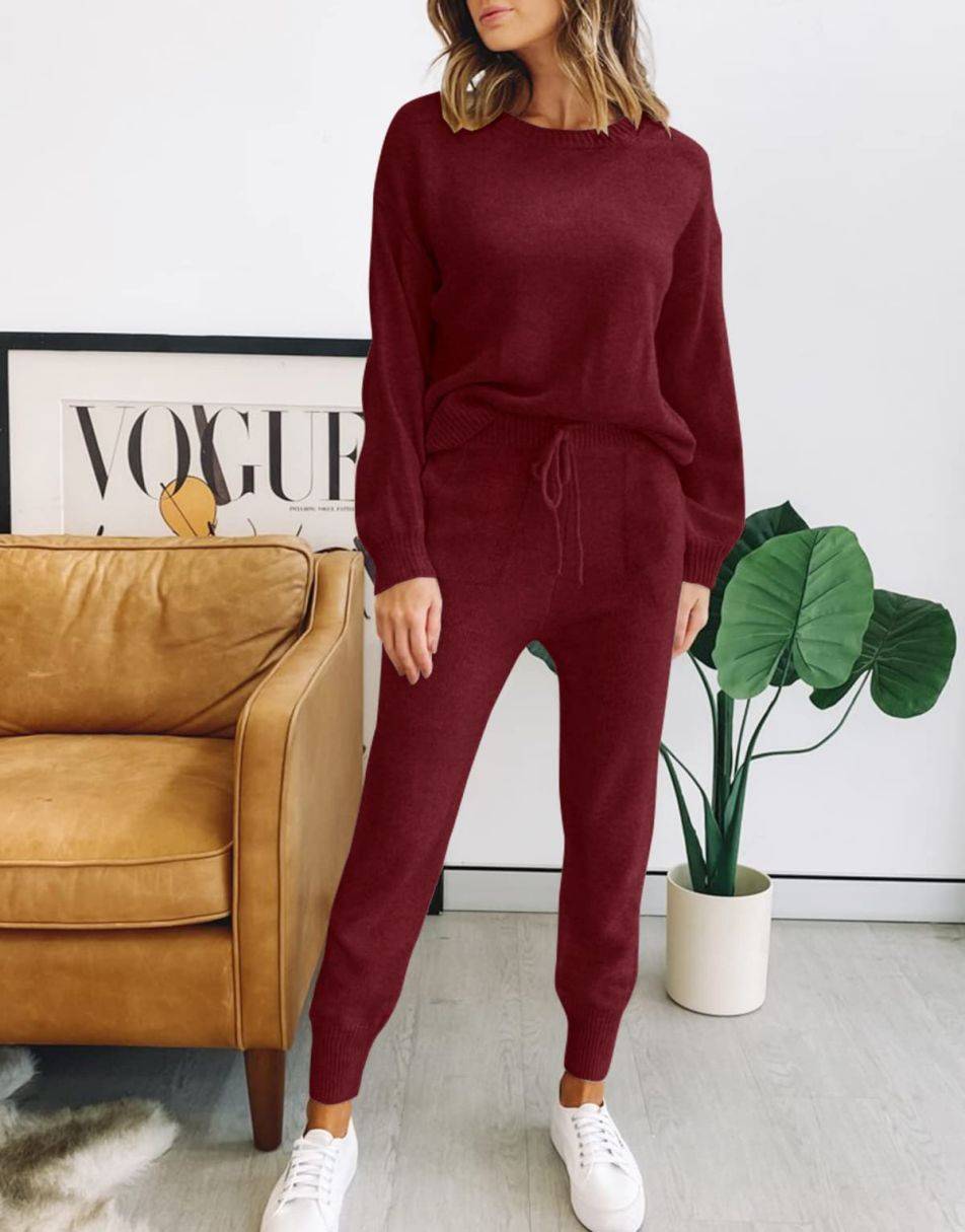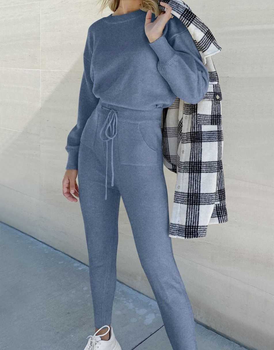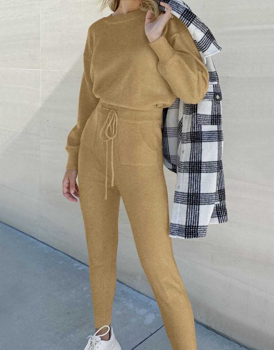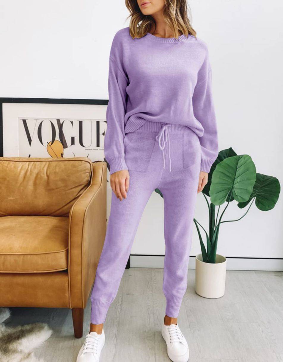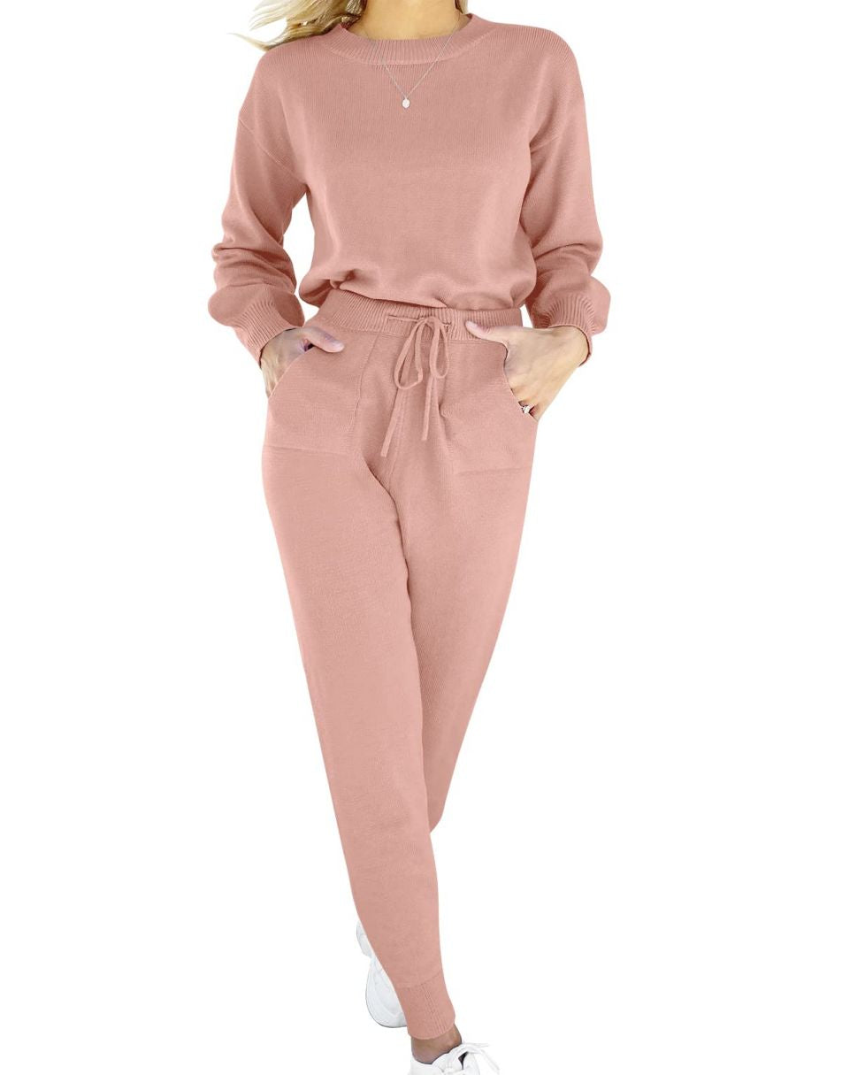 • STYLE: Two-piece set/long sleeve pullover tops/crew-neck/solid color/drawstring high waist pants/beam foot