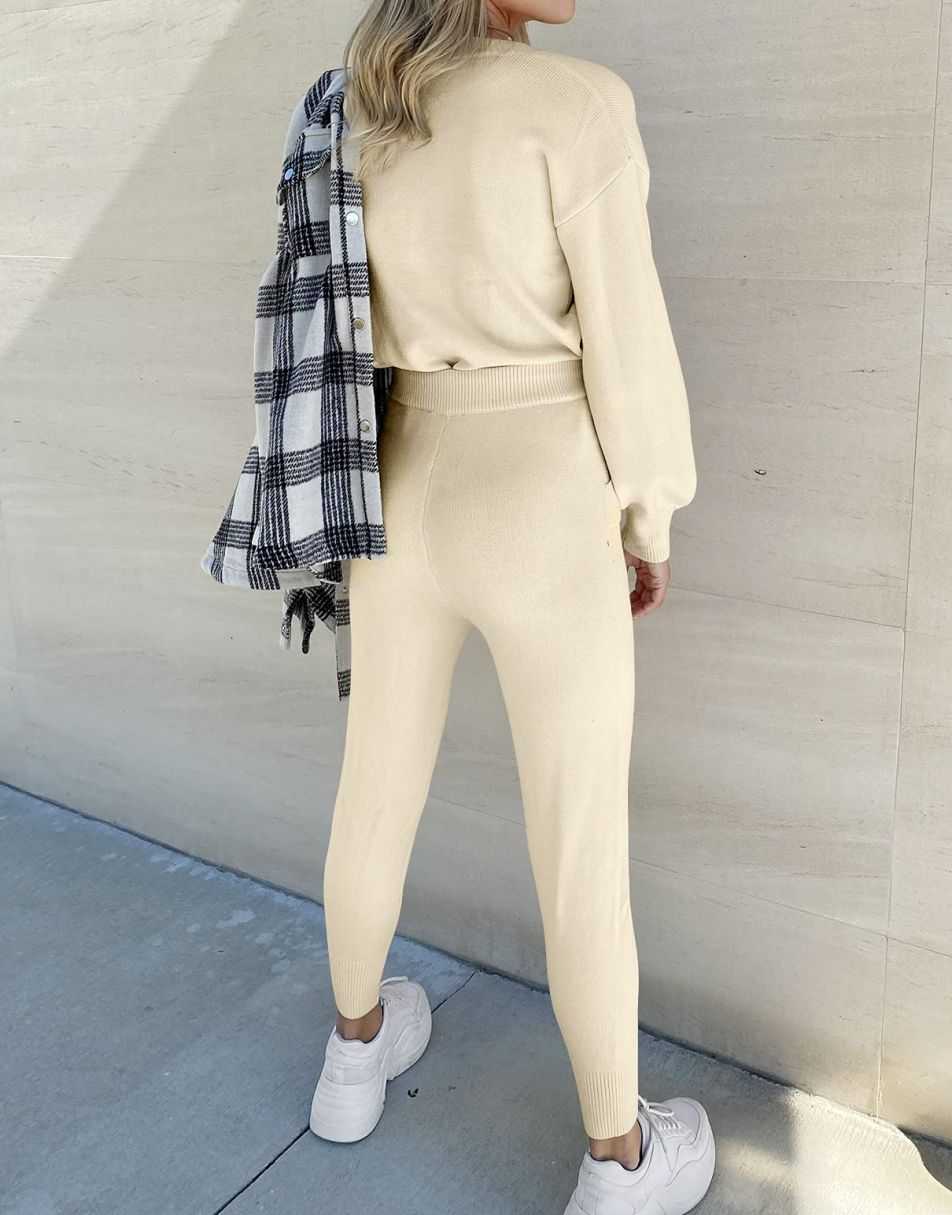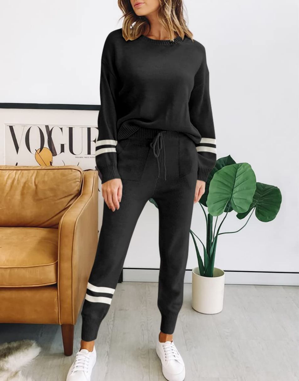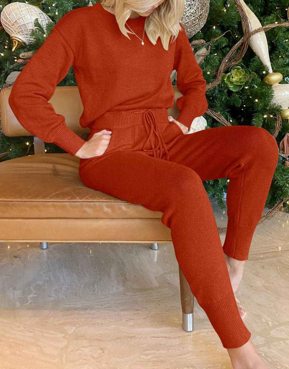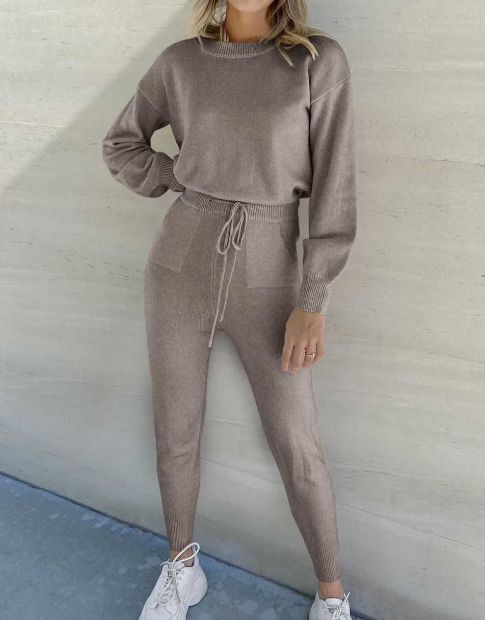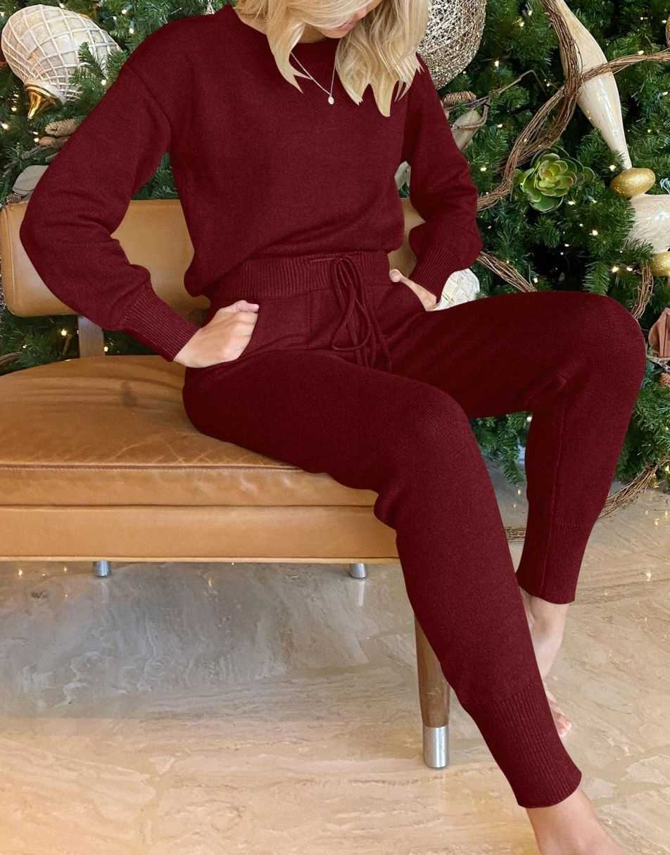 • STYLE: Two-piece set/long sleeve pullover tops/crew-neck/solid color/drawstring high waist pants/beam foot