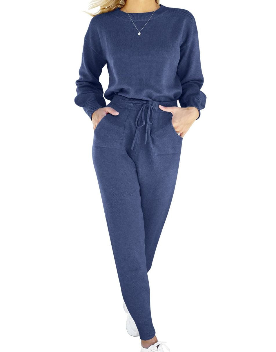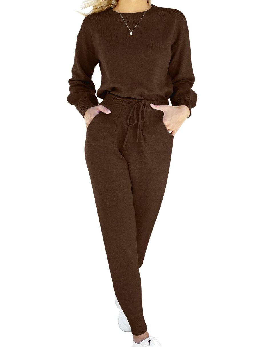 ANRABESS Women's Two Piece Outfits Sweater Sets Pullover and Drawstring Pants Lounge Sets