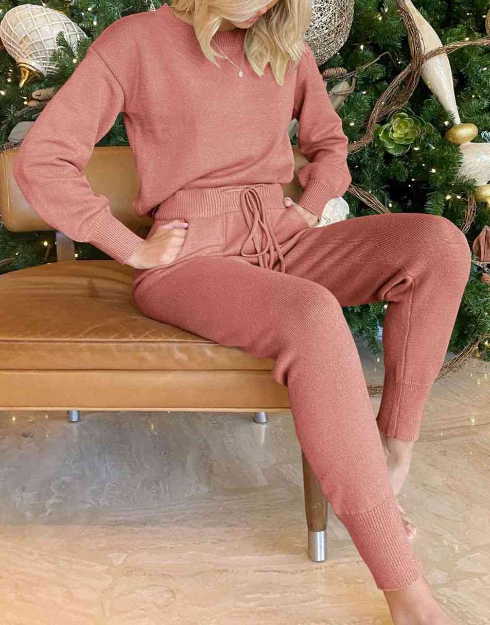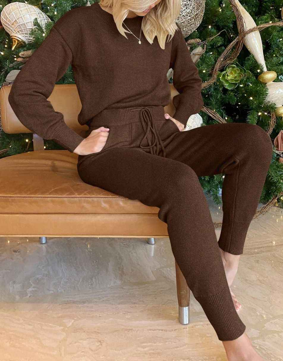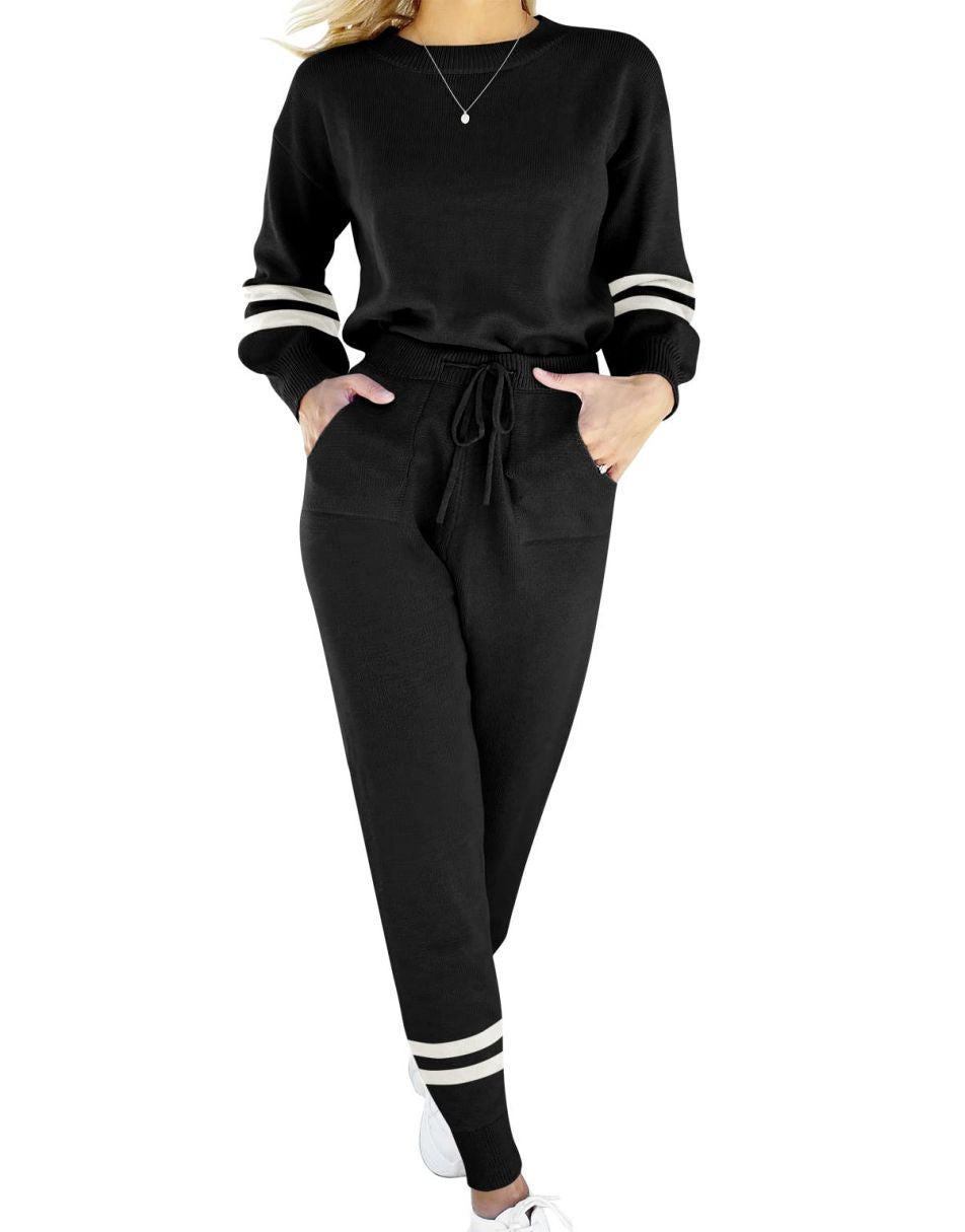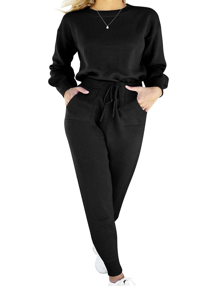 • ANRABESS Women's Two Piece Outfits Sweater Sets Pullover and Drawstring Pants Lounge Sets