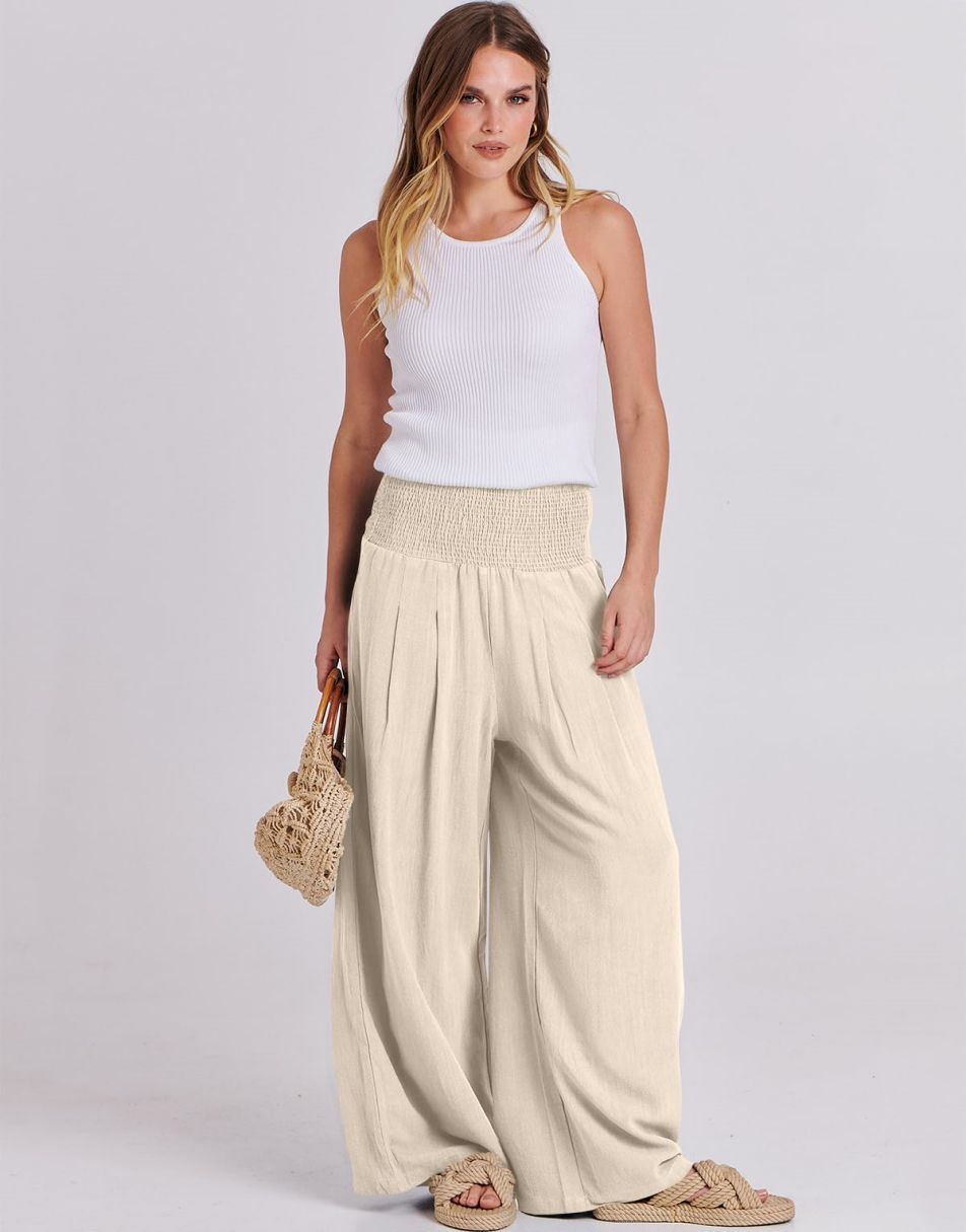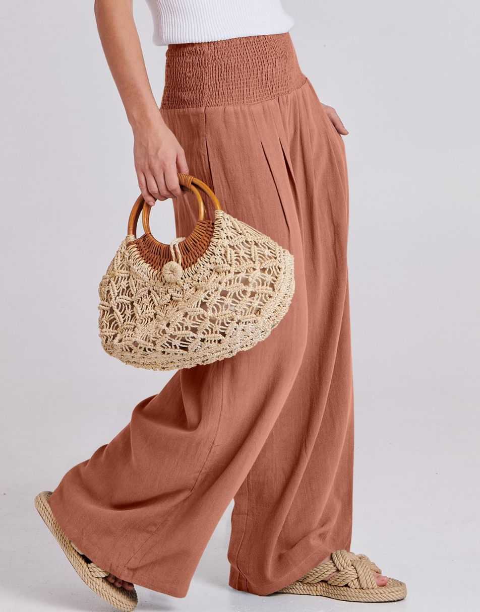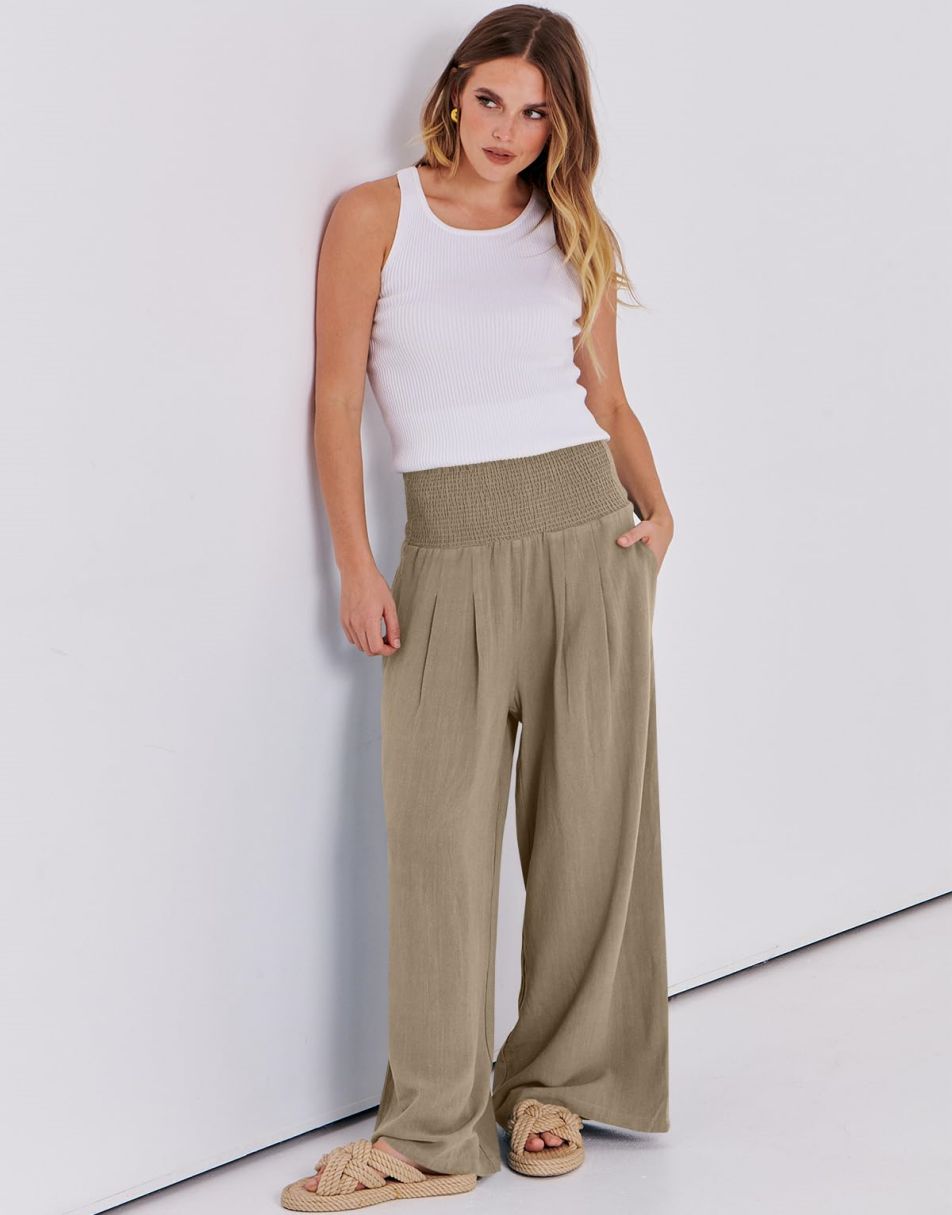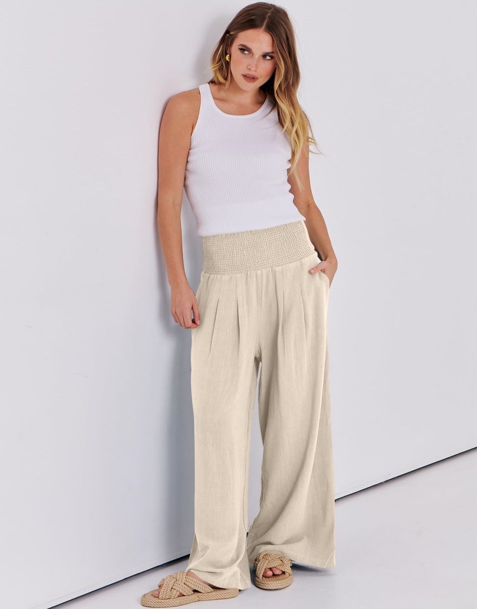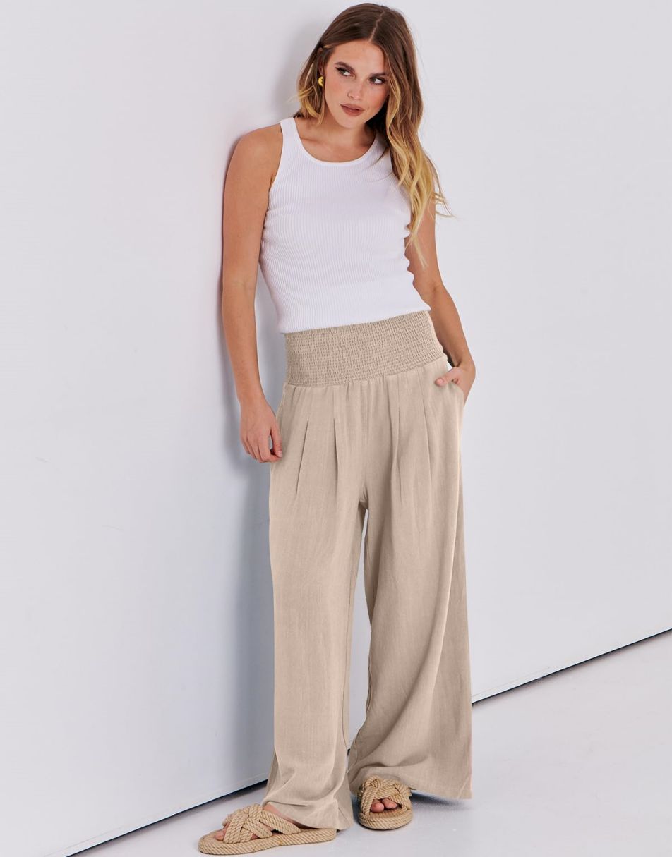 • Feature - Smocked high waist, wide leg, loose fit lounge pants with pockets, linen beach pants for women cover up, flowy dressy pants comfy and chic
