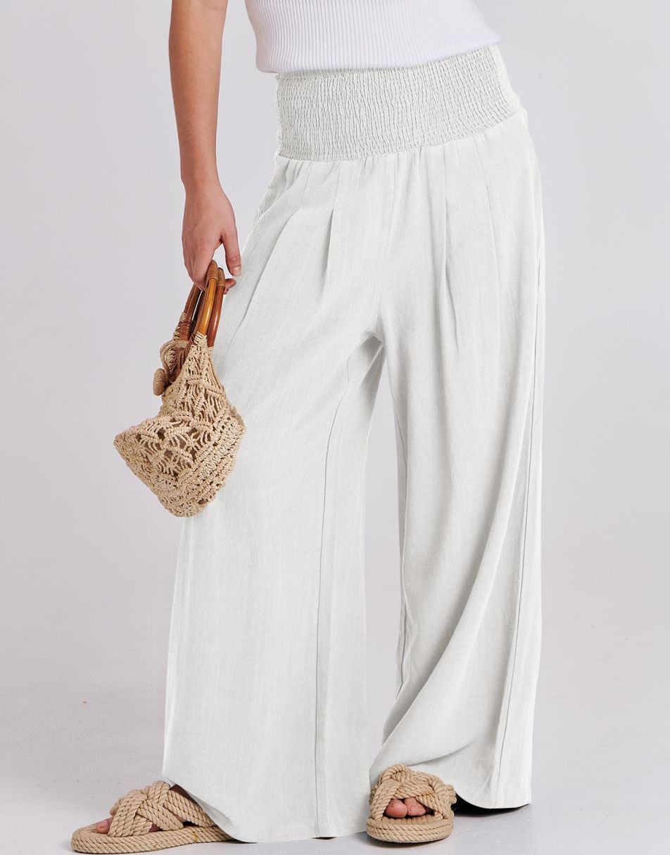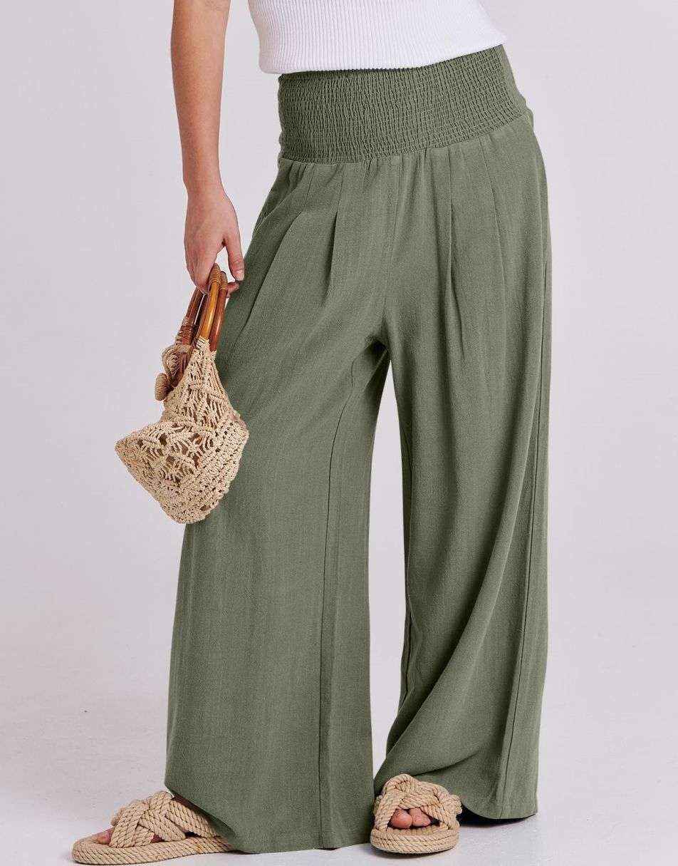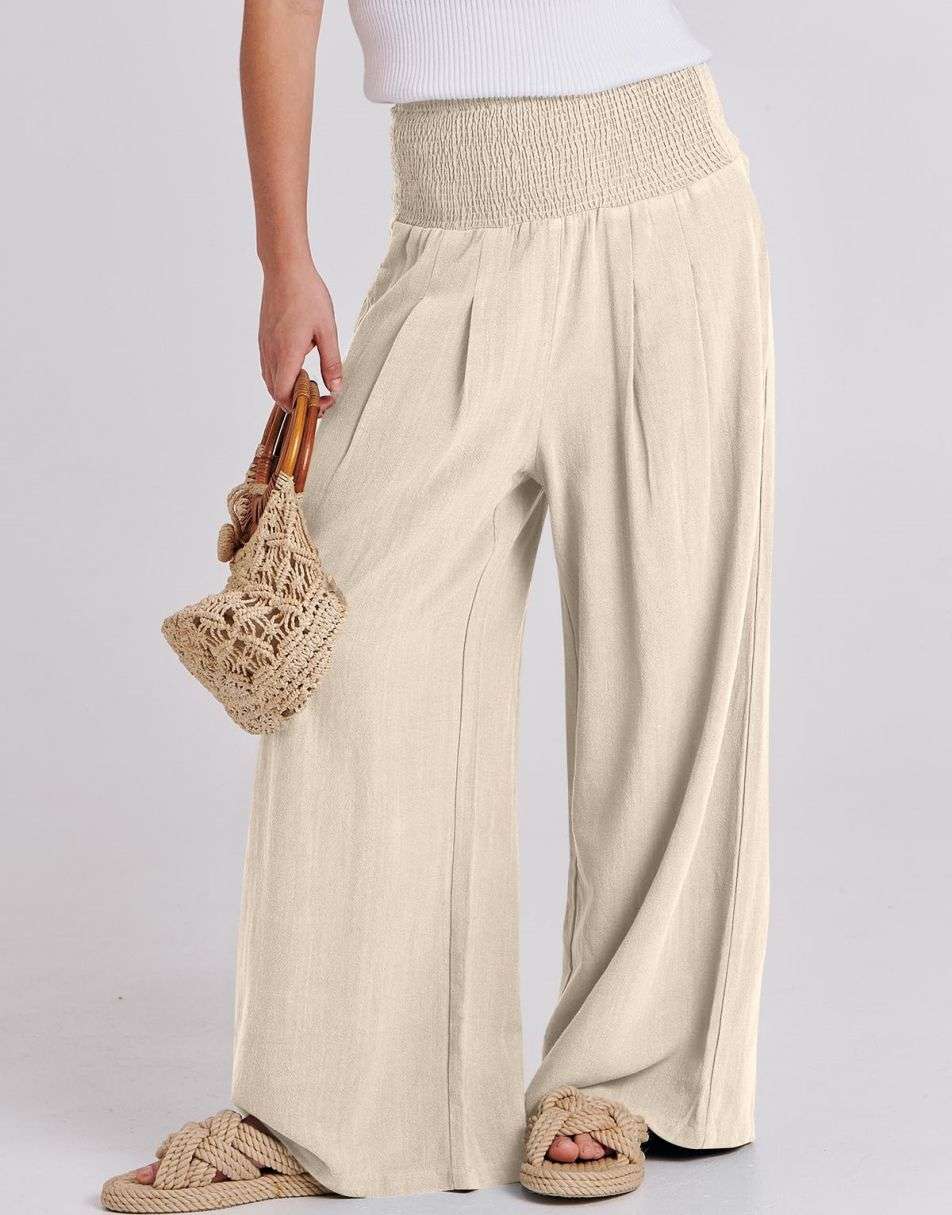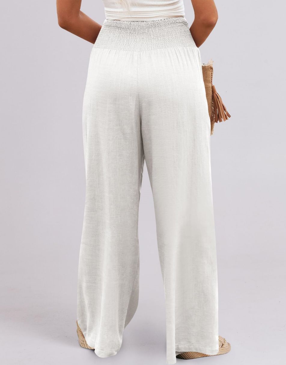 • Feature - Smocked high waist, wide leg, loose fit lounge pants with pockets, linen beach pants for women cover up, flowy dressy pants comfy and chic