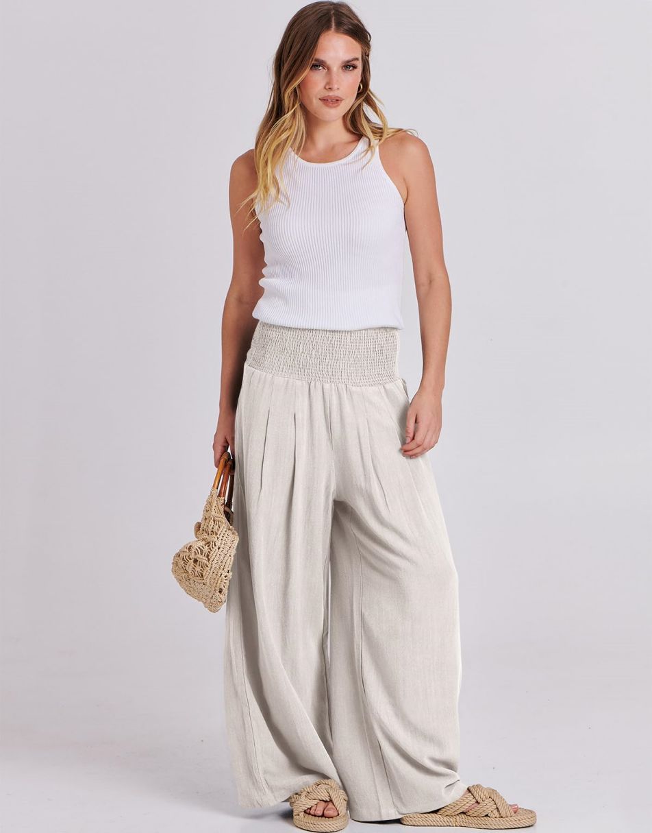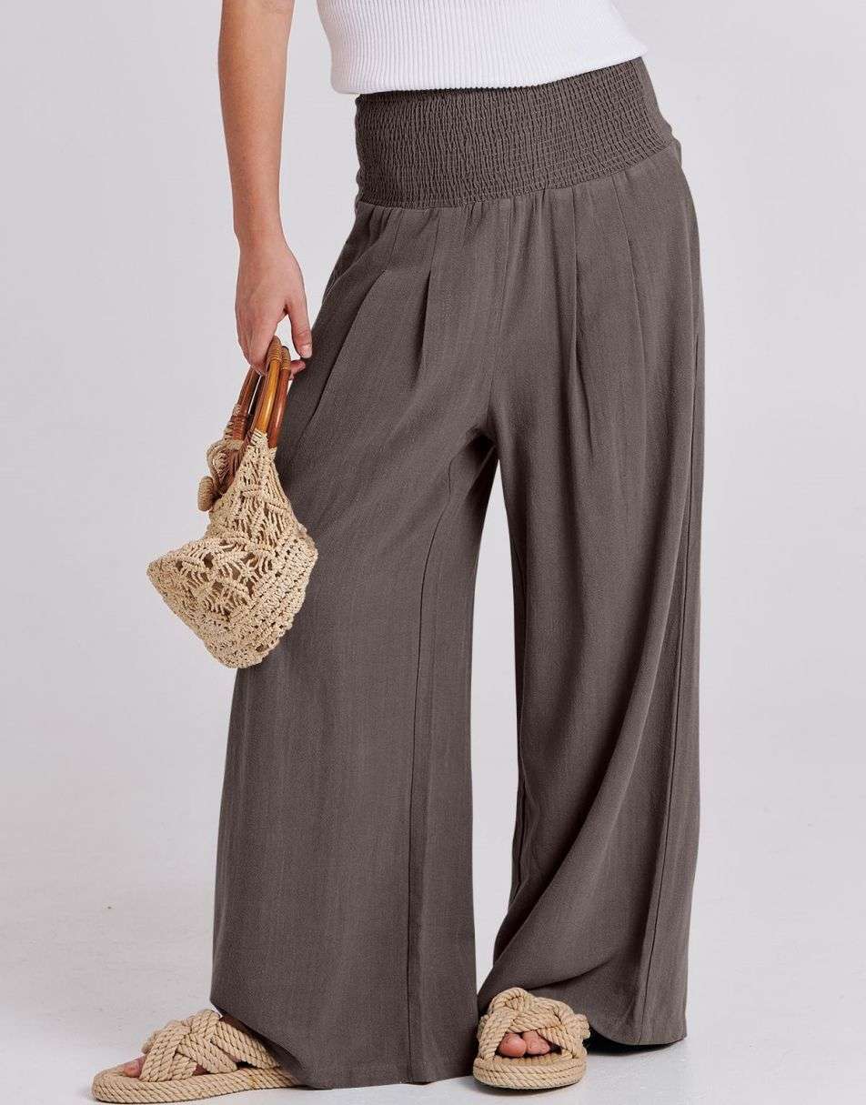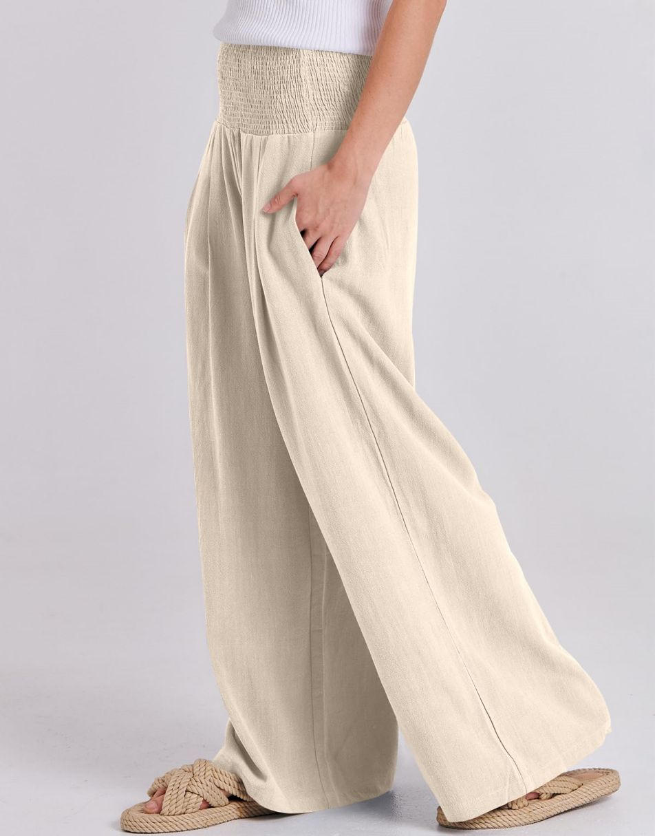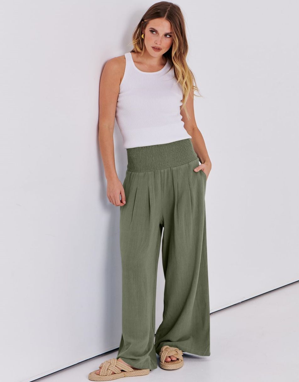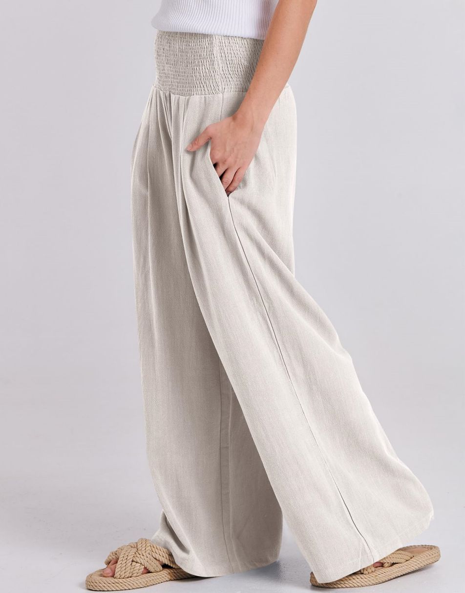 • Feature - Smocked high waist, wide leg, loose fit lounge pants with pockets, linen beach pants for women cover up, flowy dressy pants comfy and chic