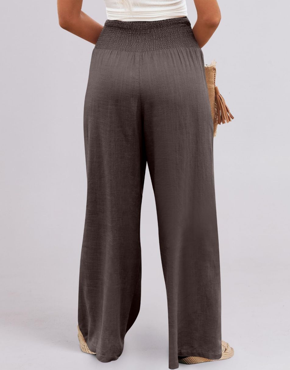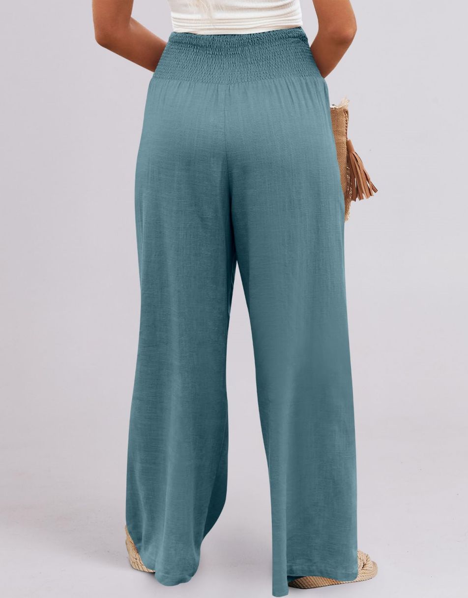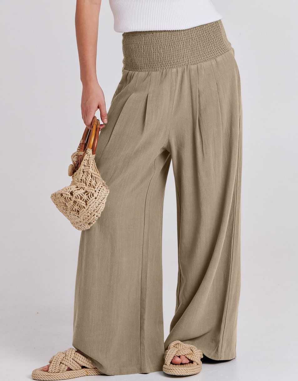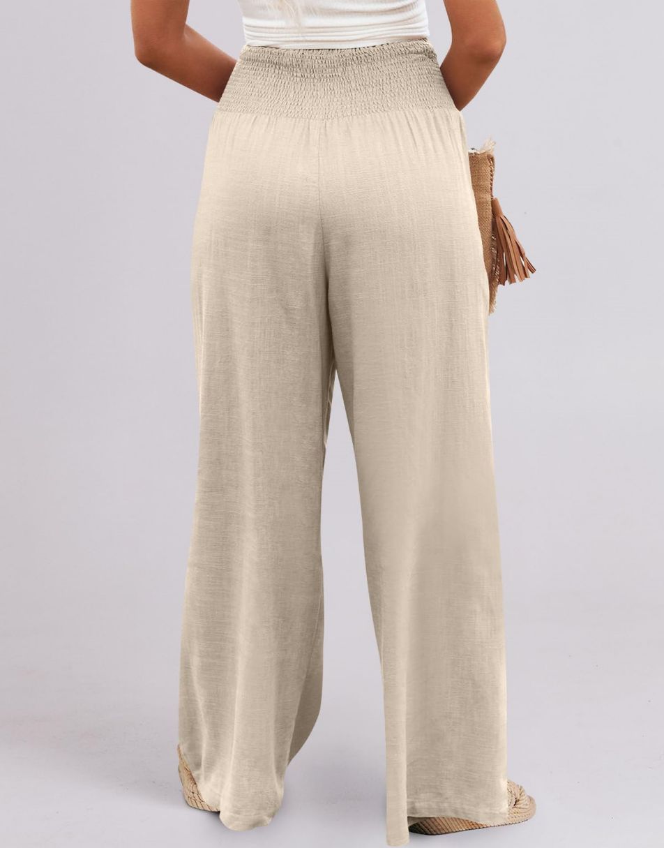 • Feature - Smocked high waist, wide leg, loose fit lounge pants with pockets, linen beach pants for women cover up, flowy dressy pants comfy and chic