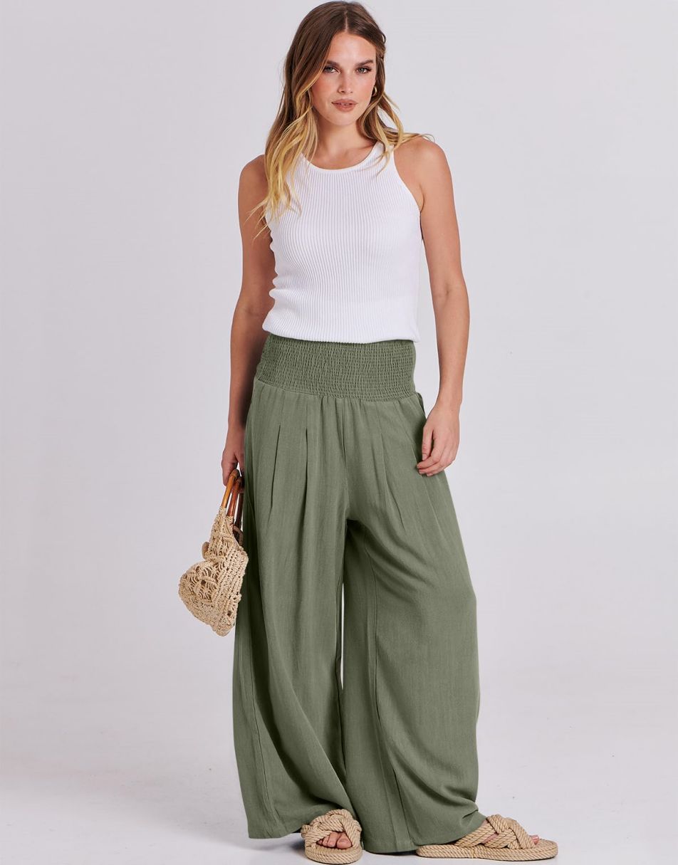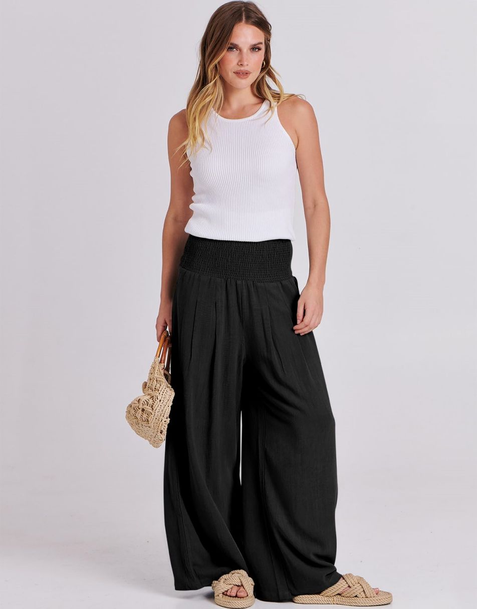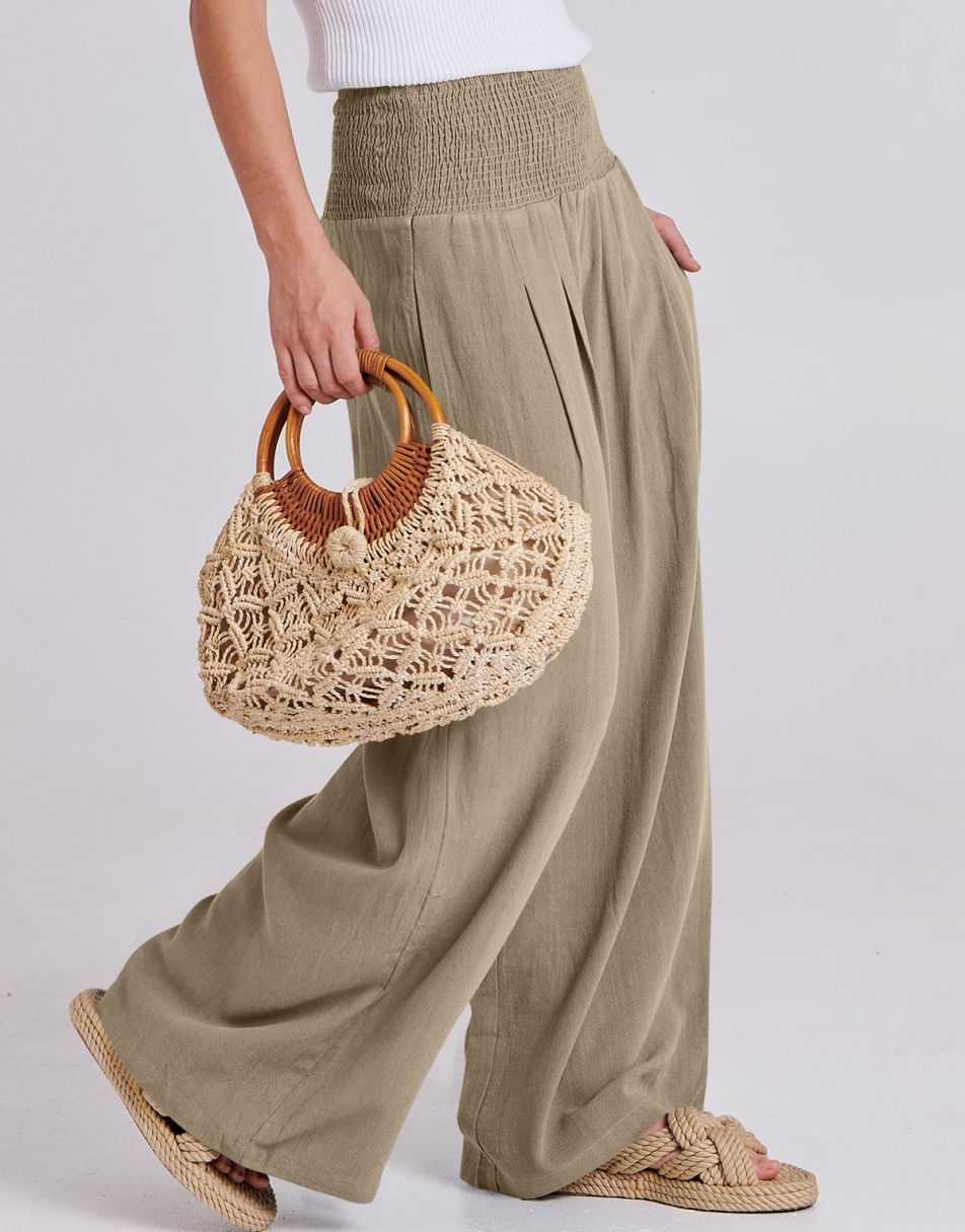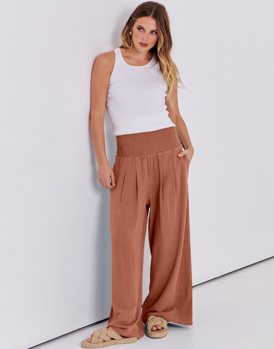 • Feature - Smocked high waist, wide leg, loose fit lounge pants with pockets, linen beach pants for women cover up, flowy dressy pants comfy and chic