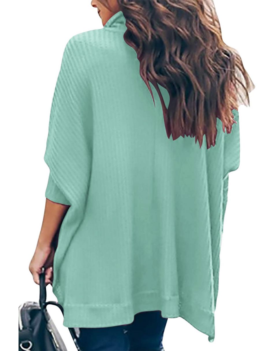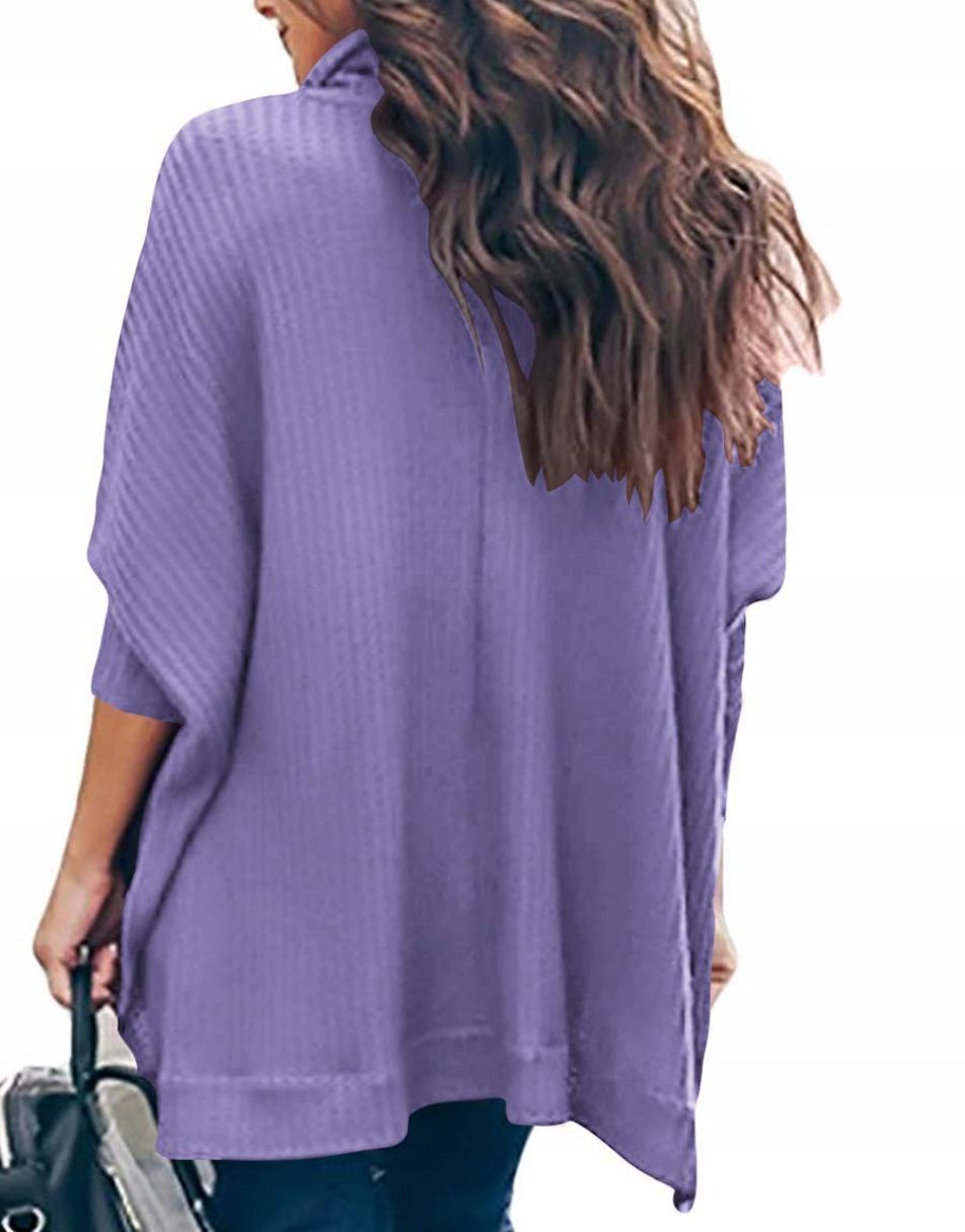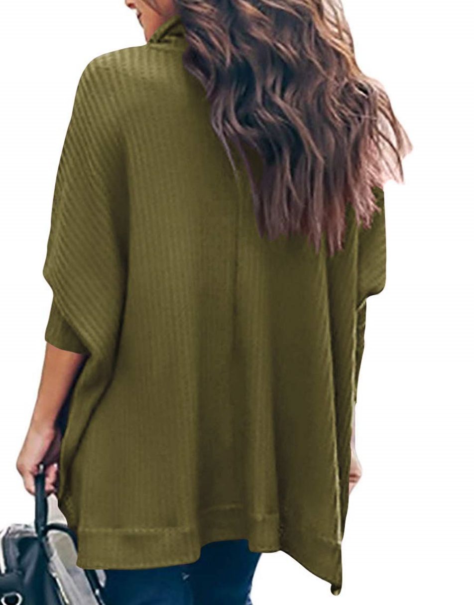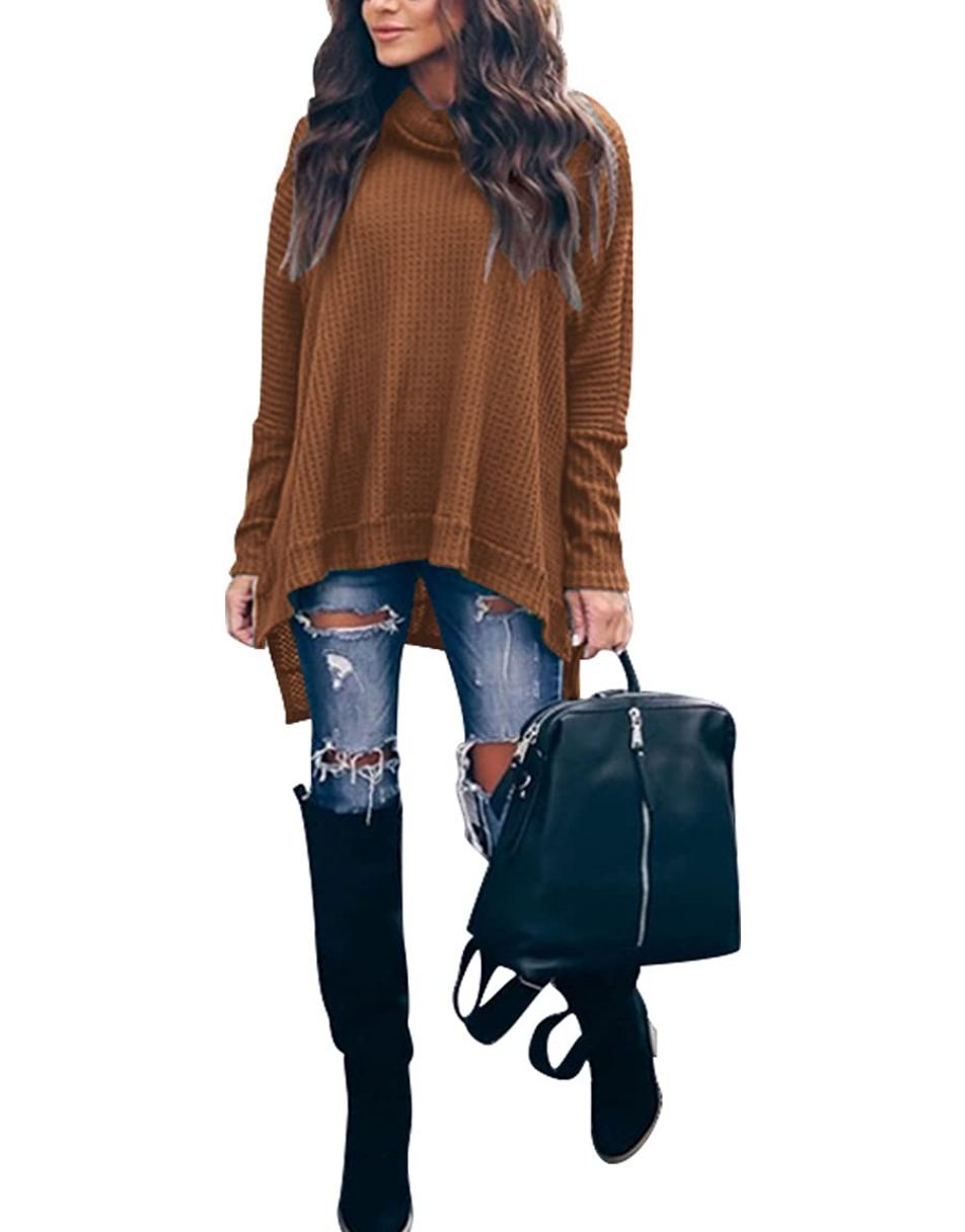 Features - This casual oversized pullover sweaters designed turtle cowl neck,waffle knit fabri锛�batwing sleeve,high low hem锛�side slit锛�flattering tunic tops.