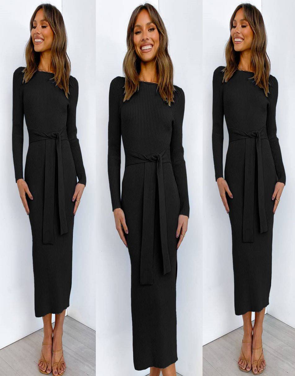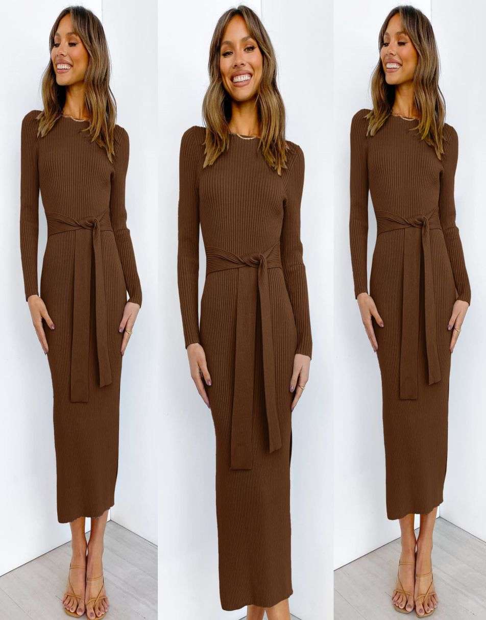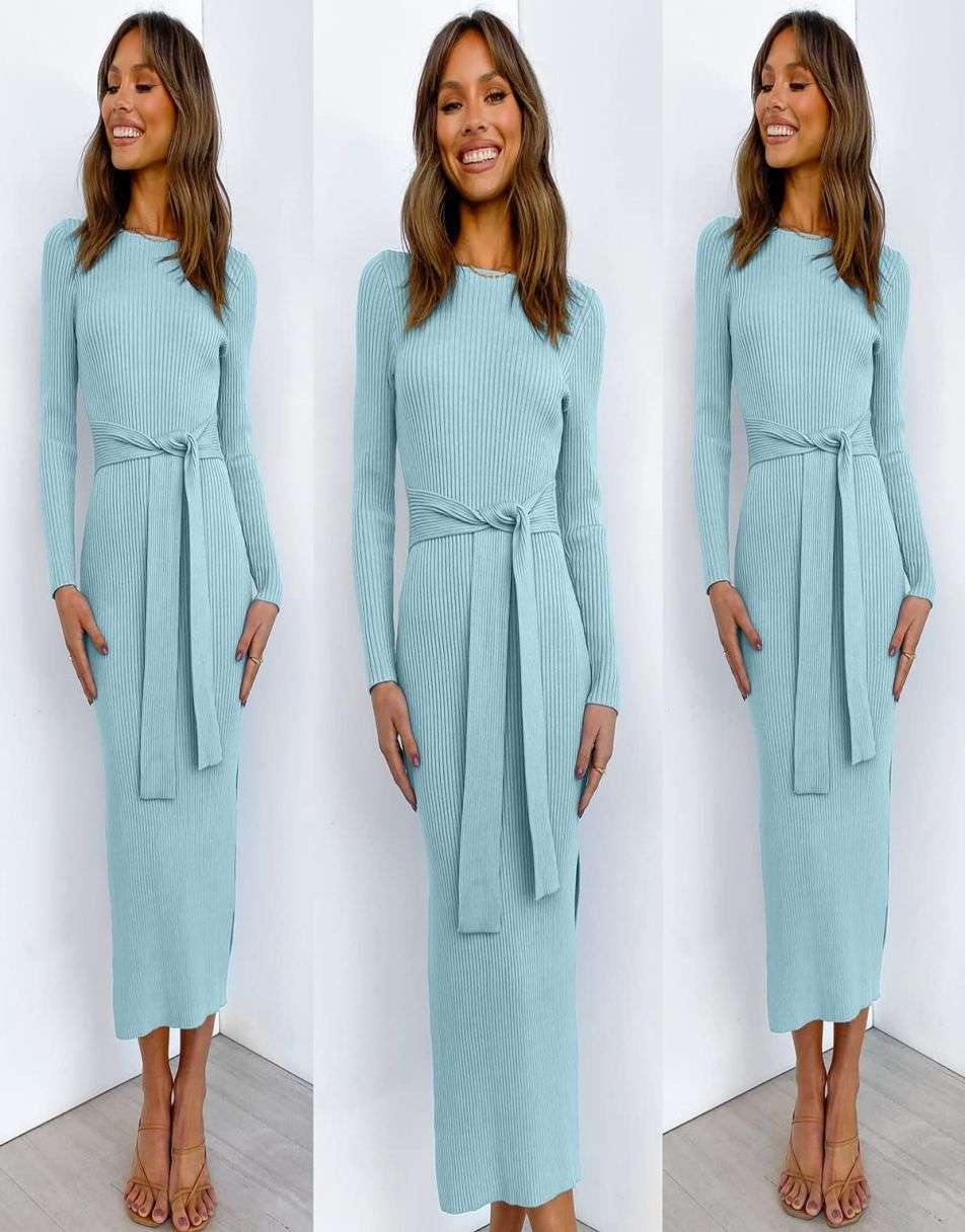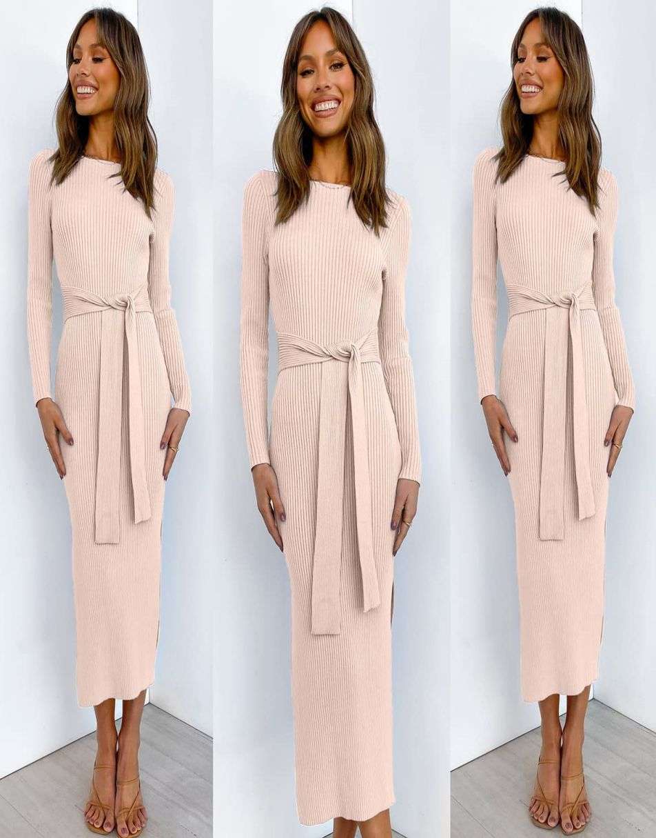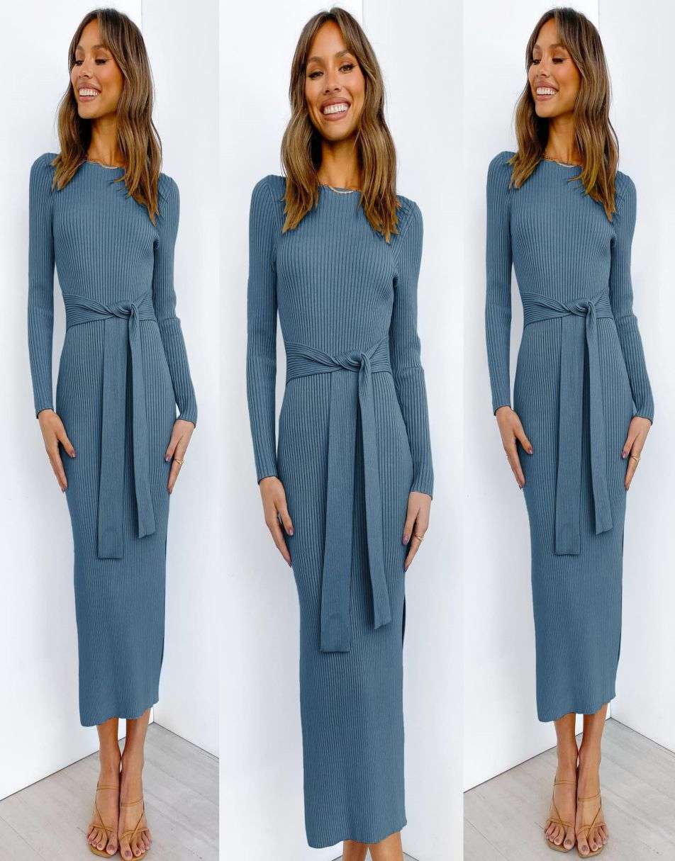 Anrabess Slim-fit Knitted slit Midi Sweater Dress