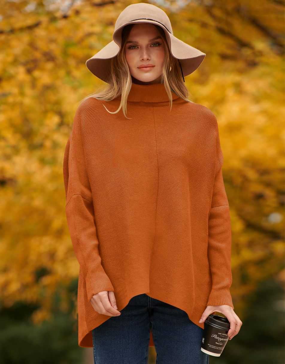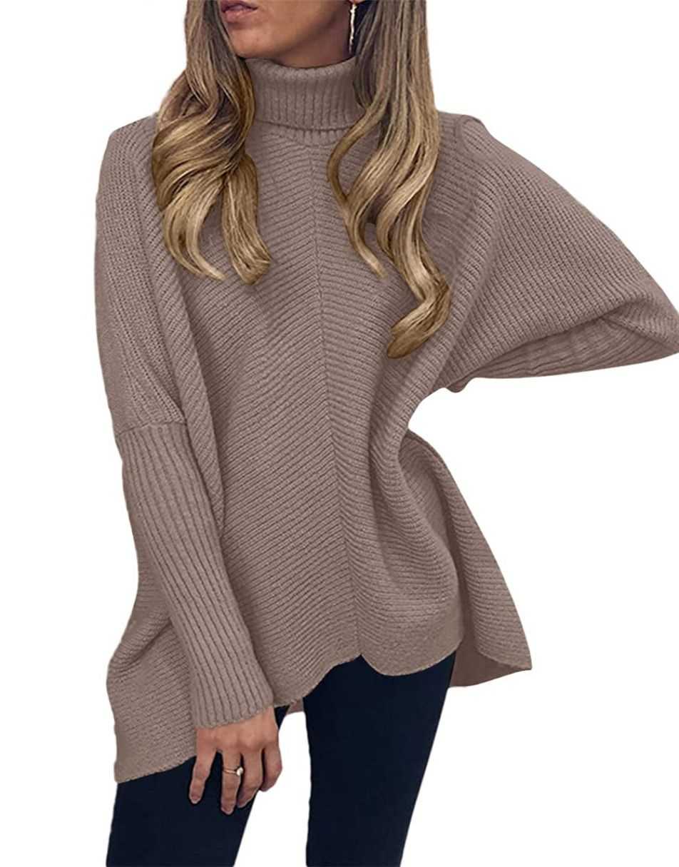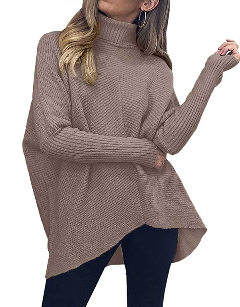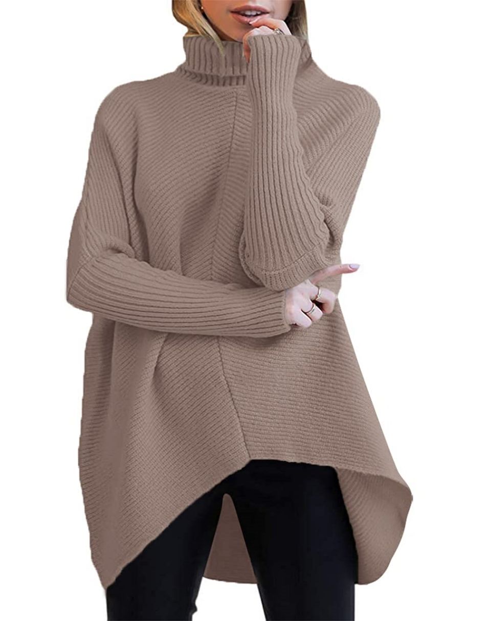 - Design - Turtle cowl neck锛�long batwing sleeve锛�high low asymmetric hem锛�solid color锛�tunic top sweater锛�knitwear casual style锛�oversized sweater.