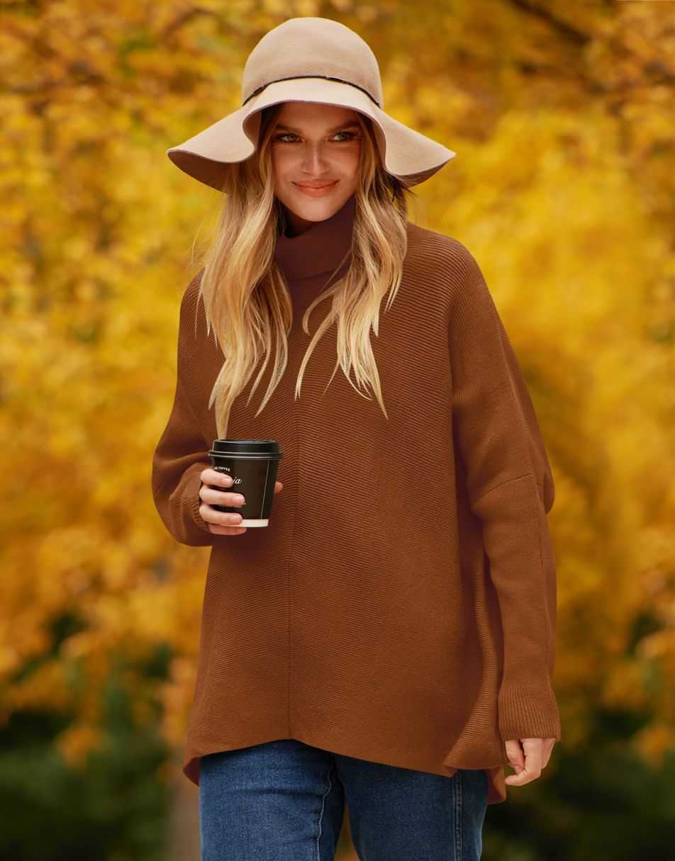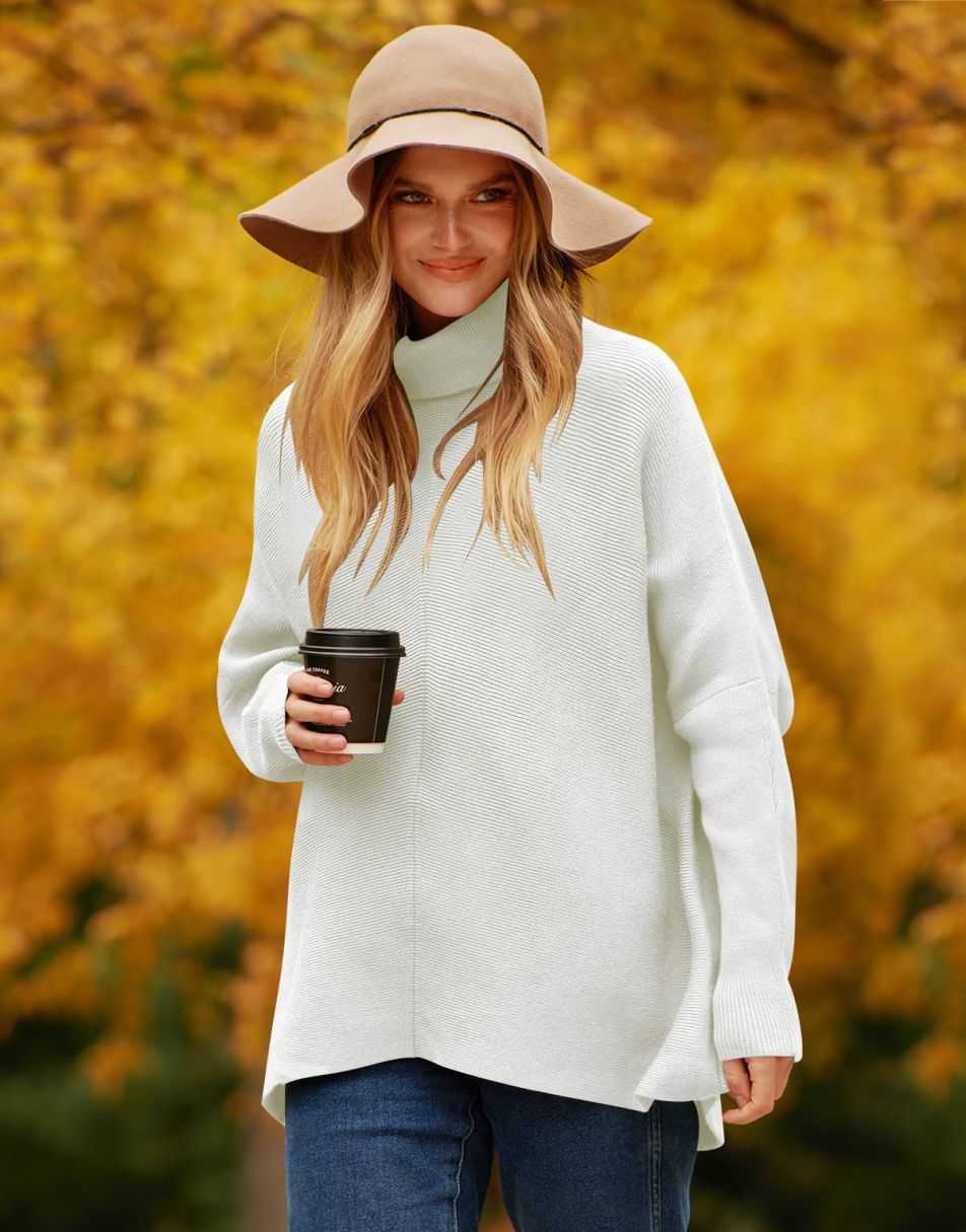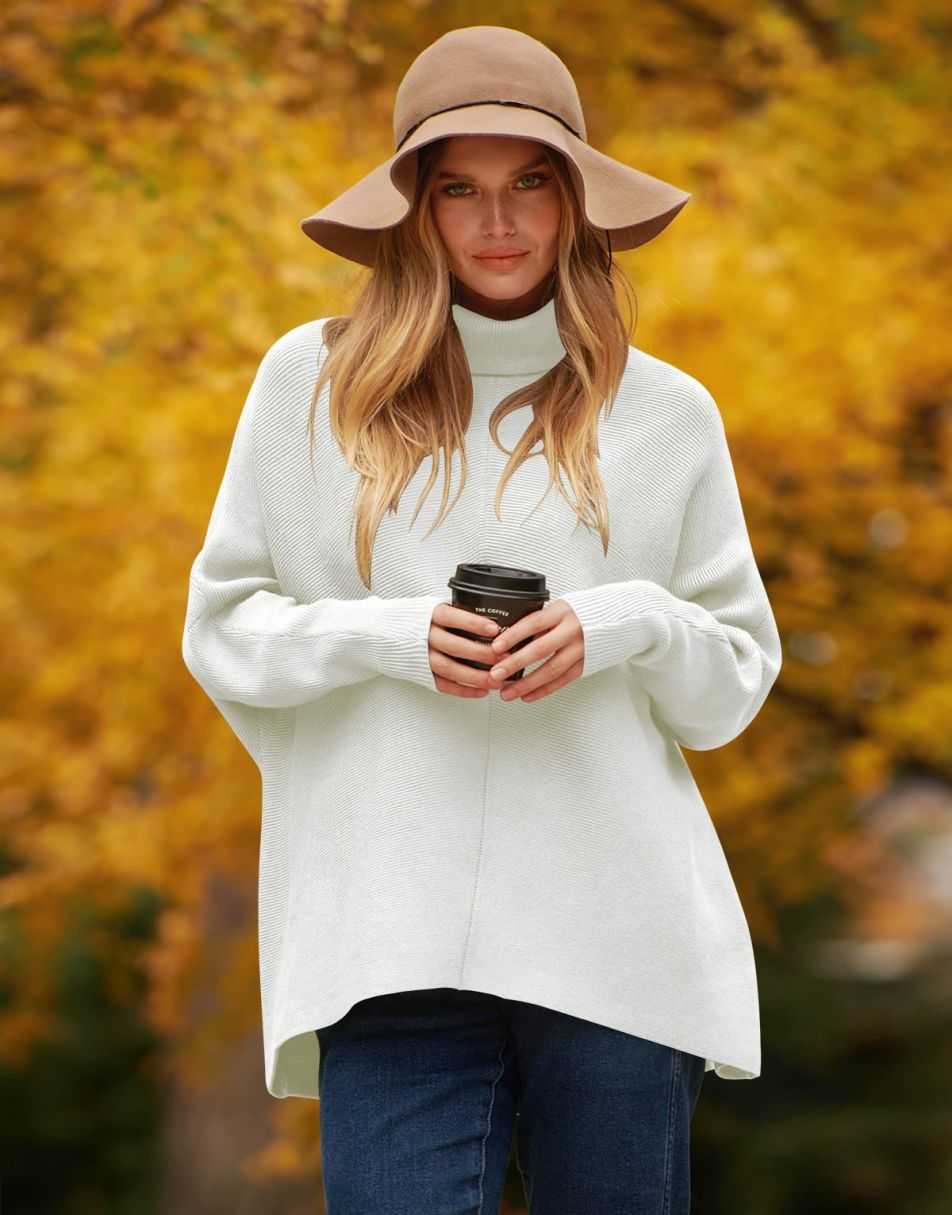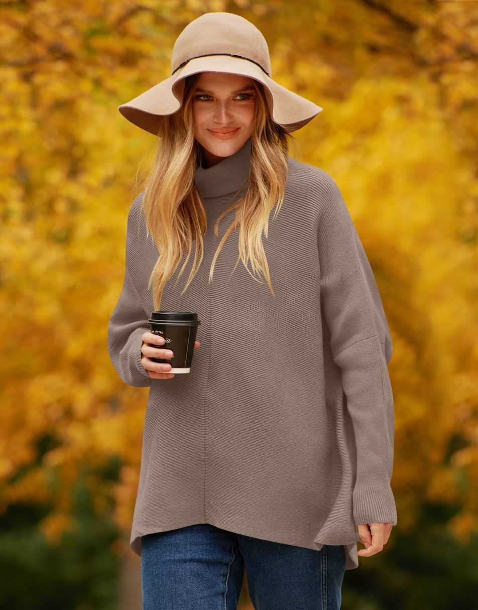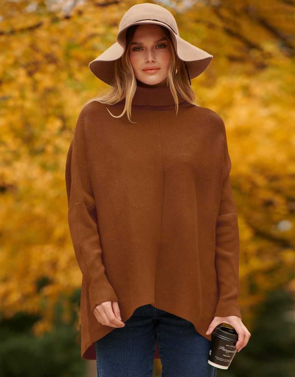 - Design - Turtle cowl neck锛�long batwing sleeve锛�high low asymmetric hem锛�solid color锛�tunic top sweater锛�knitwear casual style锛�oversized sweater.