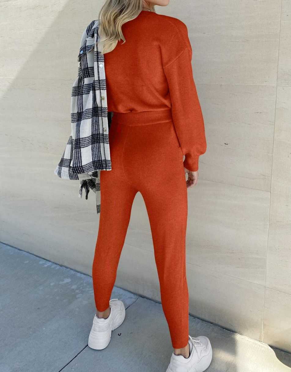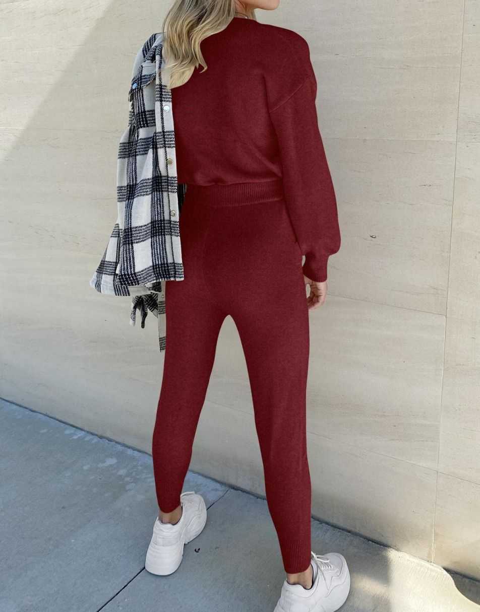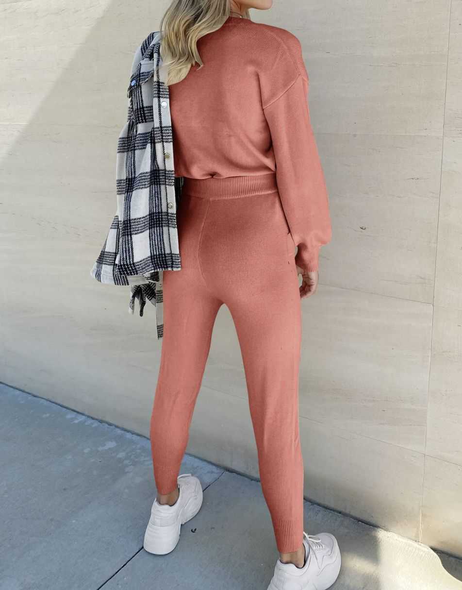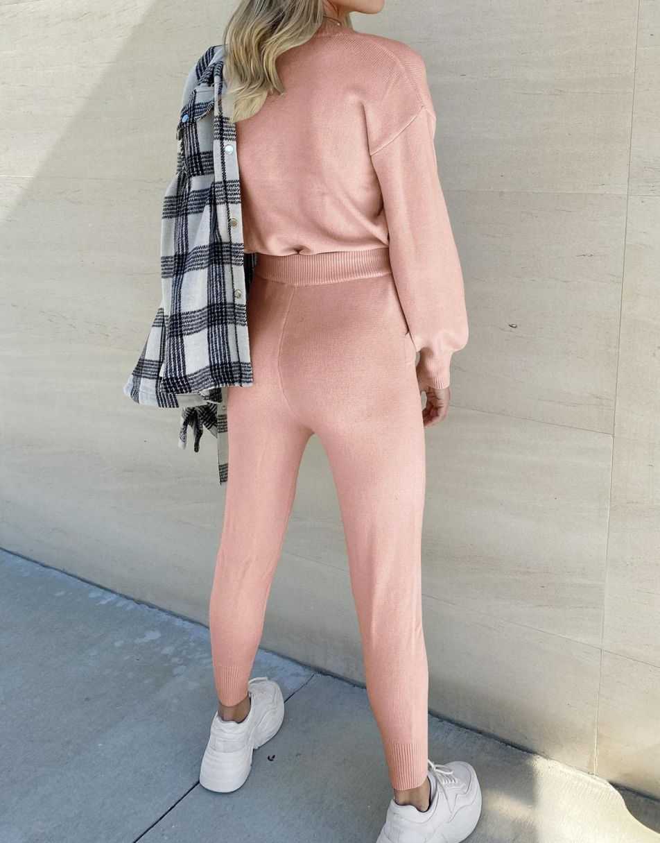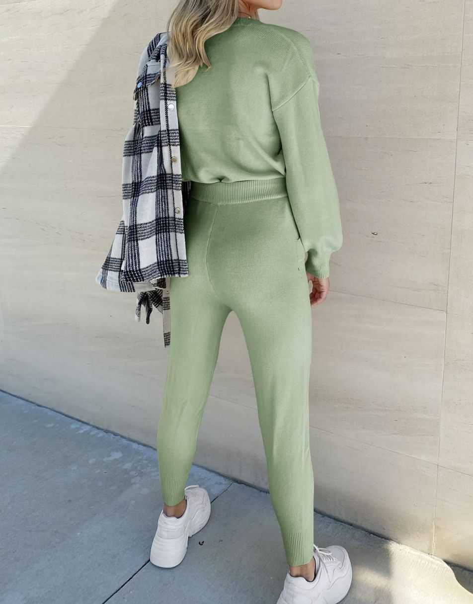 • STYLE: Two-piece set/long sleeve pullover tops/crew-neck/solid color/drawstring high waist pants/beam foot