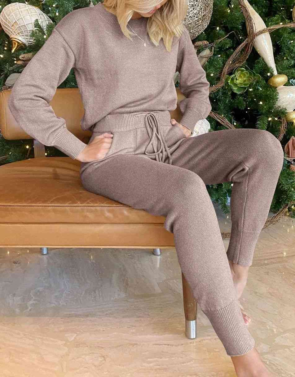 ANRABESS Women's Two Piece Outfits Sweater Sets Pullover and Drawstring Pants Lounge Sets