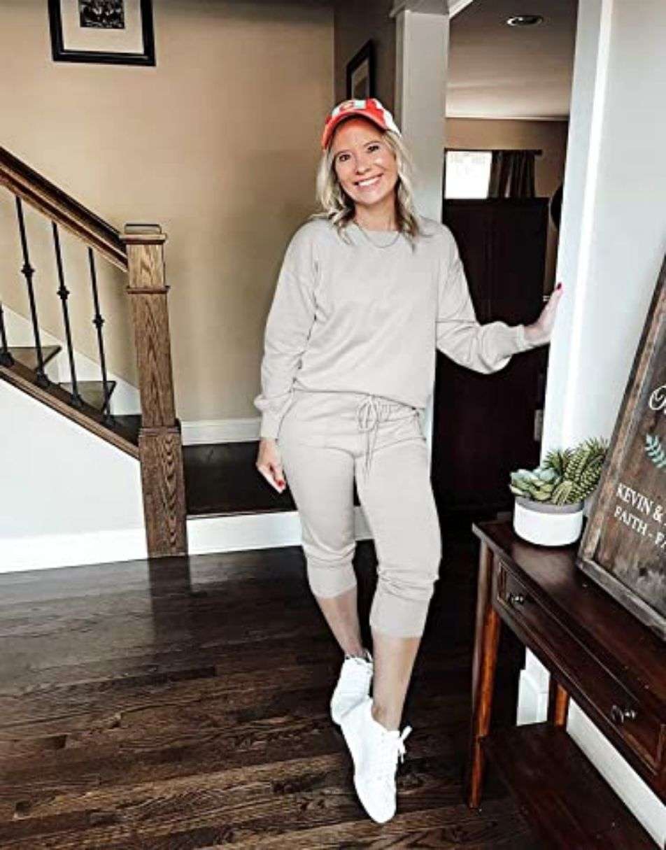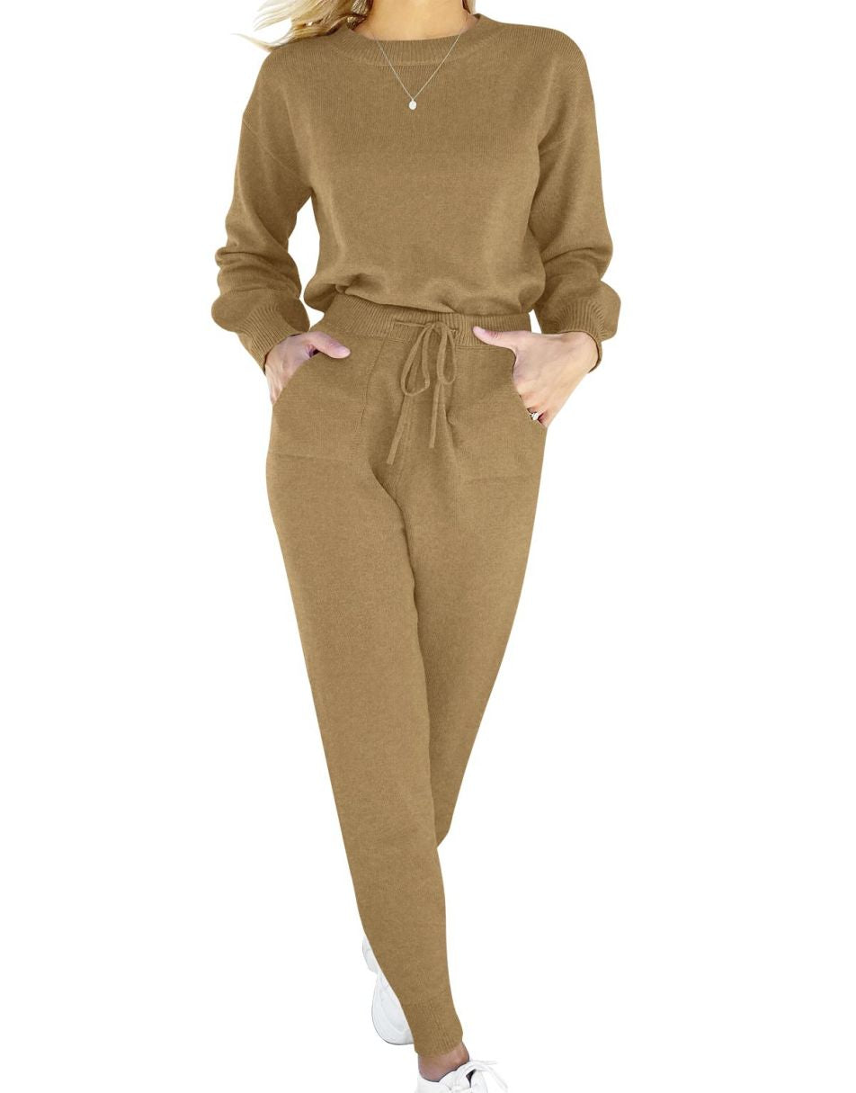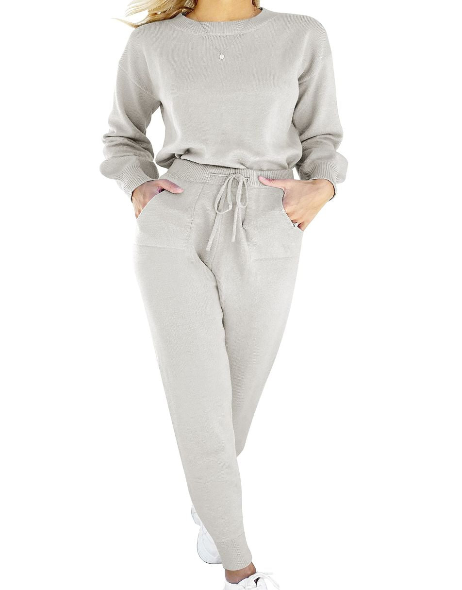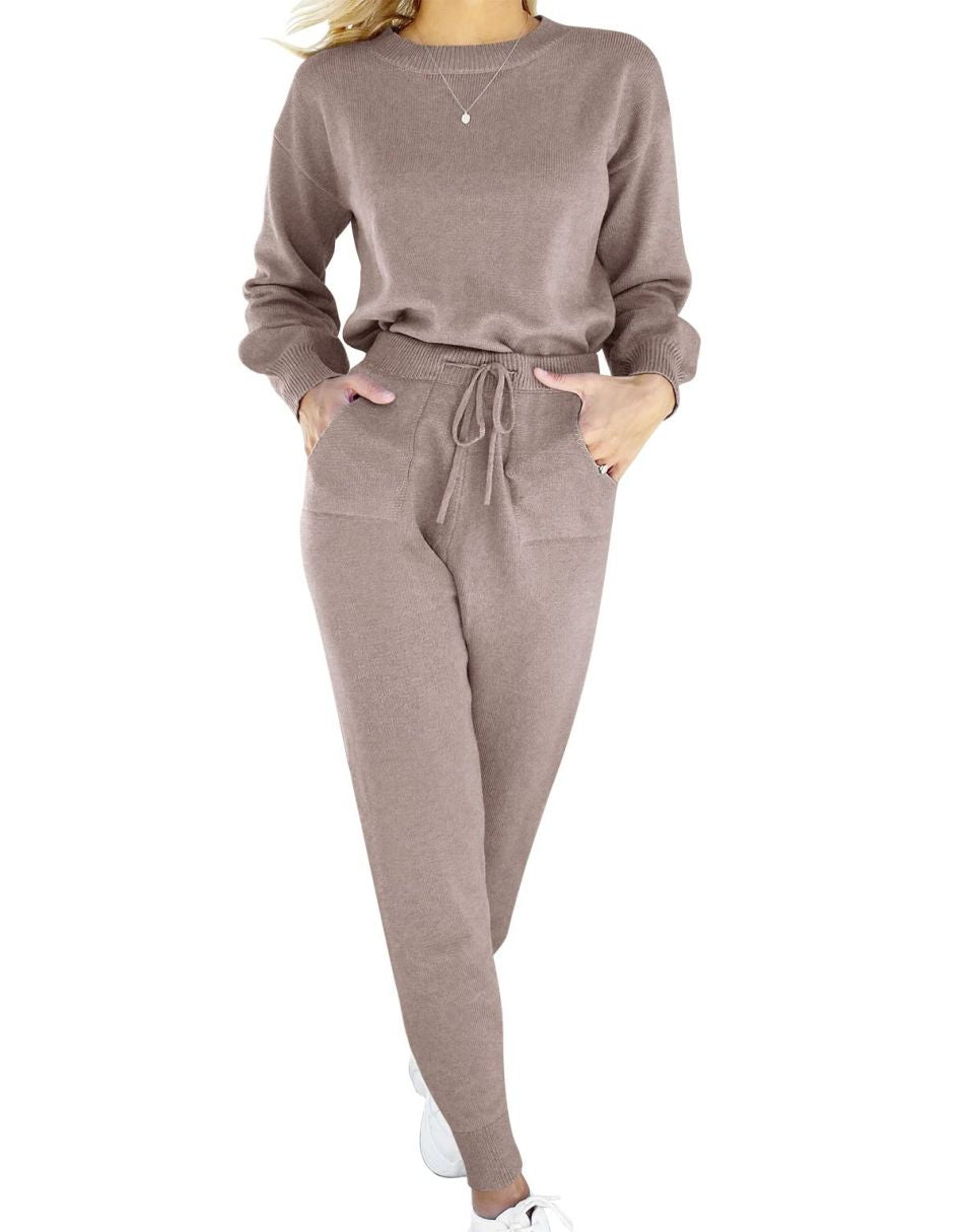 • ANRABESS Women's Two Piece Outfits Sweater Sets Pullover and Drawstring Pants Lounge Sets