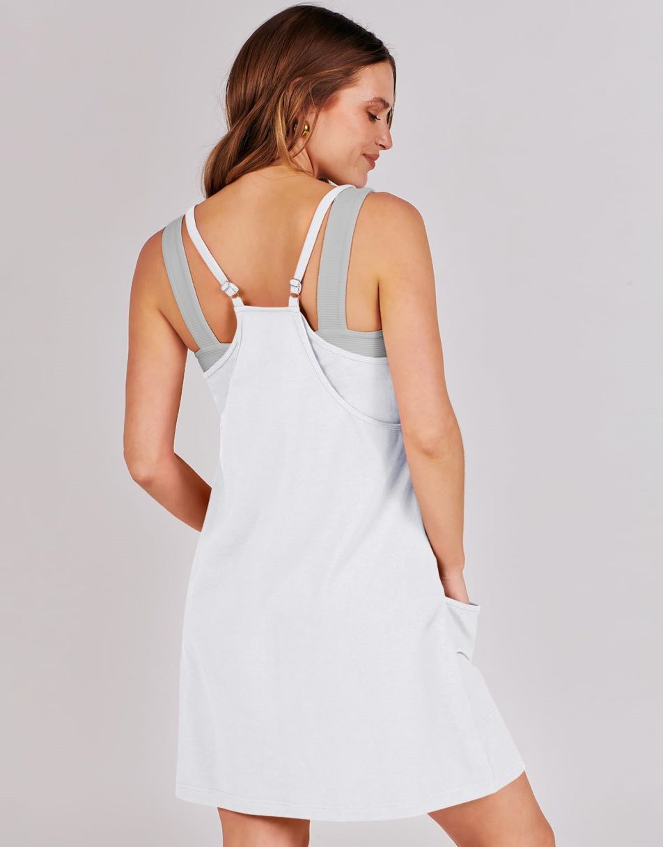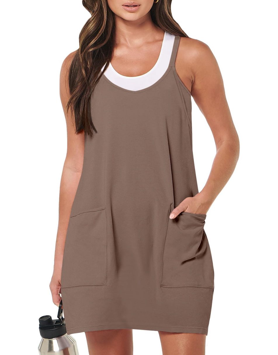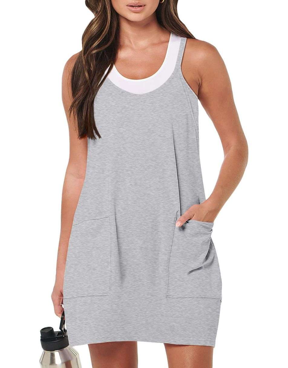 - Features - This workout mini dress build in shapewear featured spaghetti straps, V neck, patch pockets, solid color, making it perfect for staying cool and stylish during hot summer days.