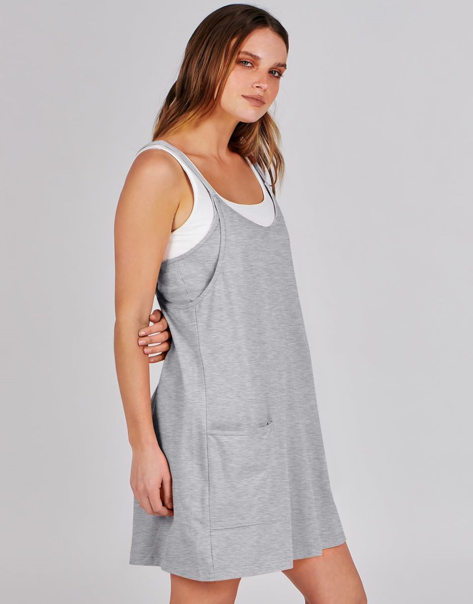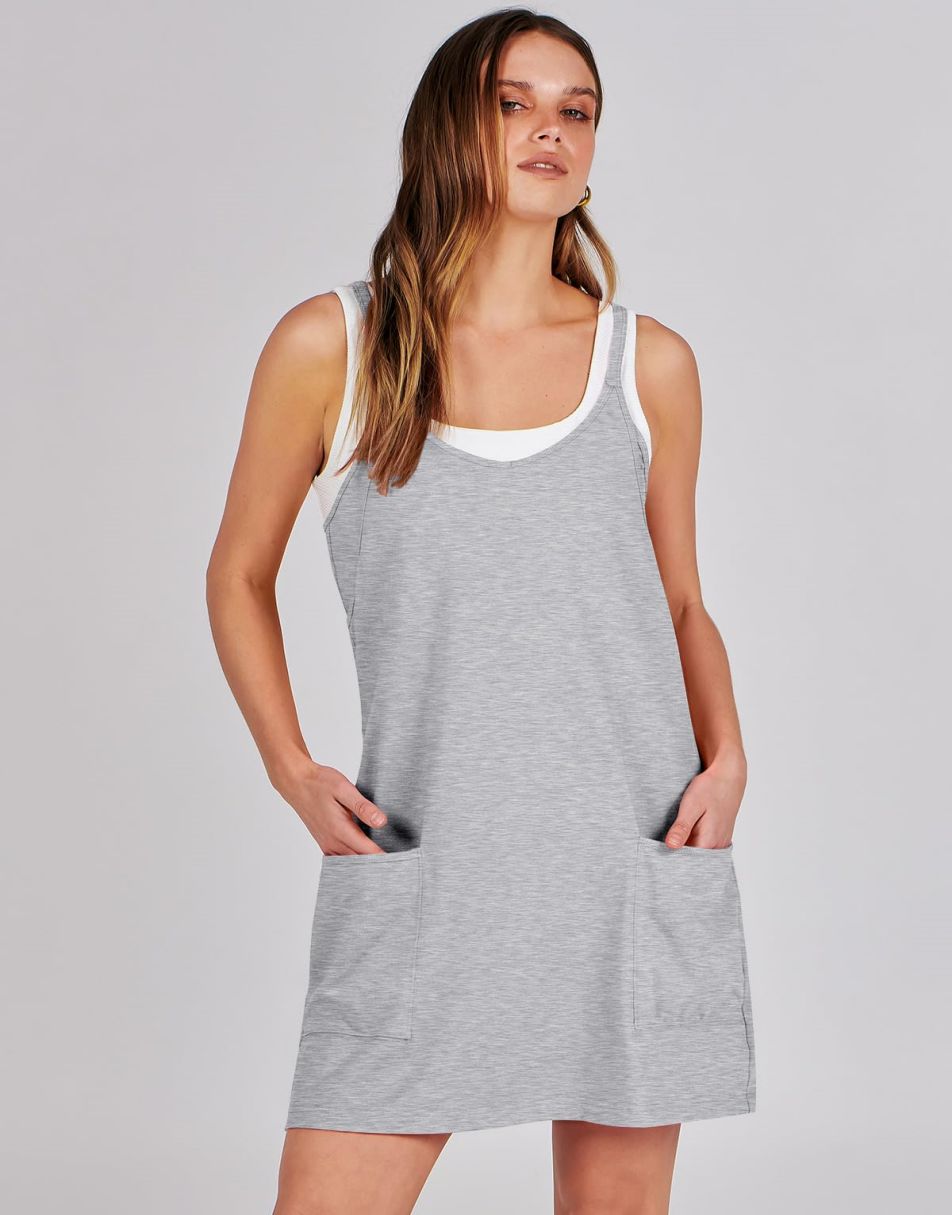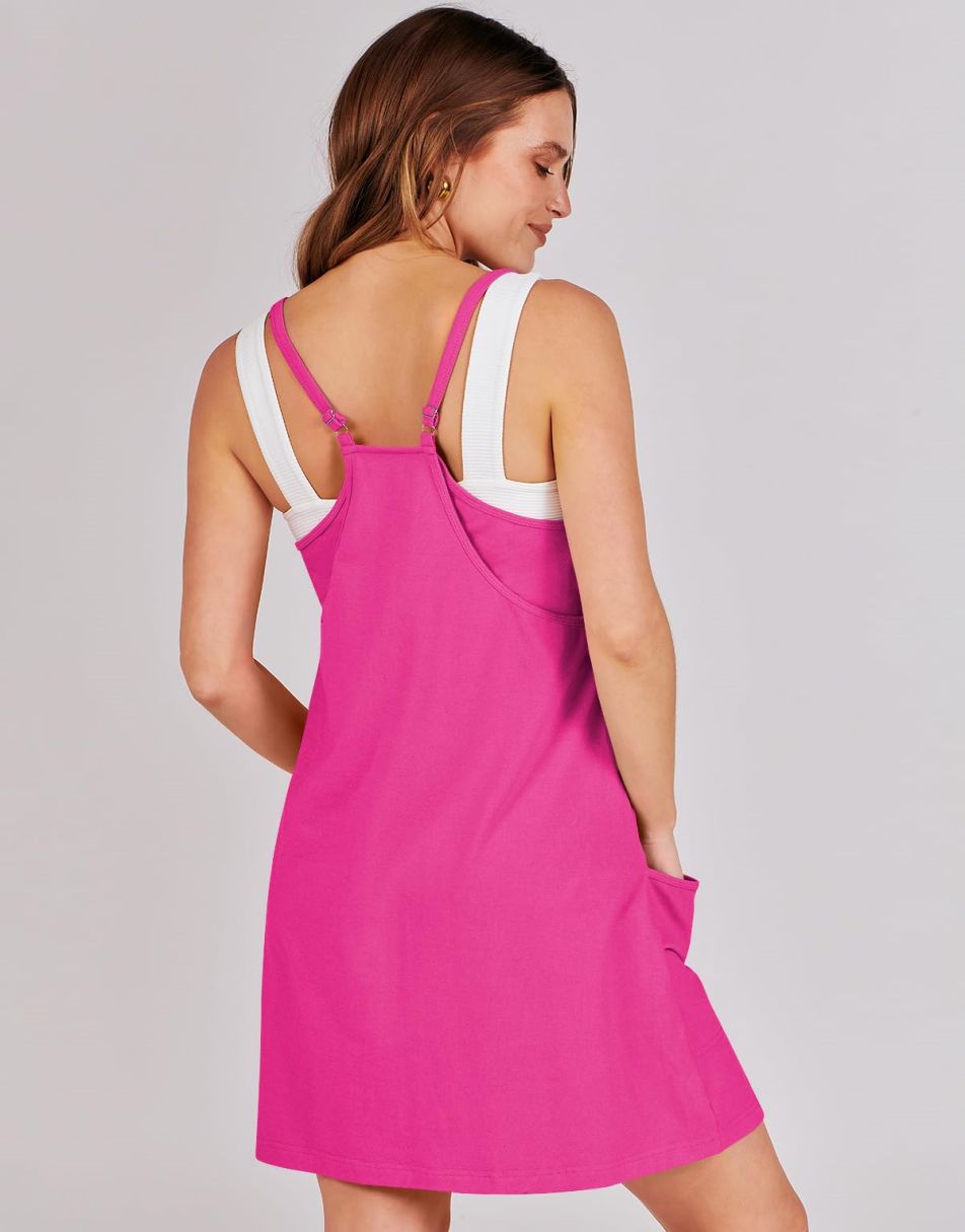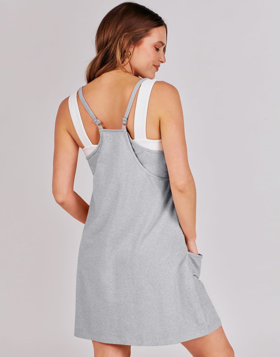 - Features - This workout mini dress build in shapewear featured spaghetti straps, V neck, patch pockets, solid color, making it perfect for staying cool and stylish during hot summer days.