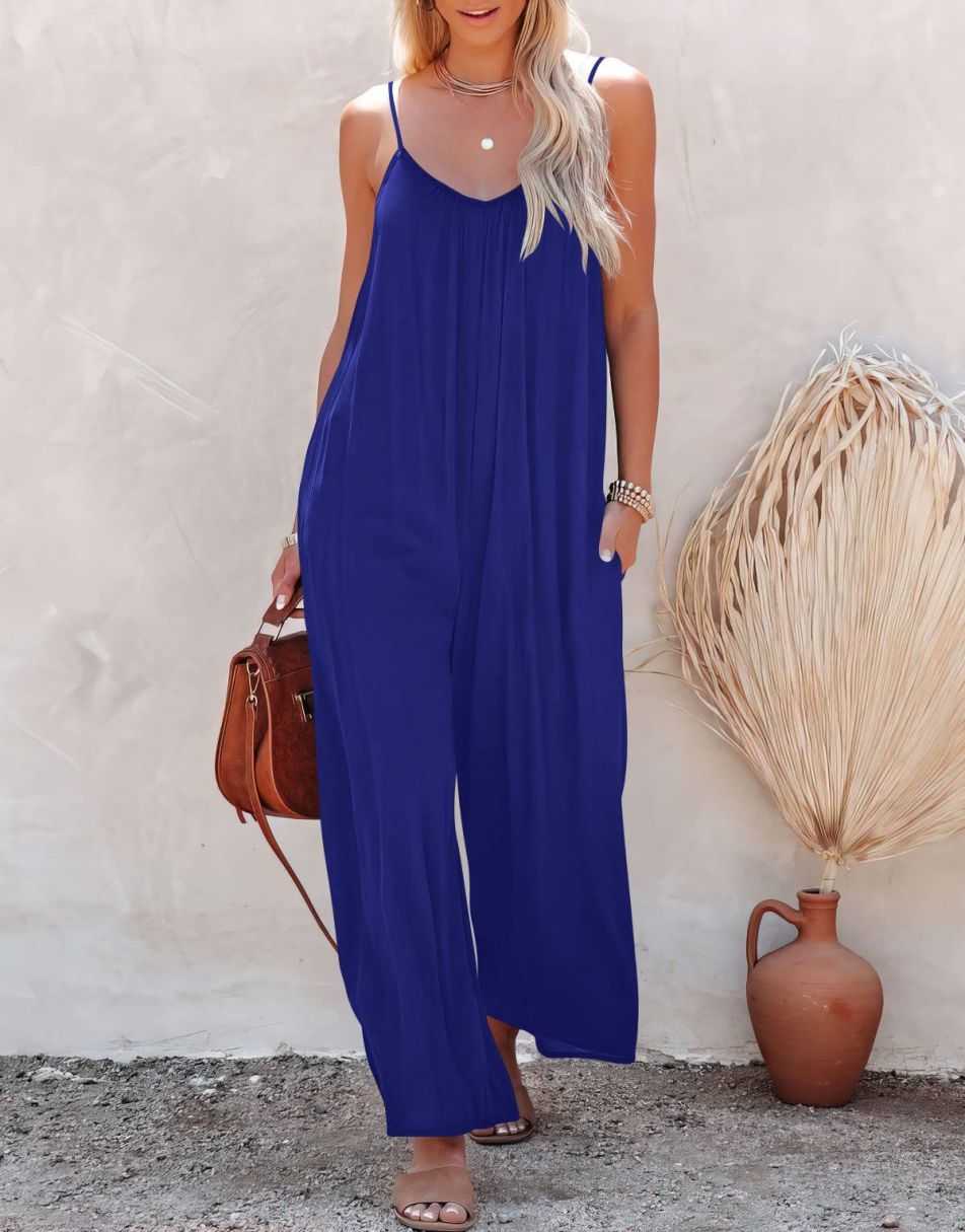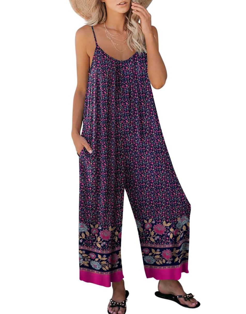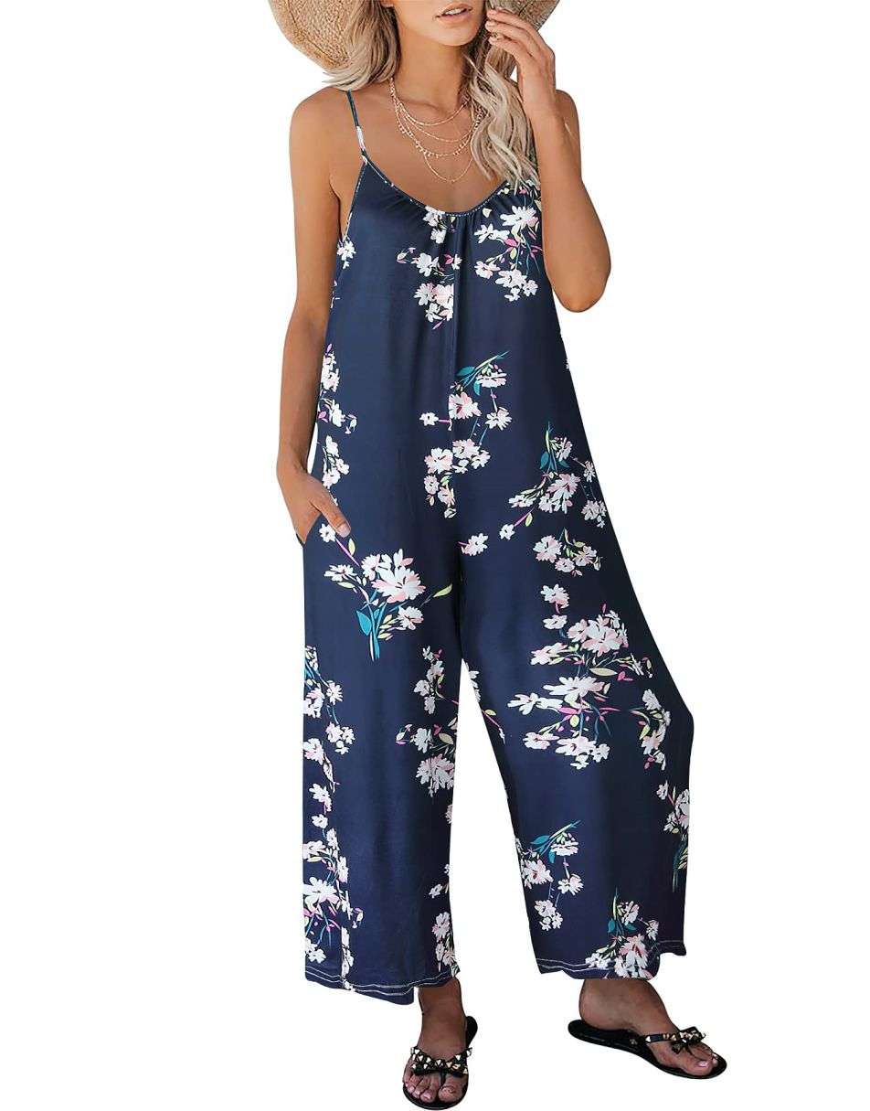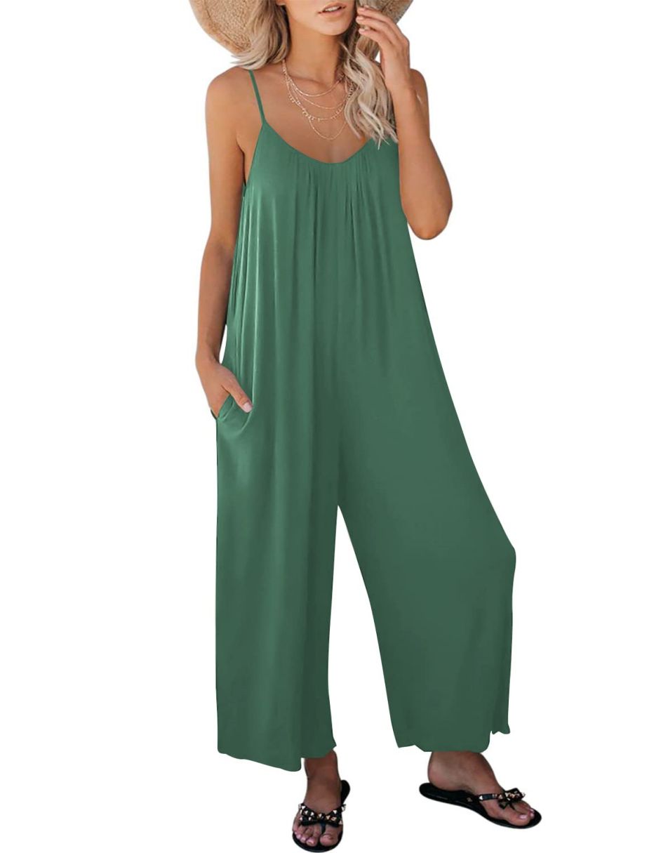 • Features: Adjustable spaghetti strap,loose and free on waist area ,easy to put on and off锛�wide leg romper, two sides pockets, long romper for women