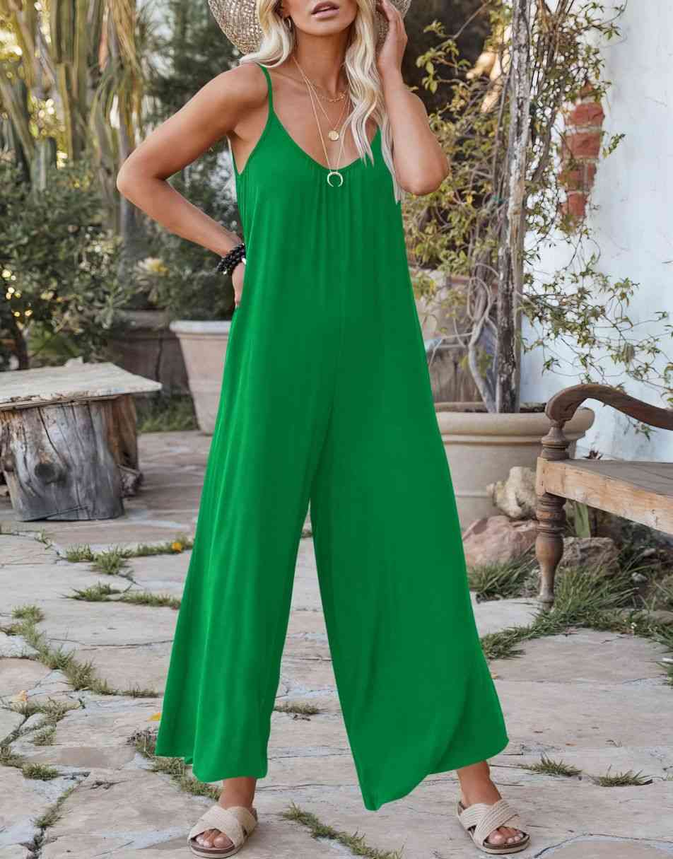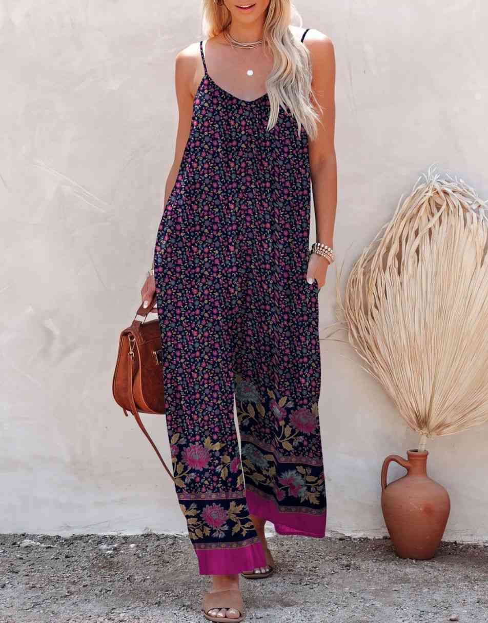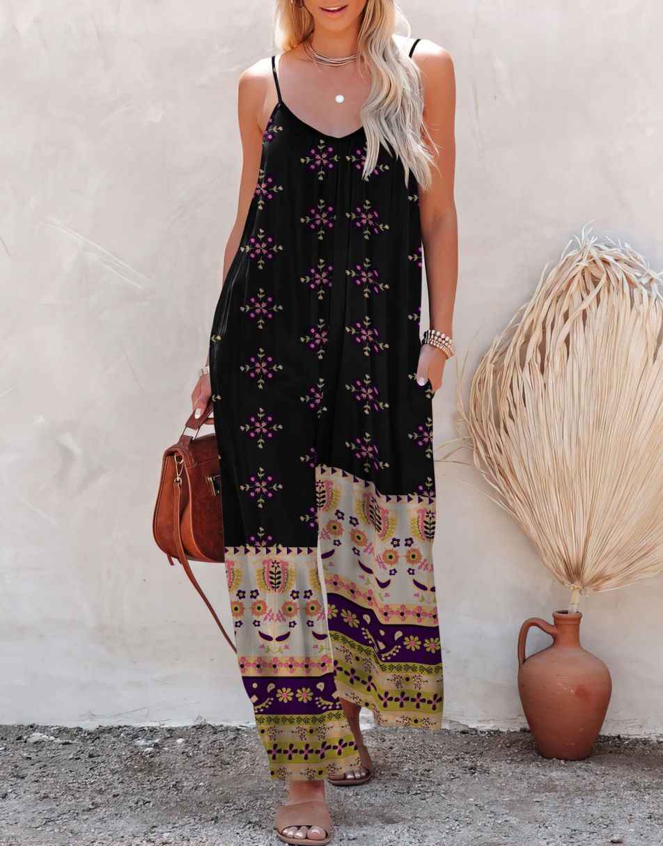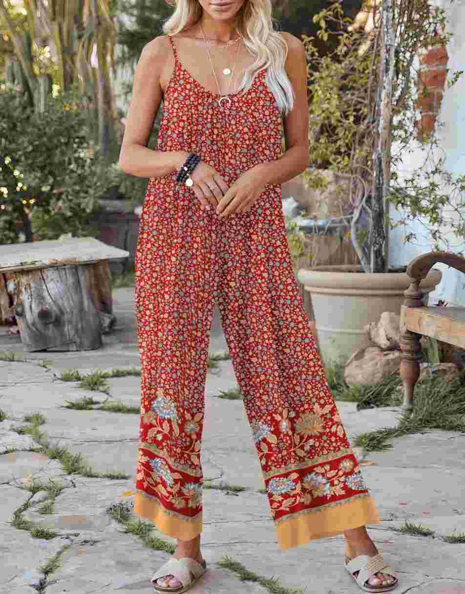 • Features: Adjustable spaghetti strap,loose and free on waist area ,easy to put on and off锛�wide leg romper, two sides pockets, long romper for women