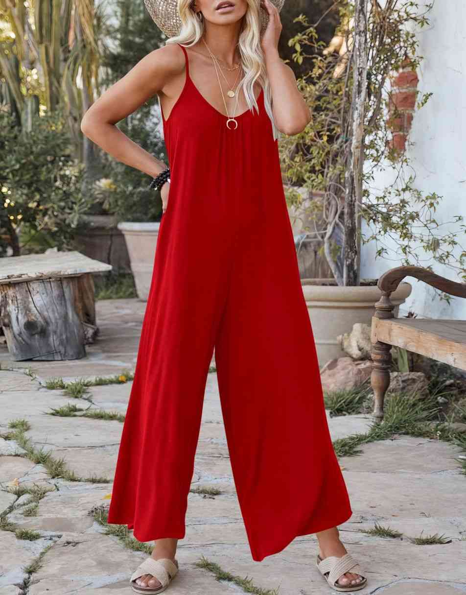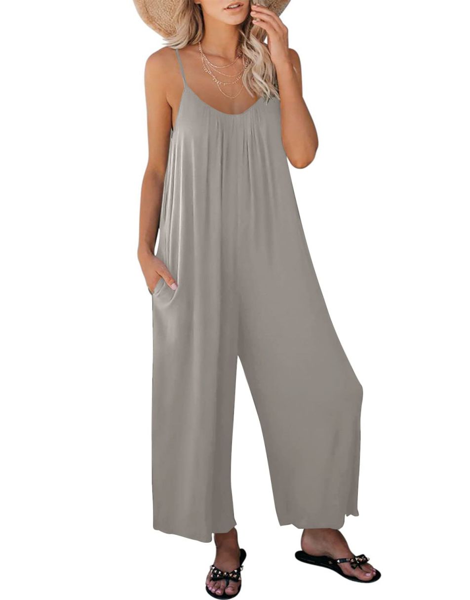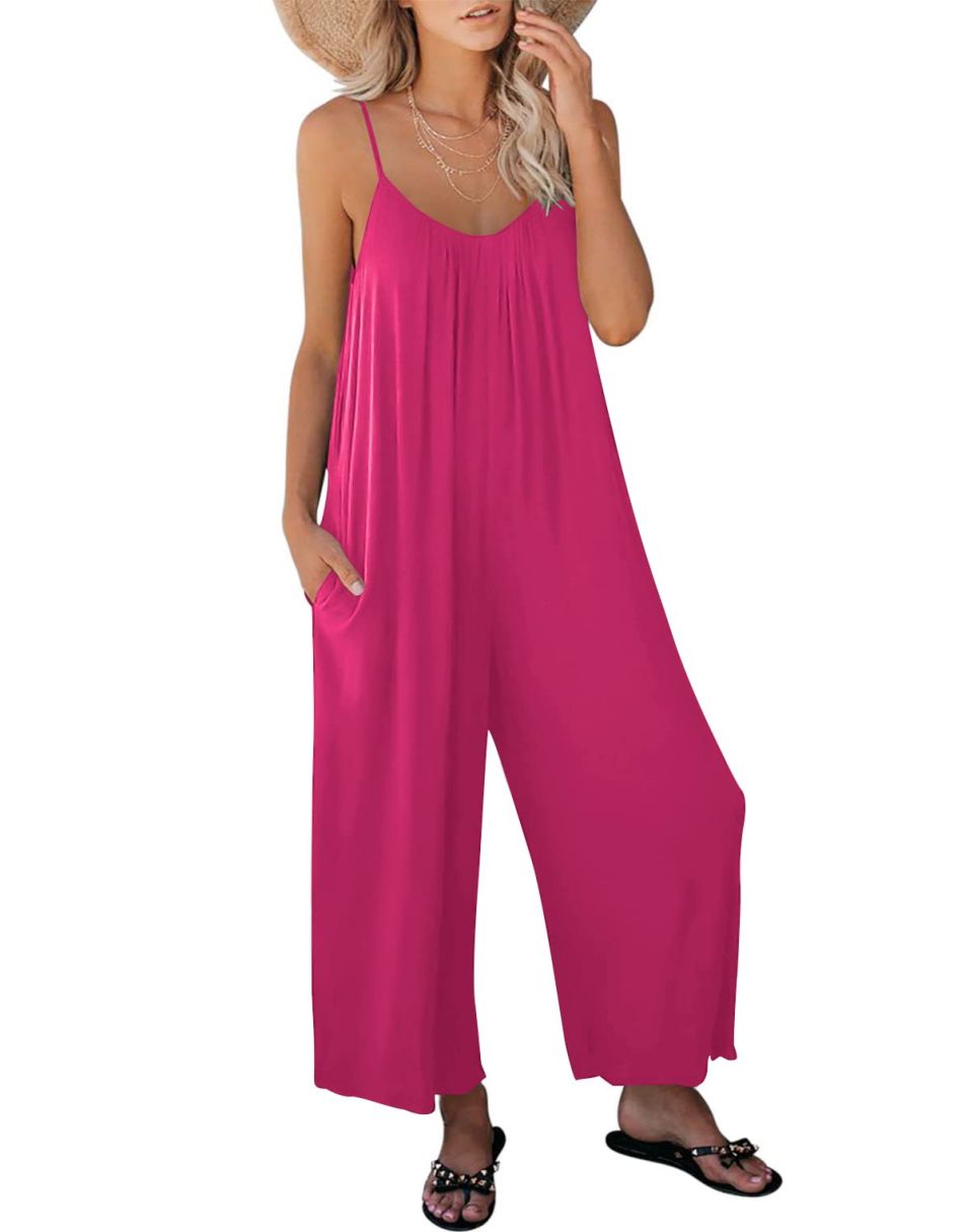 • ANRABESS Loose Adjustable Spaghetti Strap Jumpsuits Stretchy Wide Leg Rompers with Two Pockets