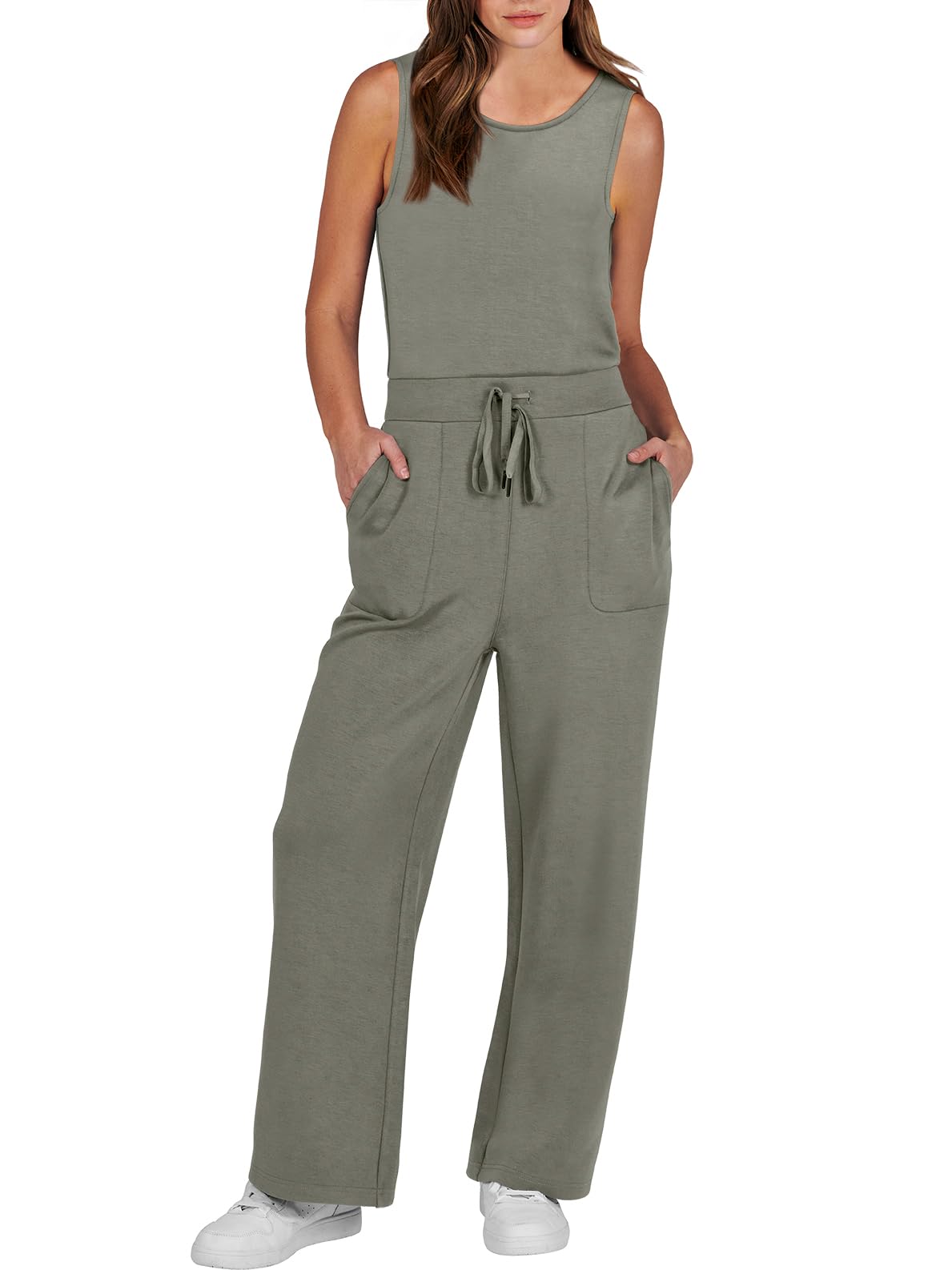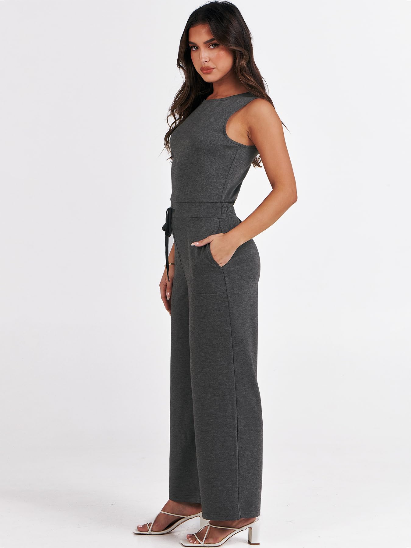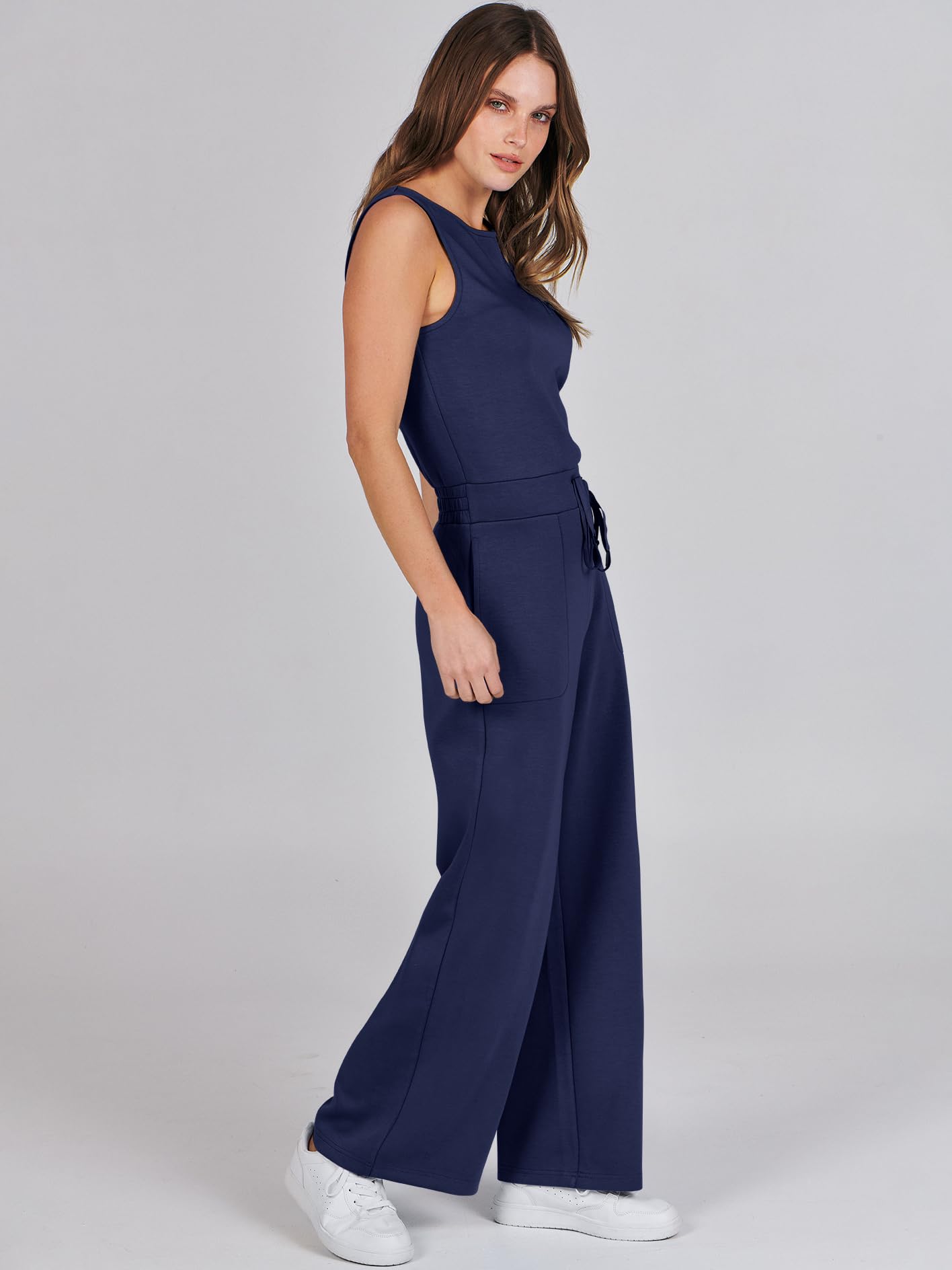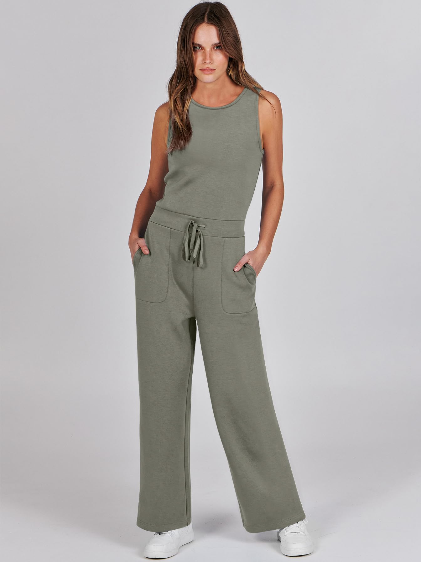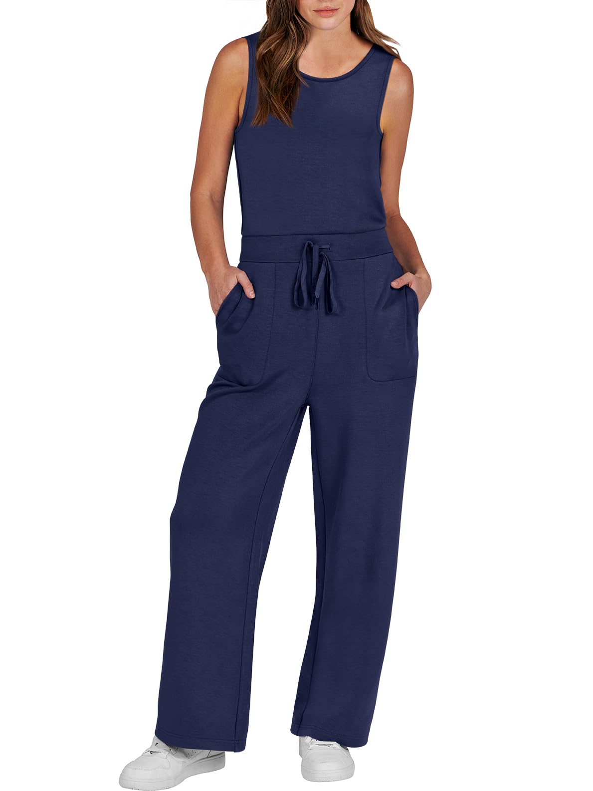 • ANRABESS Air Essentials Jumpsuits for Women Casual Summer Romper Sleeveless Wide Leg Long Pants Jumpsuit Jumper