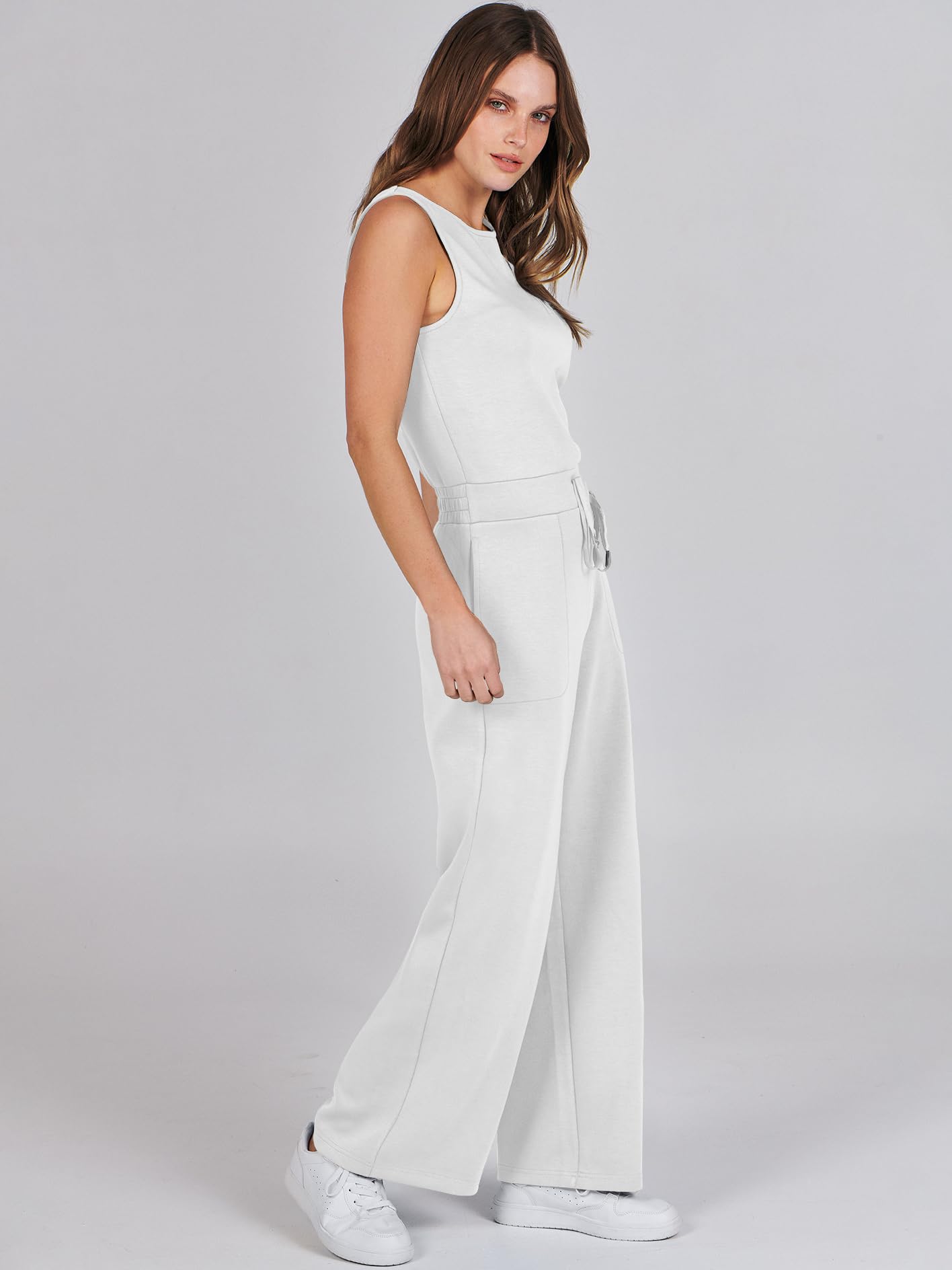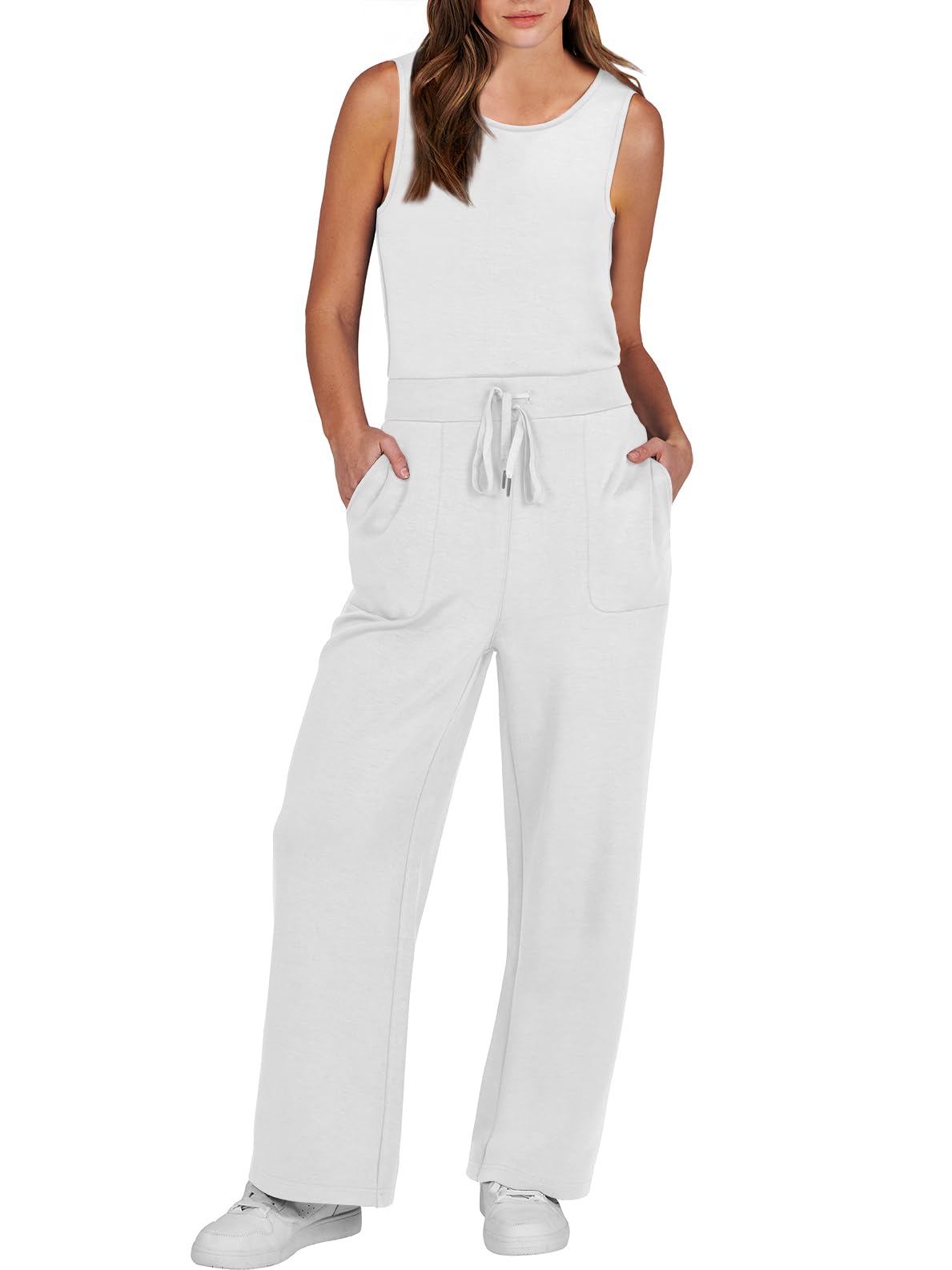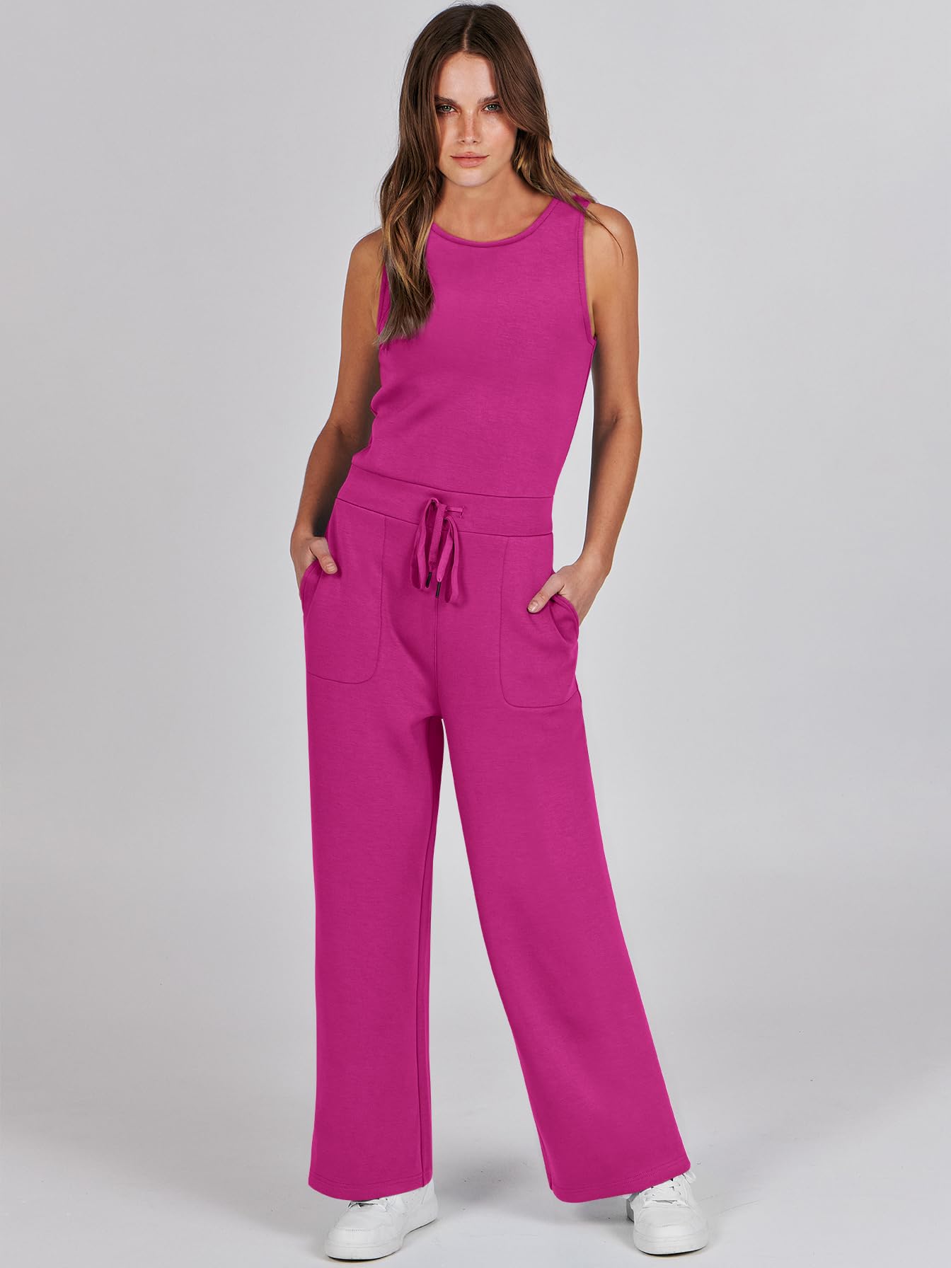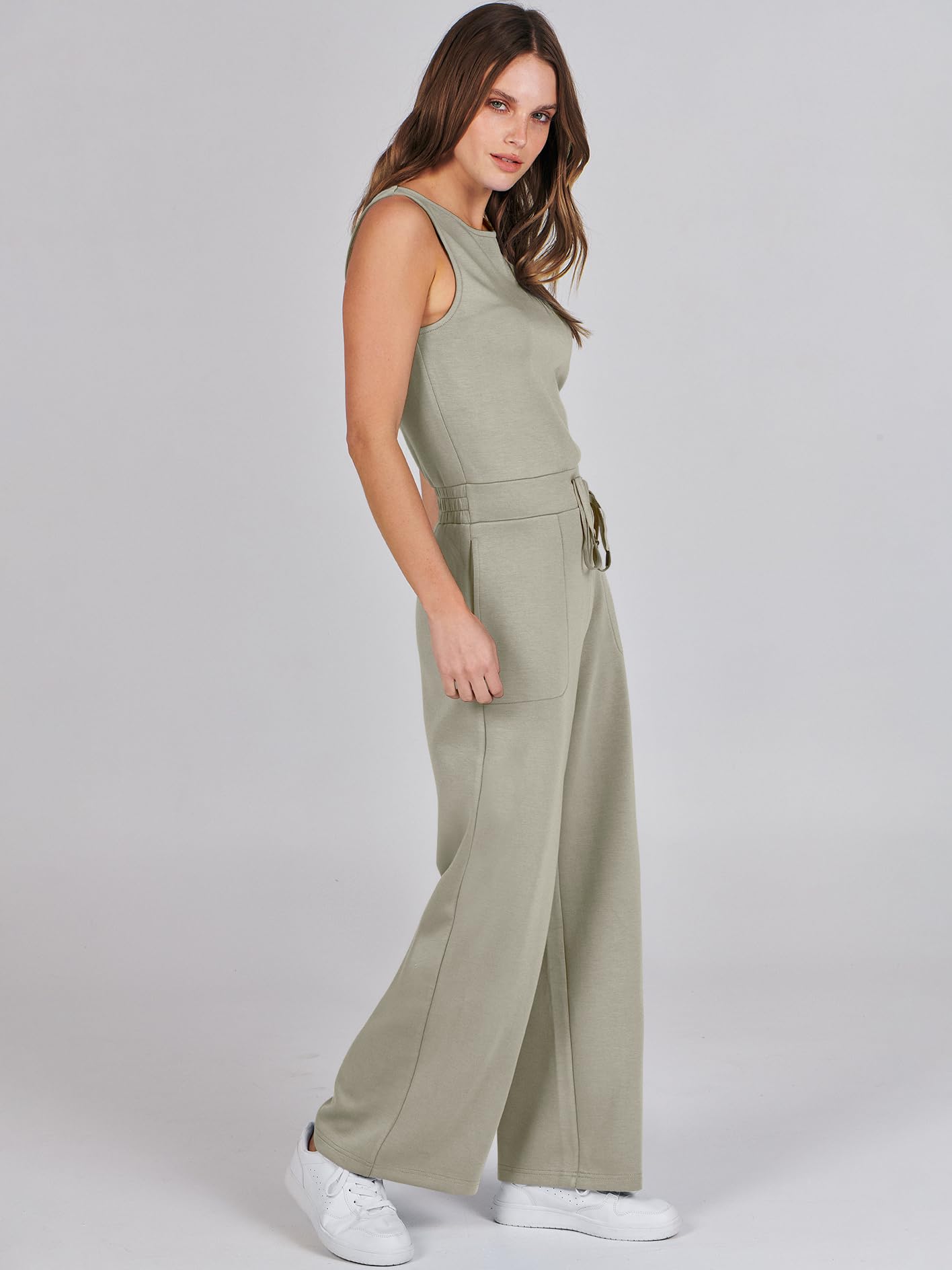 • ANRABESS Air Essentials Jumpsuits for Women Casual Summer Romper Sleeveless Wide Leg Long Pants Jumpsuit Jumper