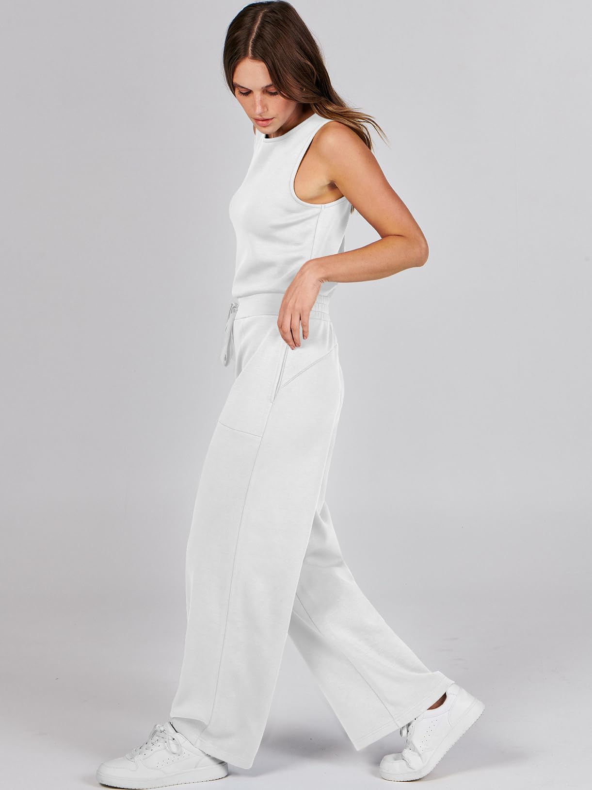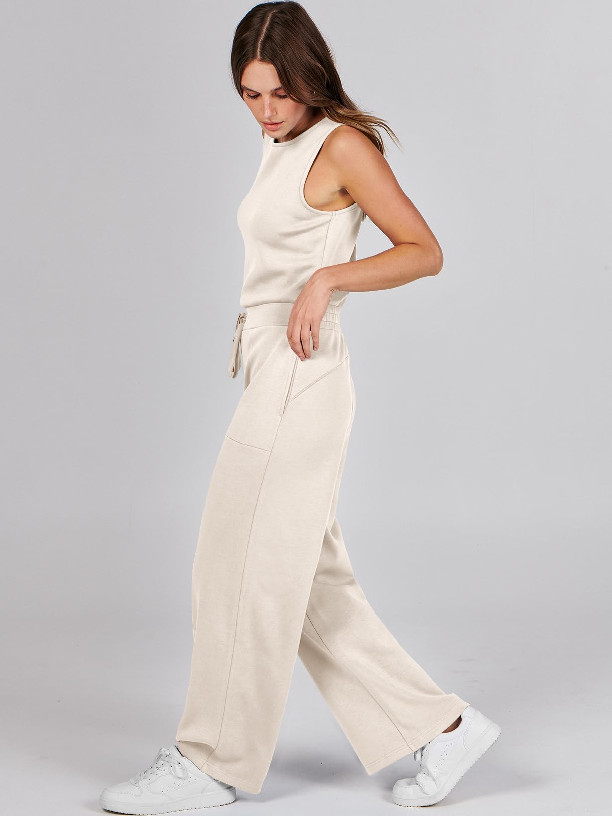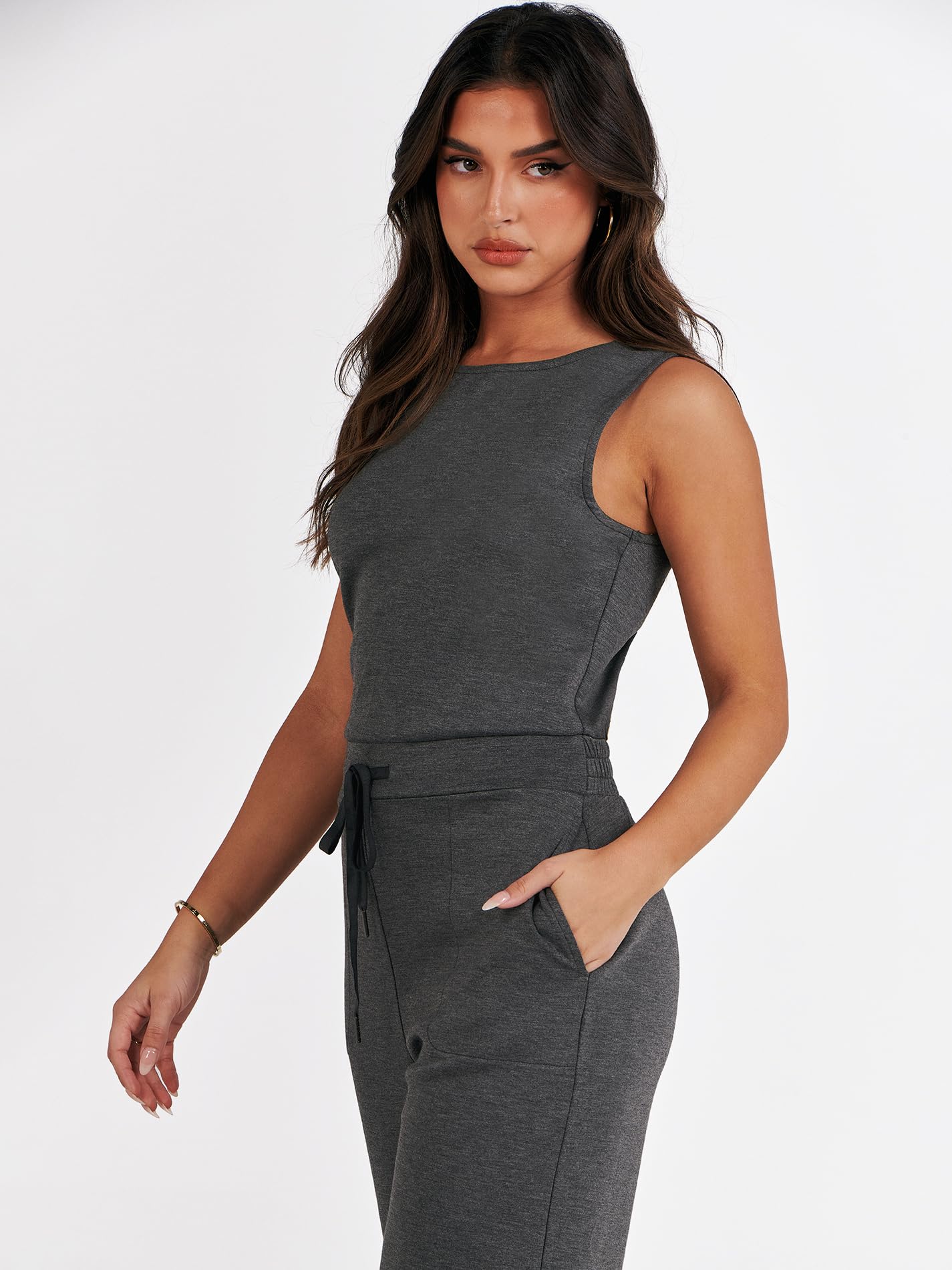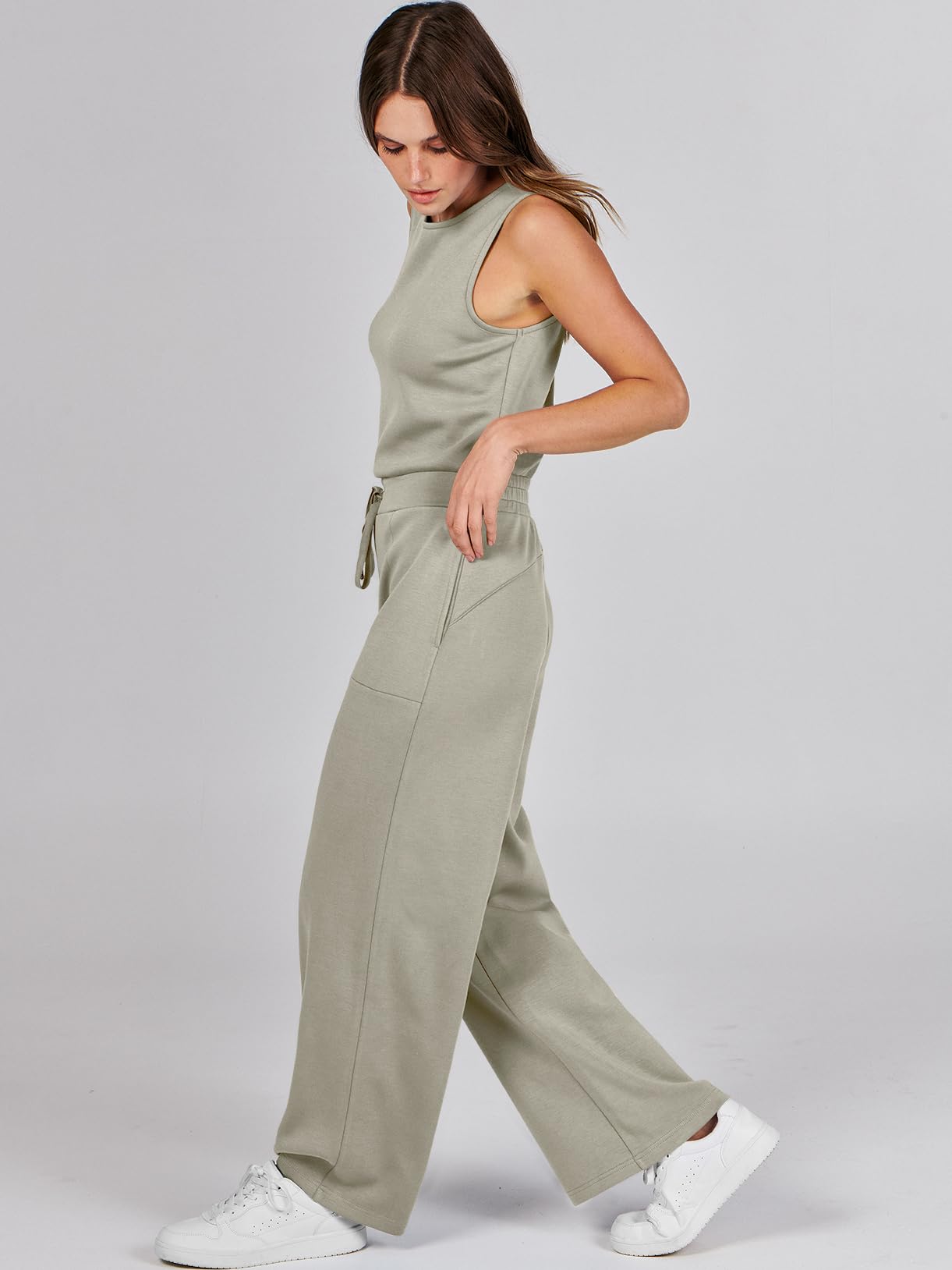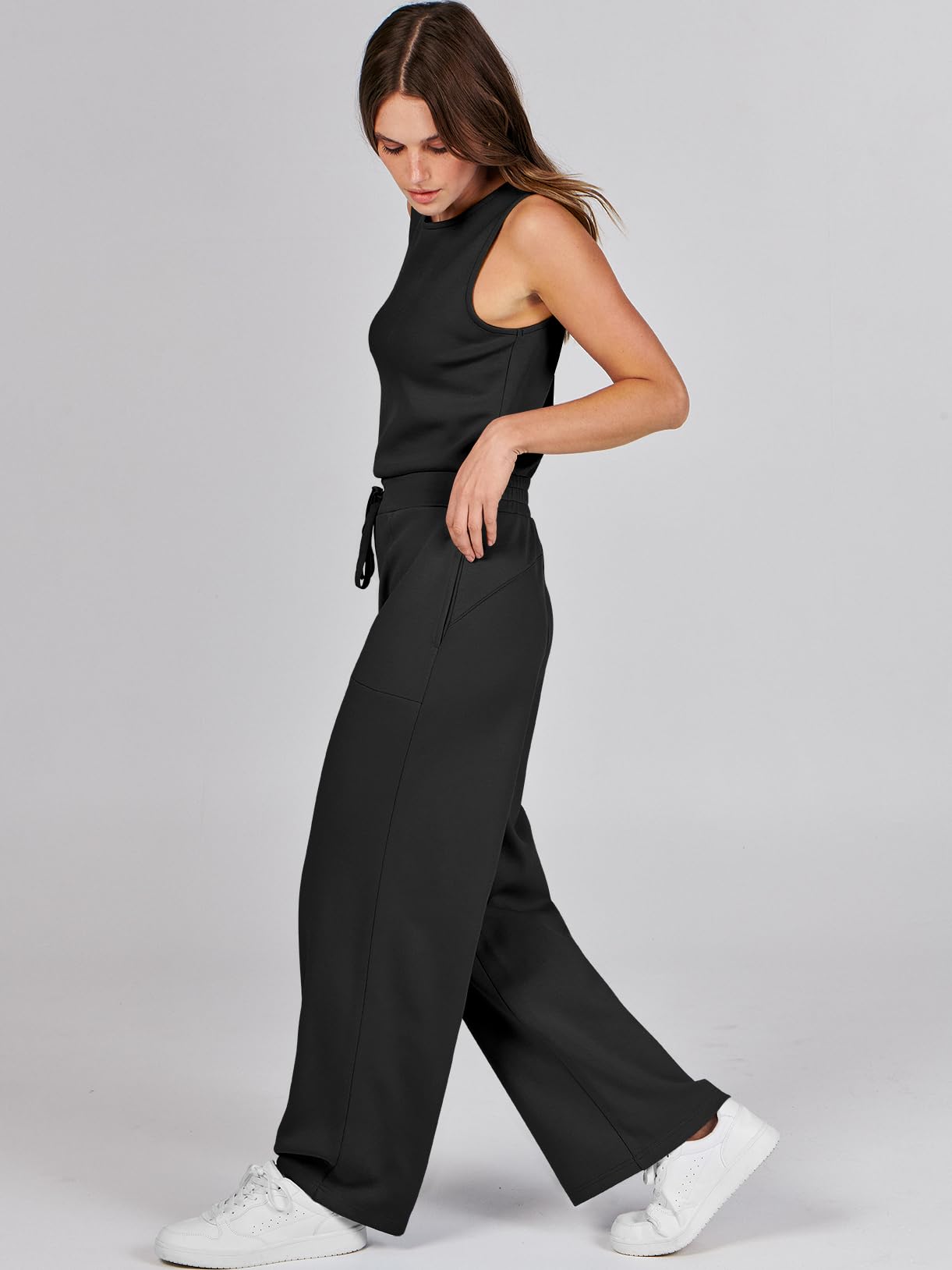 • ANRABESS Air Essentials Jumpsuits for Women Casual Summer Romper Sleeveless Wide Leg Long Pants Jumpsuit Jumper