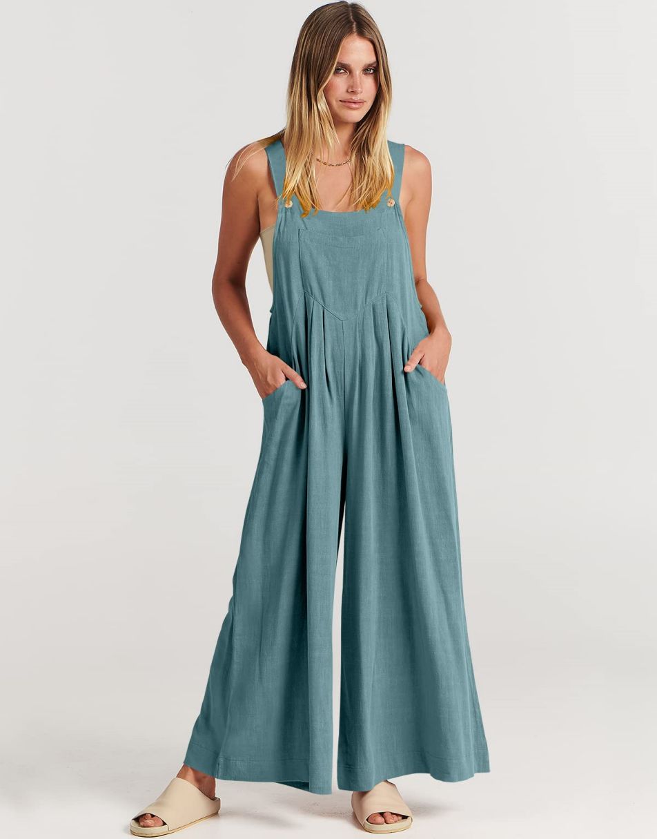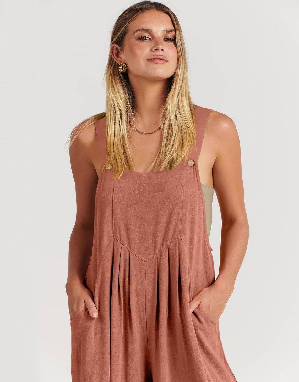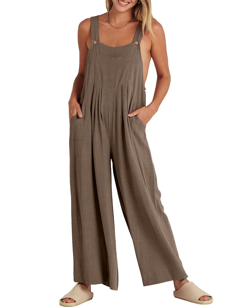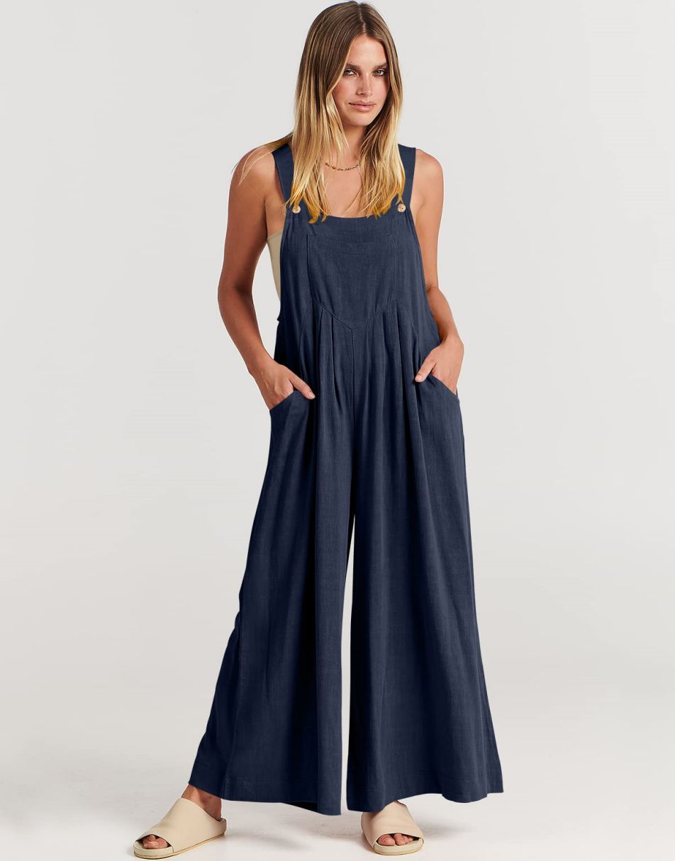 • ANRABESS Women's Overalls Jumpsuit Casual Loose Sleeveless Adjustable Straps Bib Wide Leg Outfits with Pockets