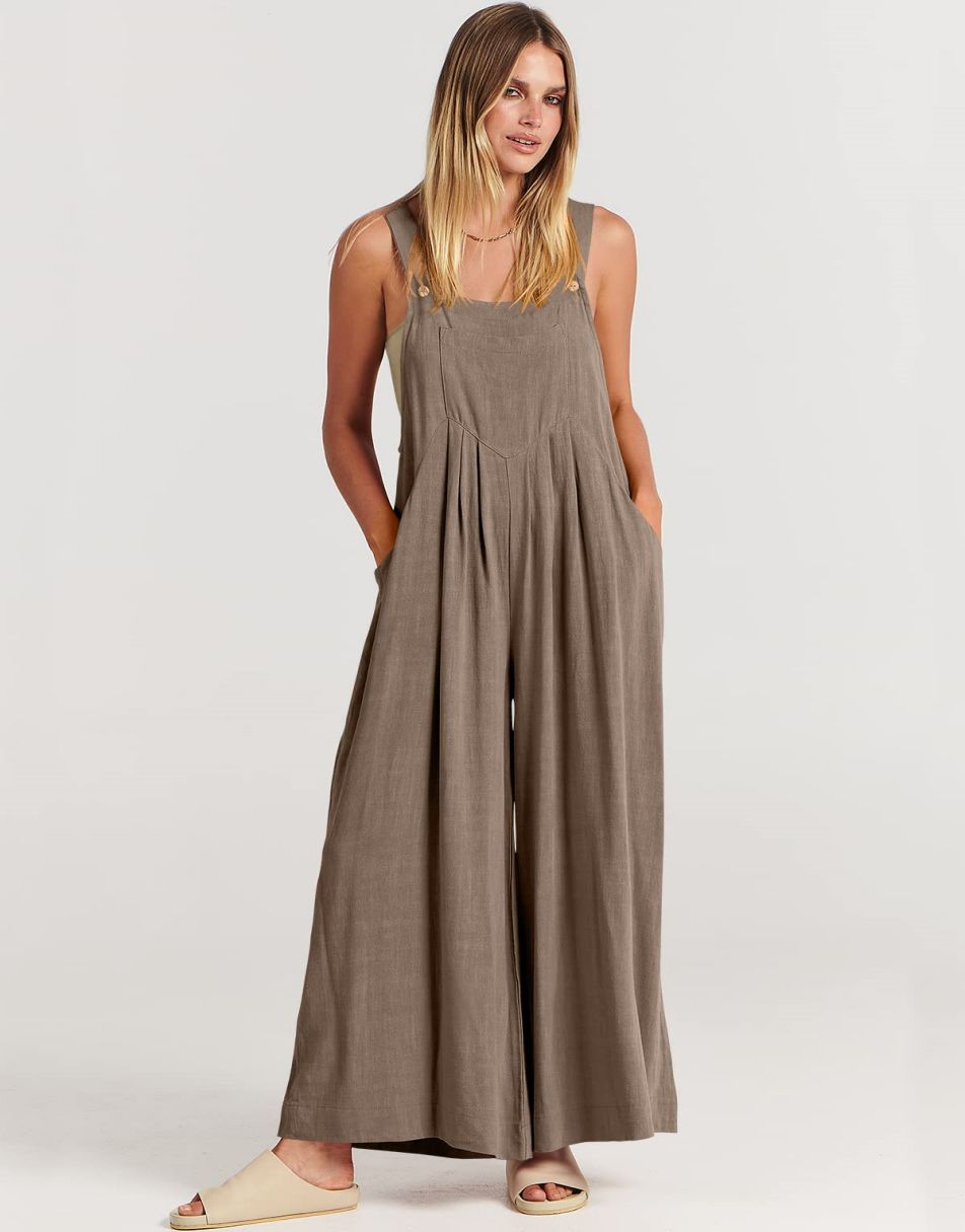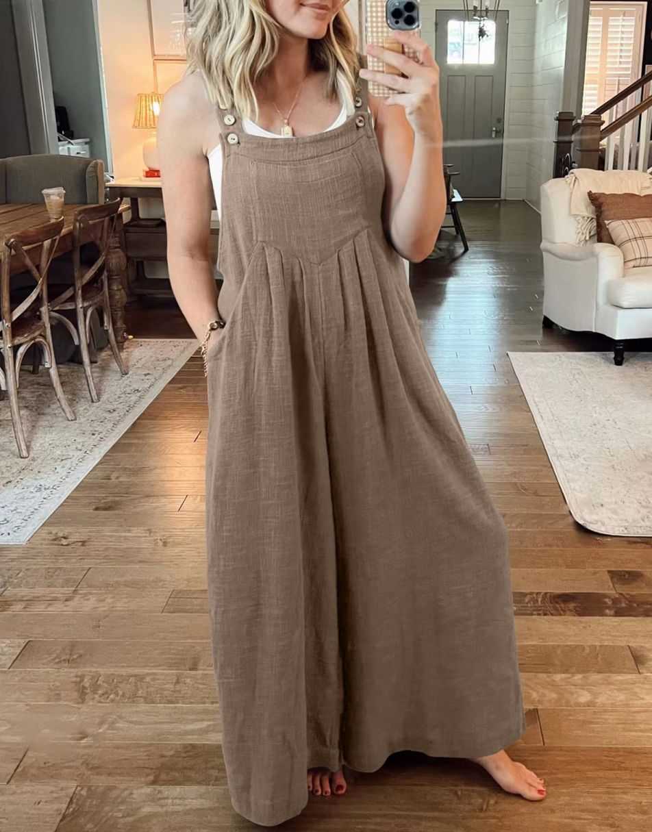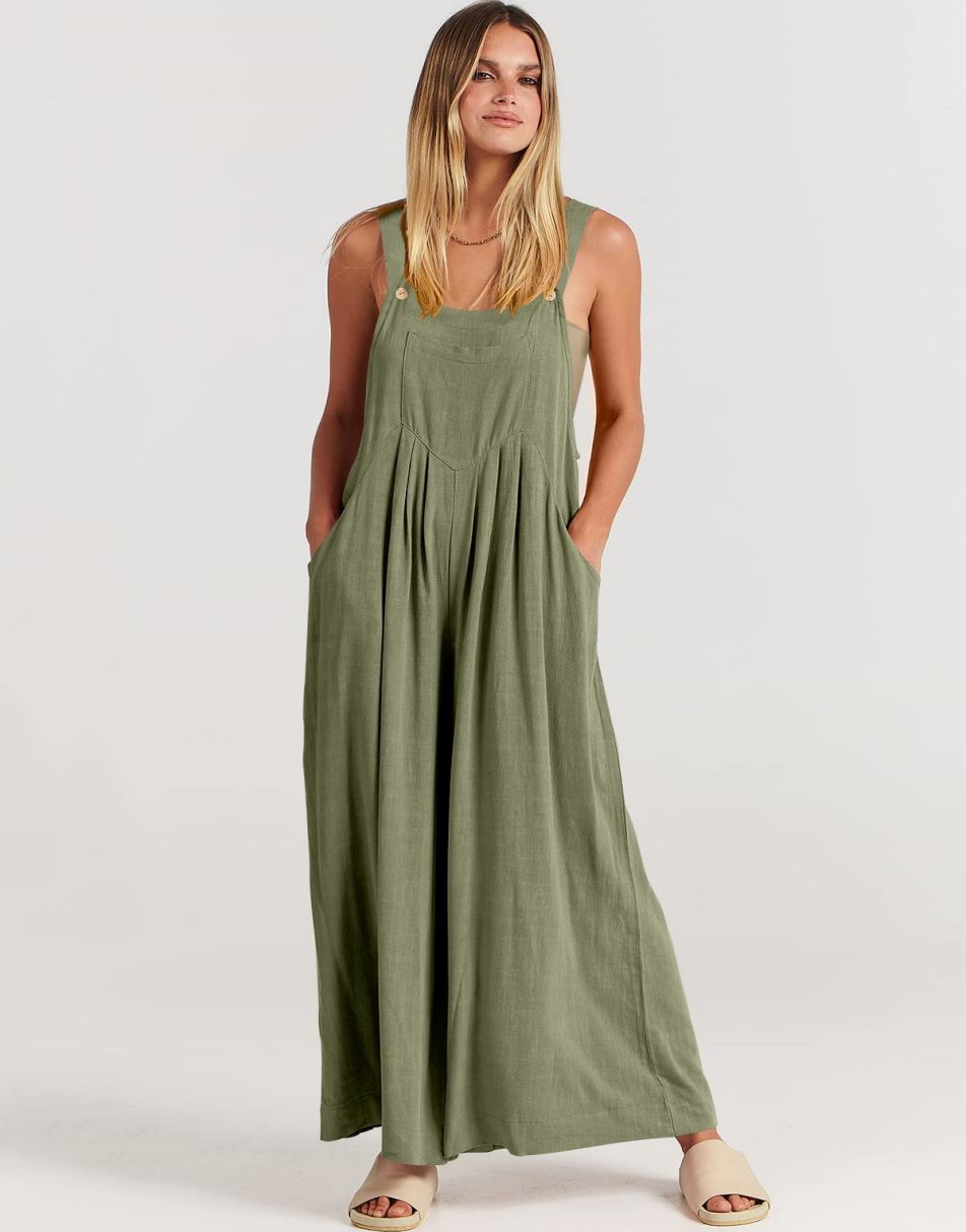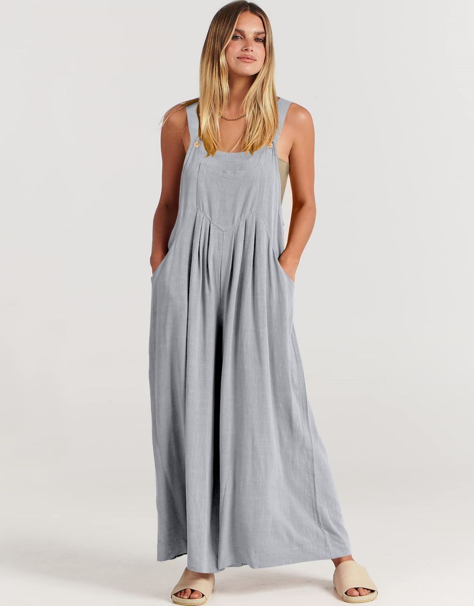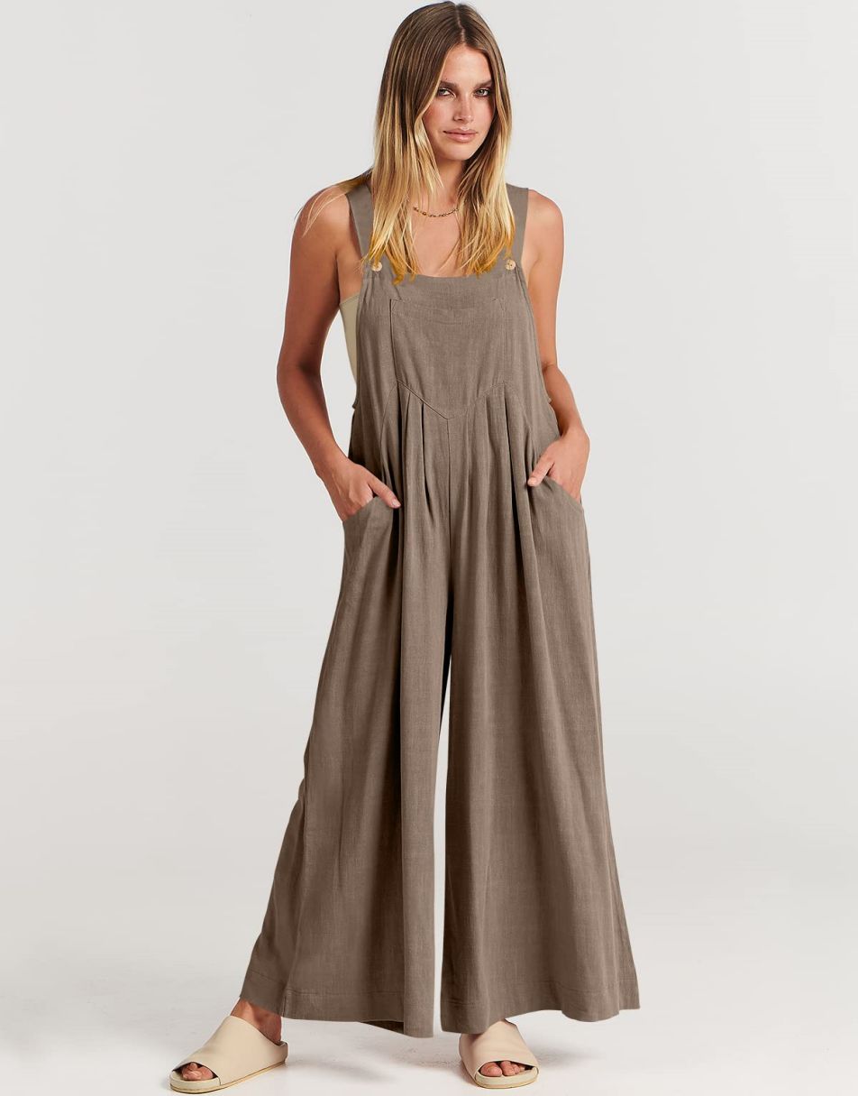 • ANRABESS Women's Overalls Jumpsuit Casual Loose Sleeveless Adjustable Straps Bib Wide Leg Outfits with Pockets