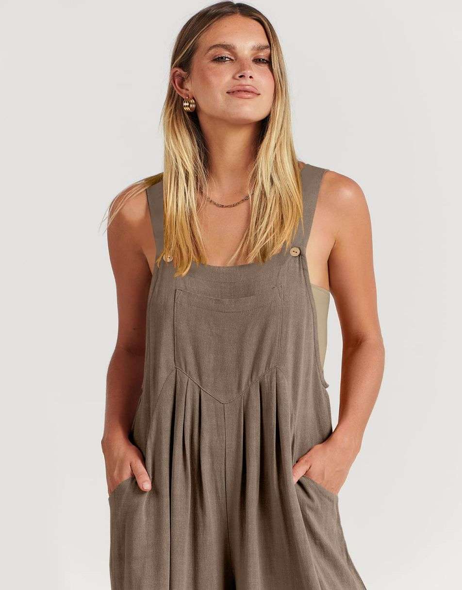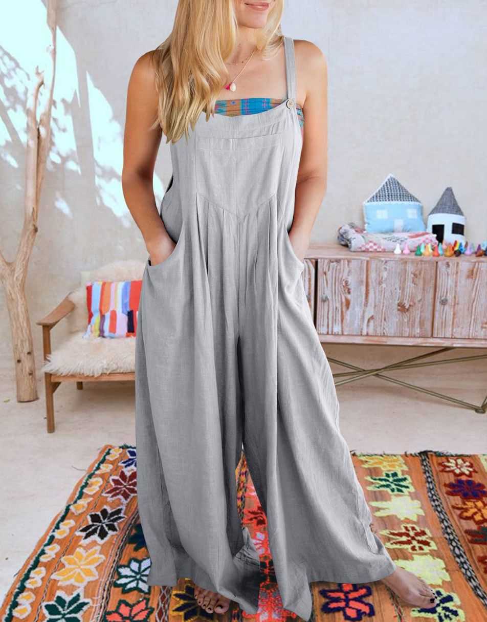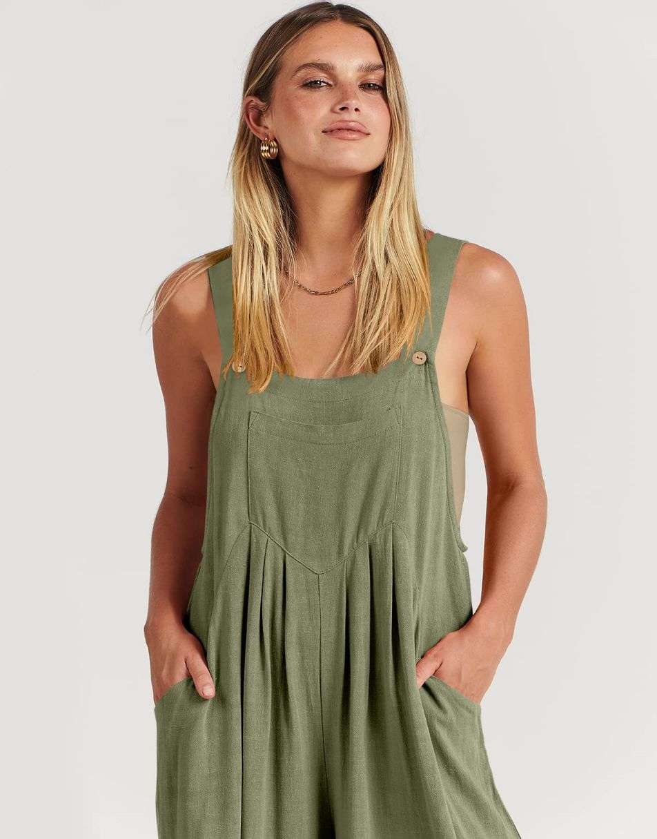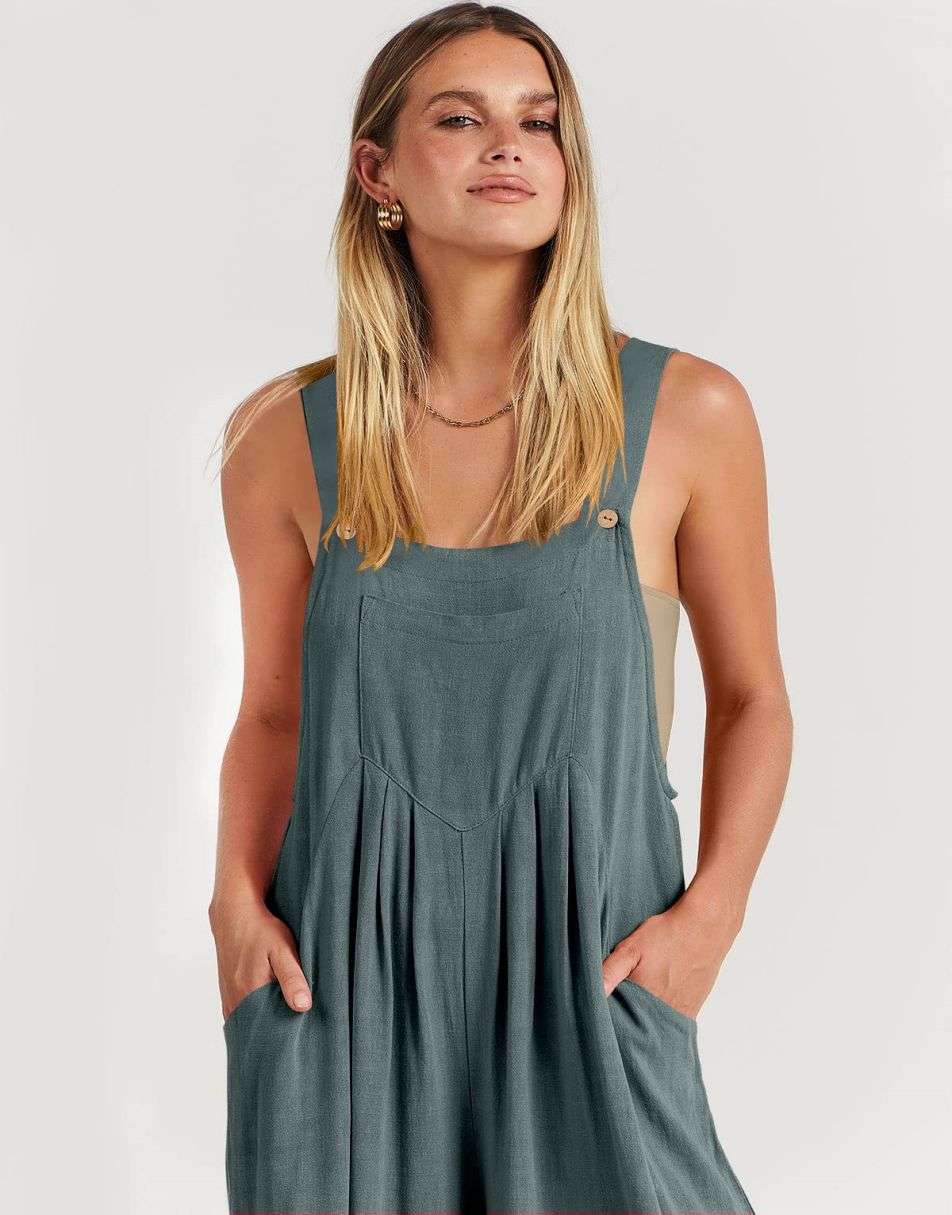 • Features - This overalls jumpsuit is designed with adjustable shoulder straps, button detailing, sleeveless style, square neckline, pockets, and a loose casual fit. Perfect for comfortable and stylish travel.