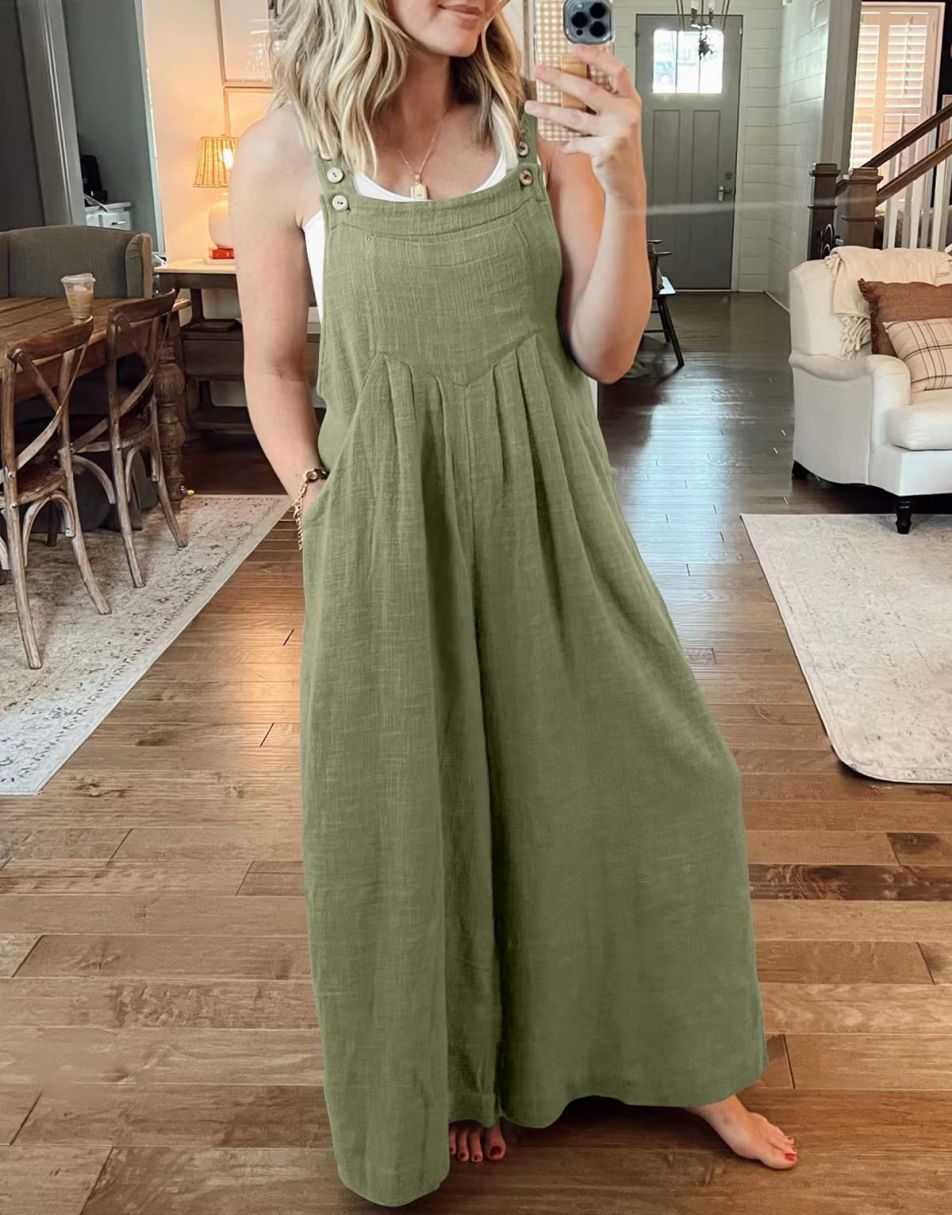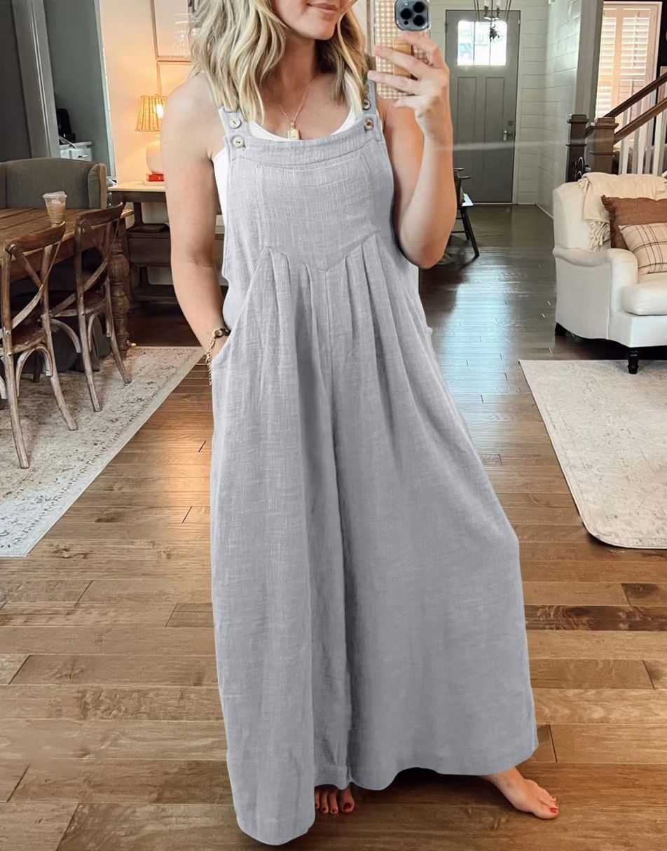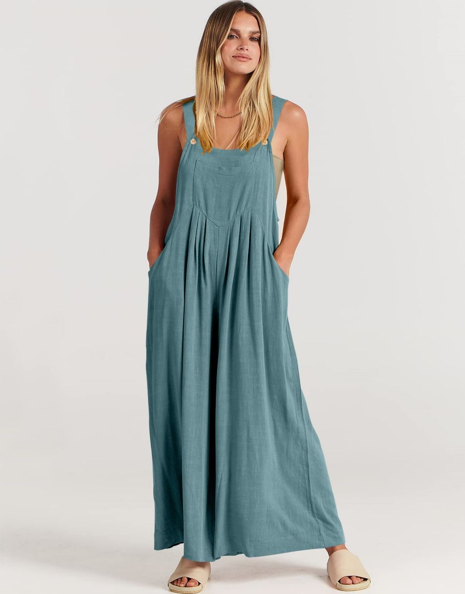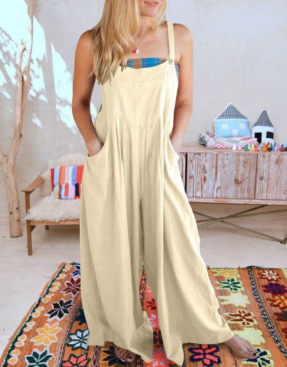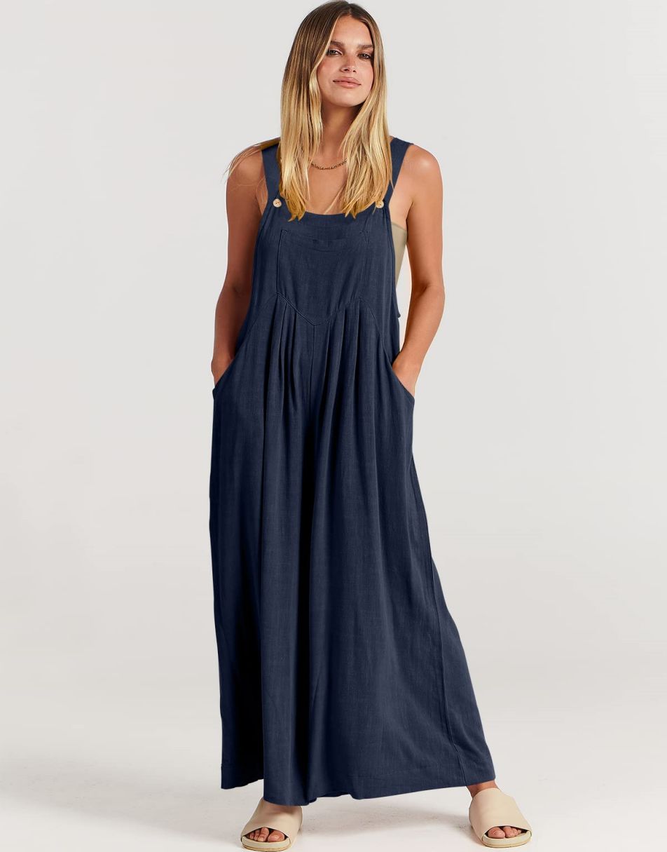 • Features - This overalls jumpsuit is designed with adjustable shoulder straps, button detailing, sleeveless style, square neckline, pockets, and a loose casual fit. Perfect for comfortable and stylish travel.