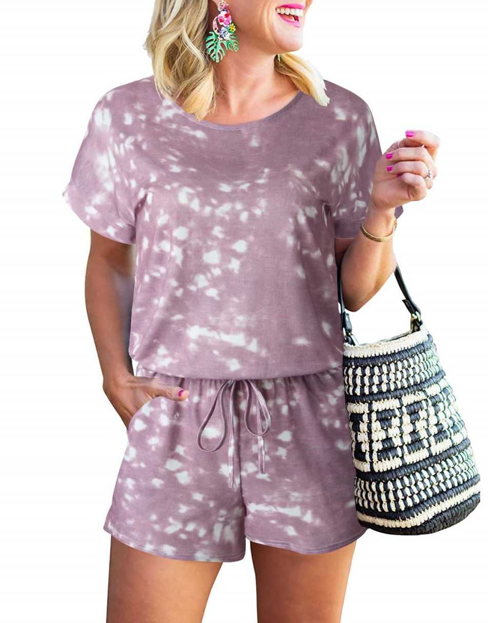 • Type锛�ladies jumpsuits and rompers for summer casual. 1.crewneck short sleeve solid/stripeds/tie dye rompers for women. 2.summer casual off shoulder jumpsuits for ladies. 3.women sexy deep v neck wrap front short rompers for beach.