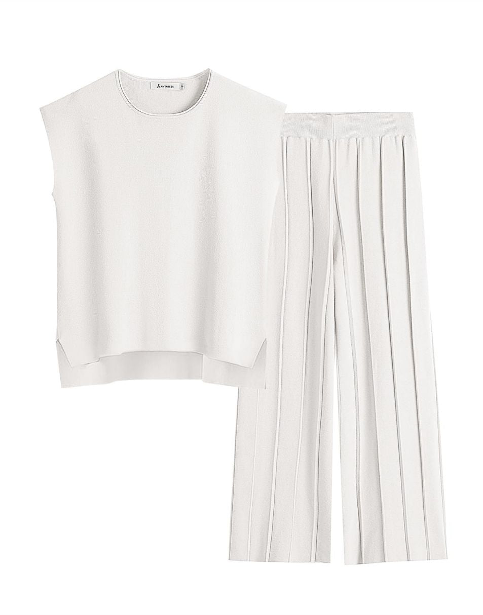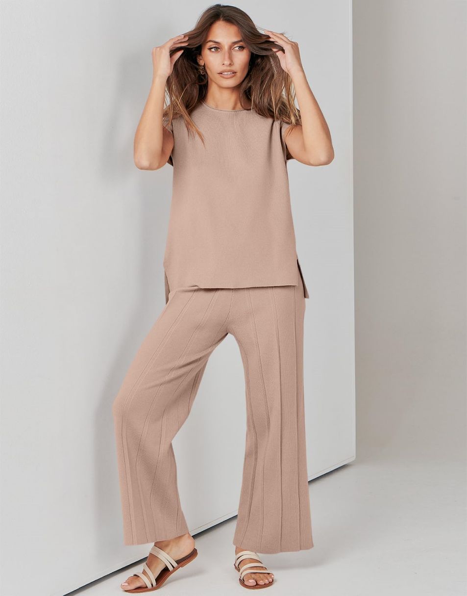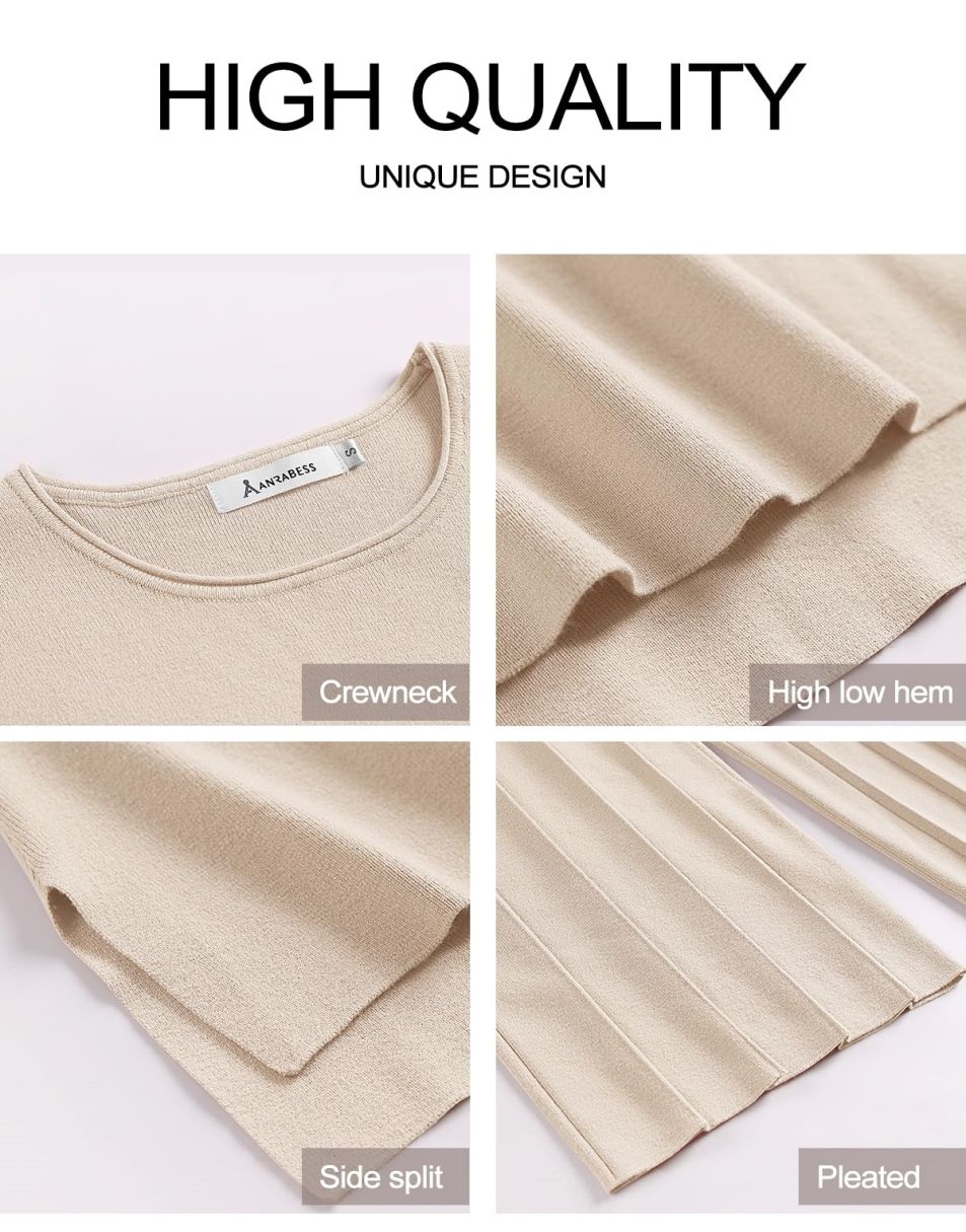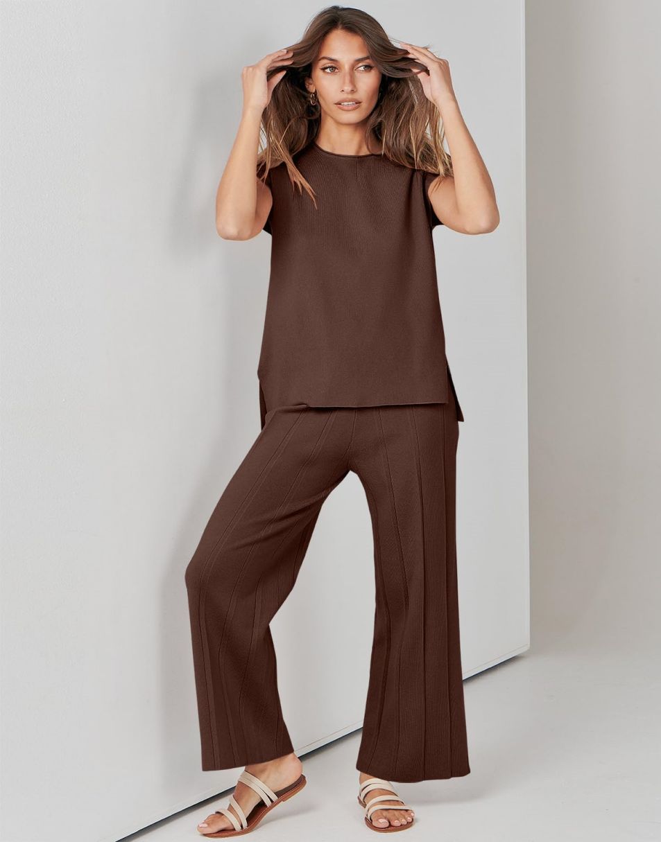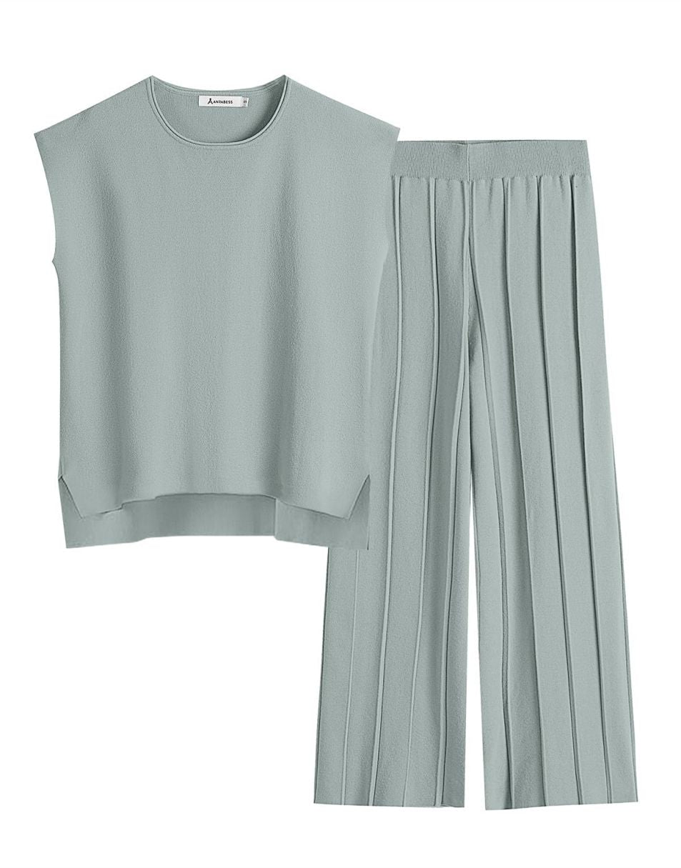 • ANRABESS Two Piece Outfits for Women Summer Sweater Sets Knit Pullover Tops Elastic Waisted Pants Lounge Sets Tracksuit