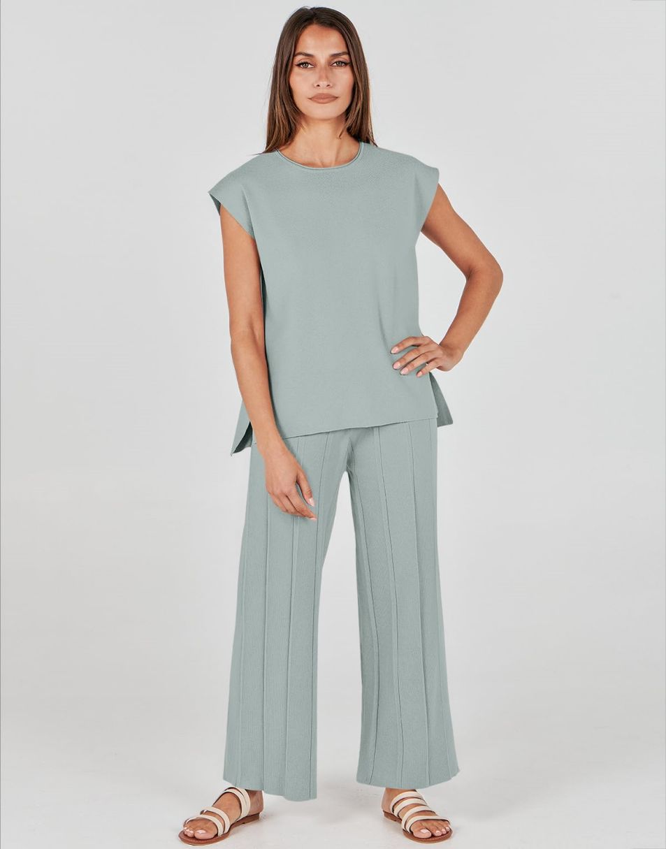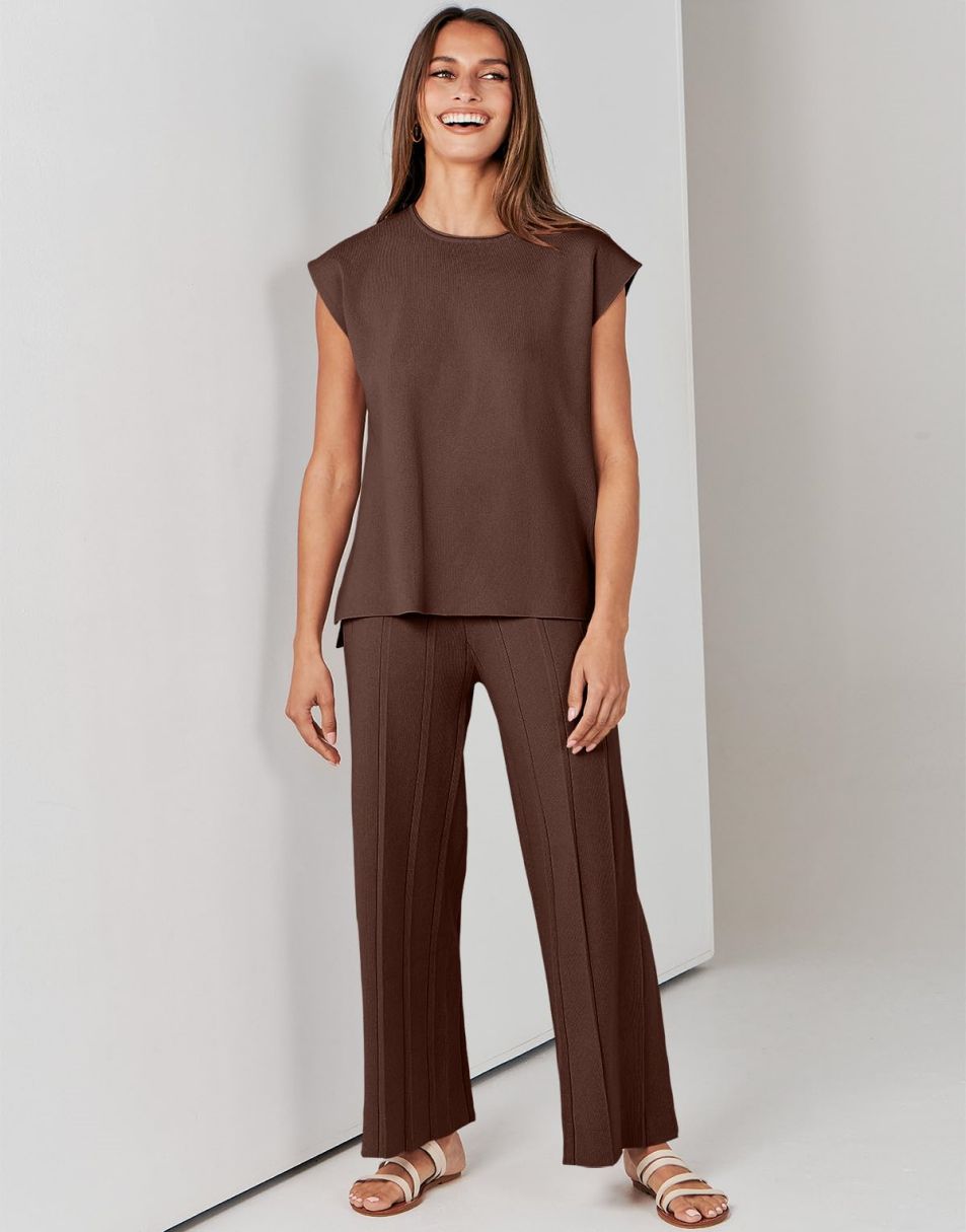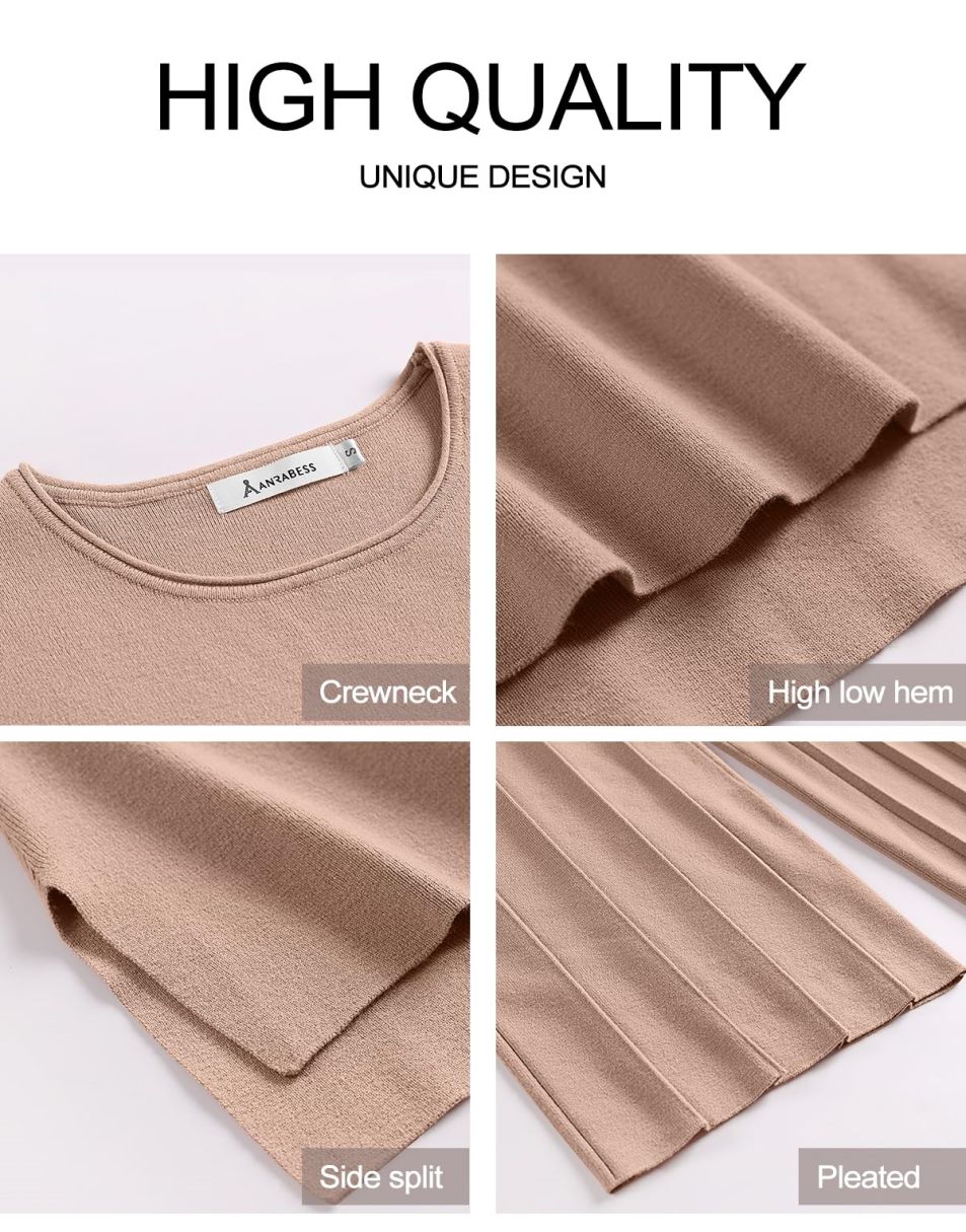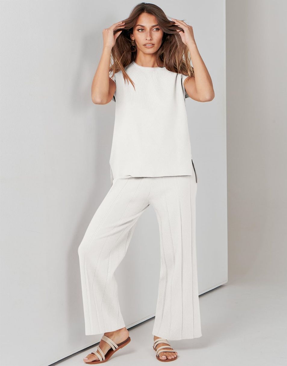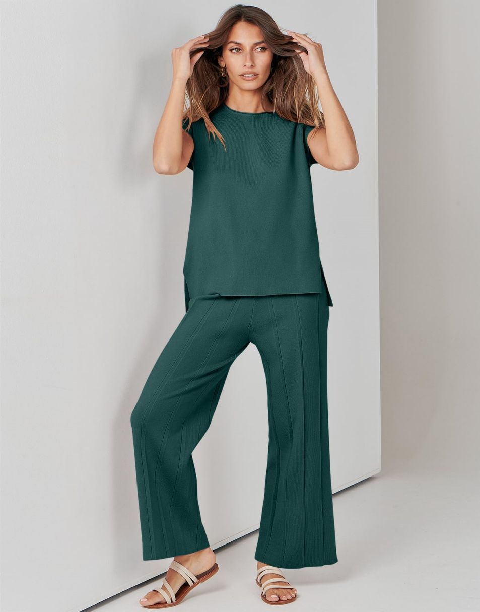 • ANRABESS Two Piece Outfits for Women Summer Sweater Sets Knit Pullover Tops Elastic Waisted Pants Lounge Sets Tracksuit