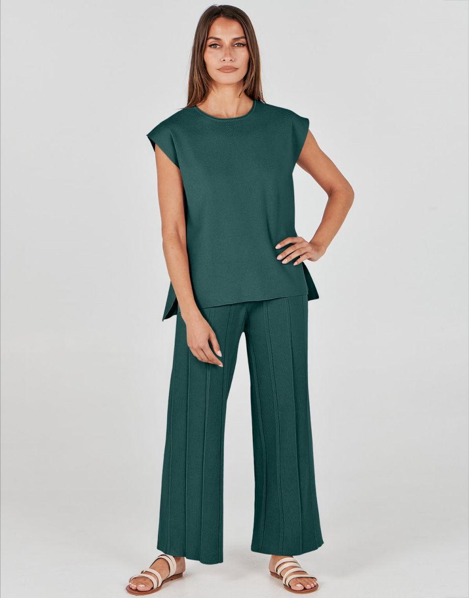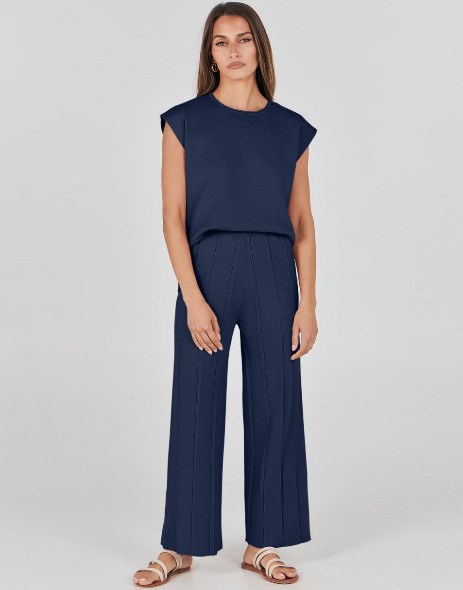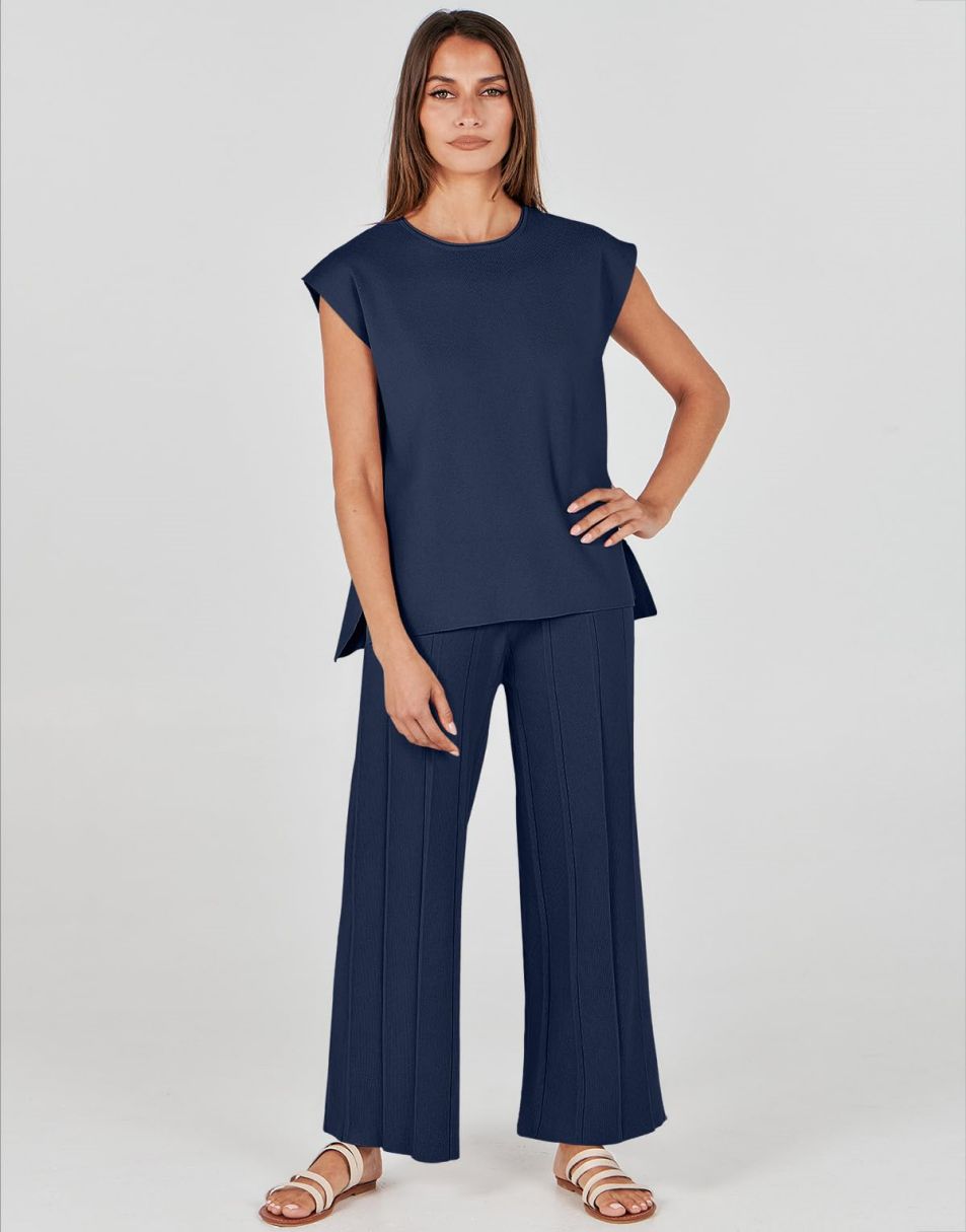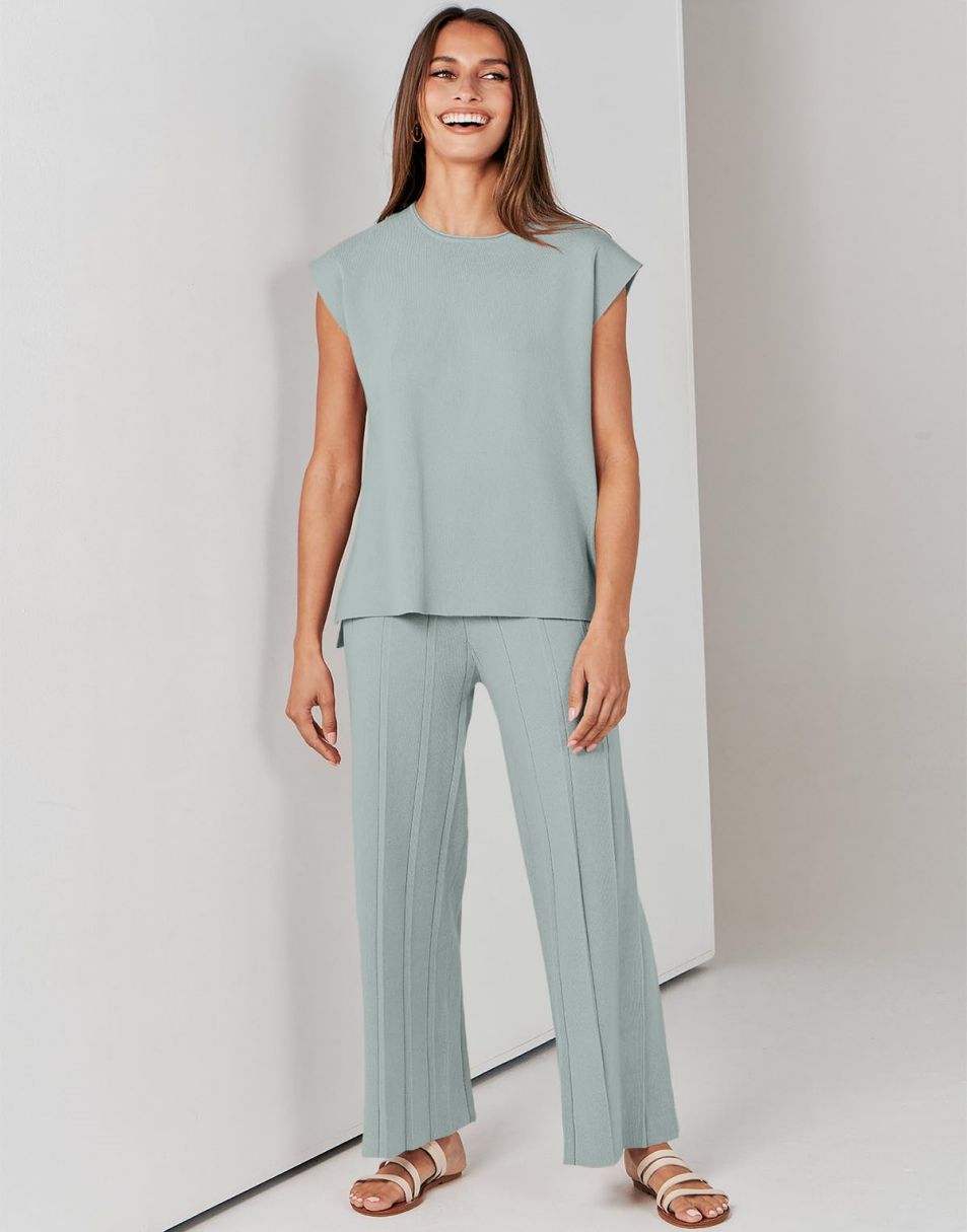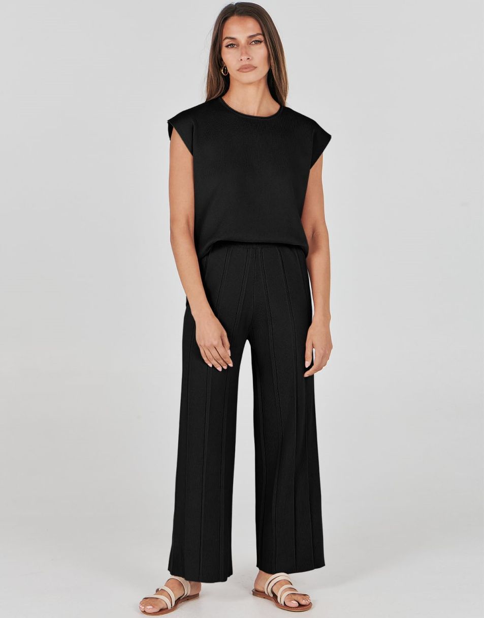 • ANRABESS Two Piece Outfits for Women Summer Sweater Sets Knit Pullover Tops Elastic Waisted Pants Lounge Sets Tracksuit
