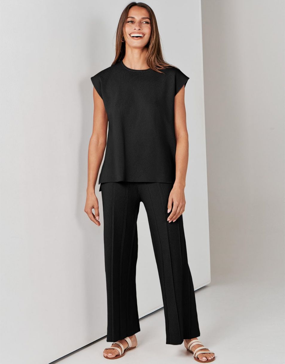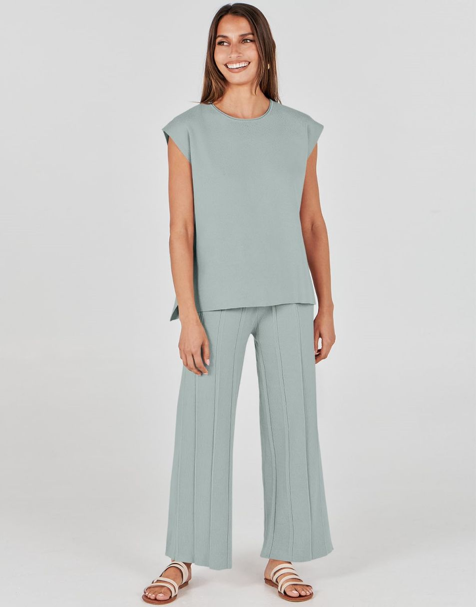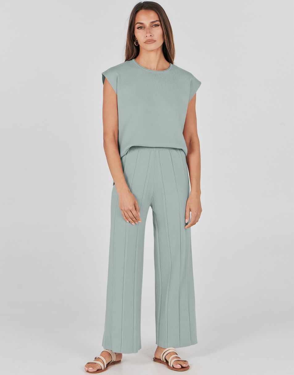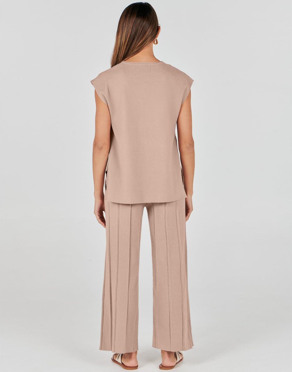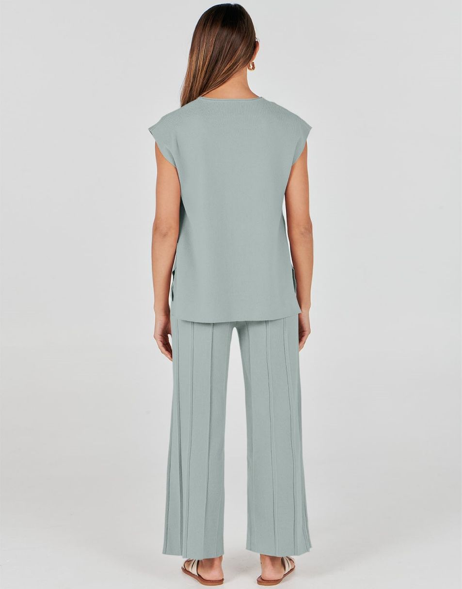 • ANRABESS Two Piece Outfits for Women Summer Sweater Sets Knit Pullover Tops Elastic Waisted Pants Lounge Sets Tracksuit