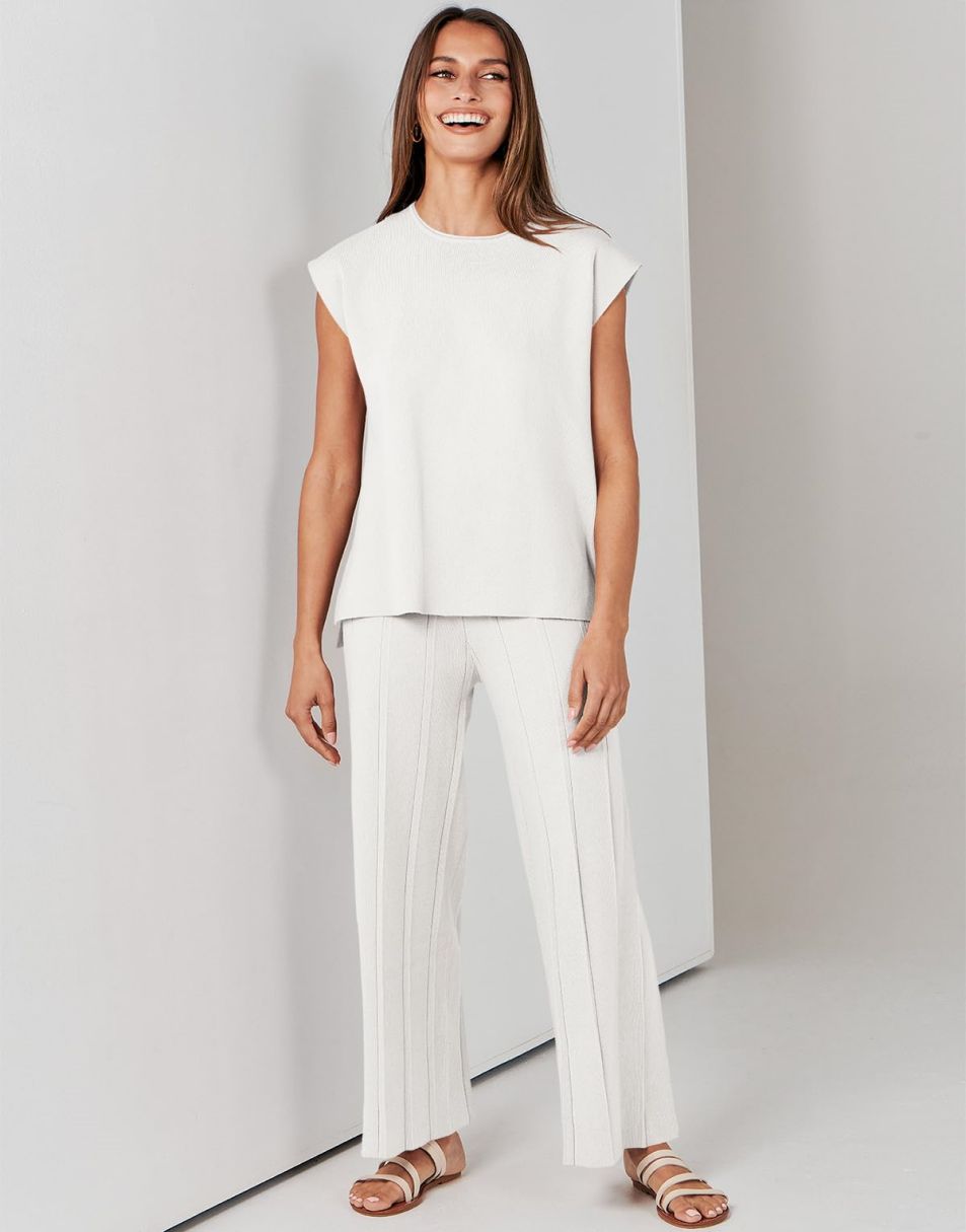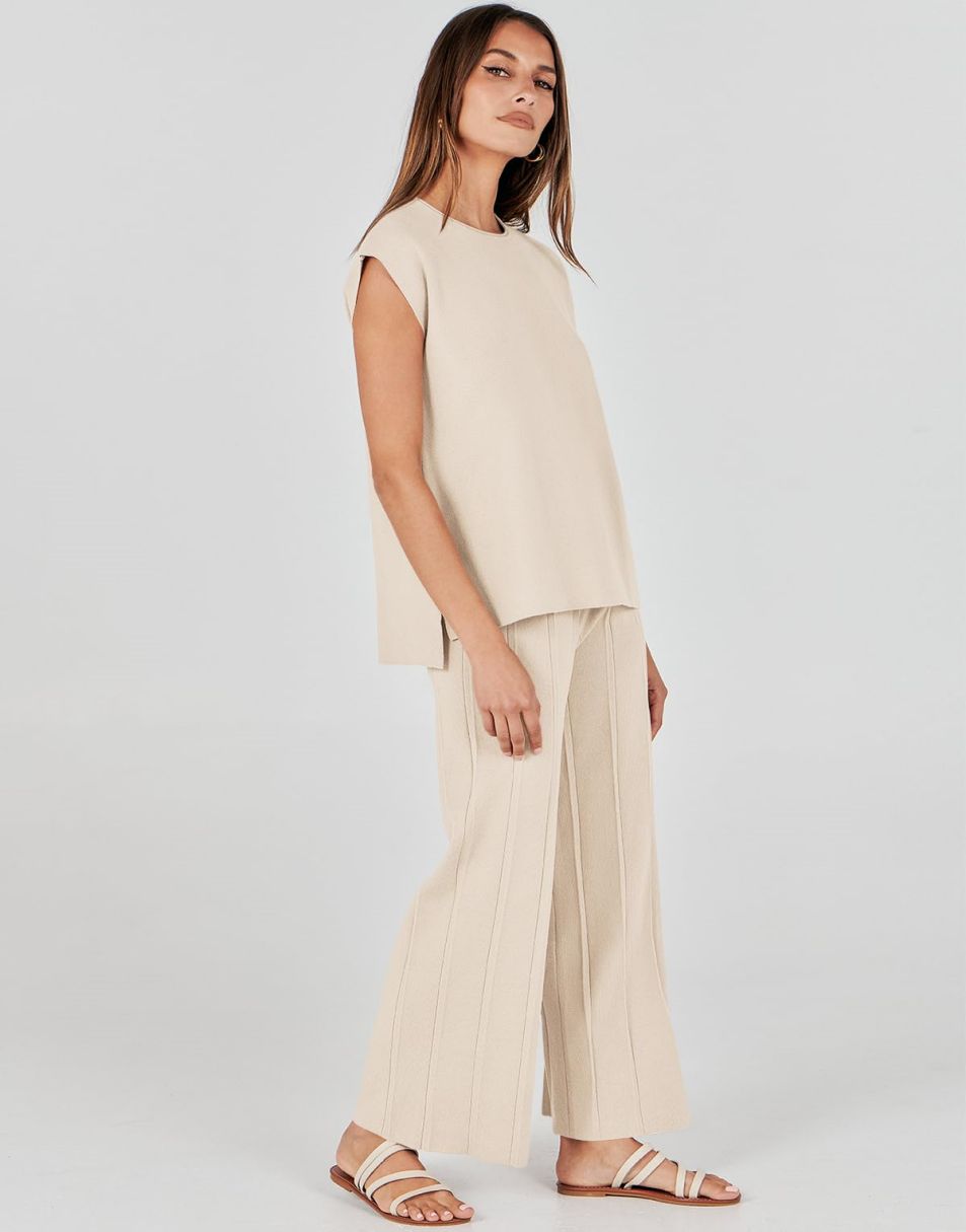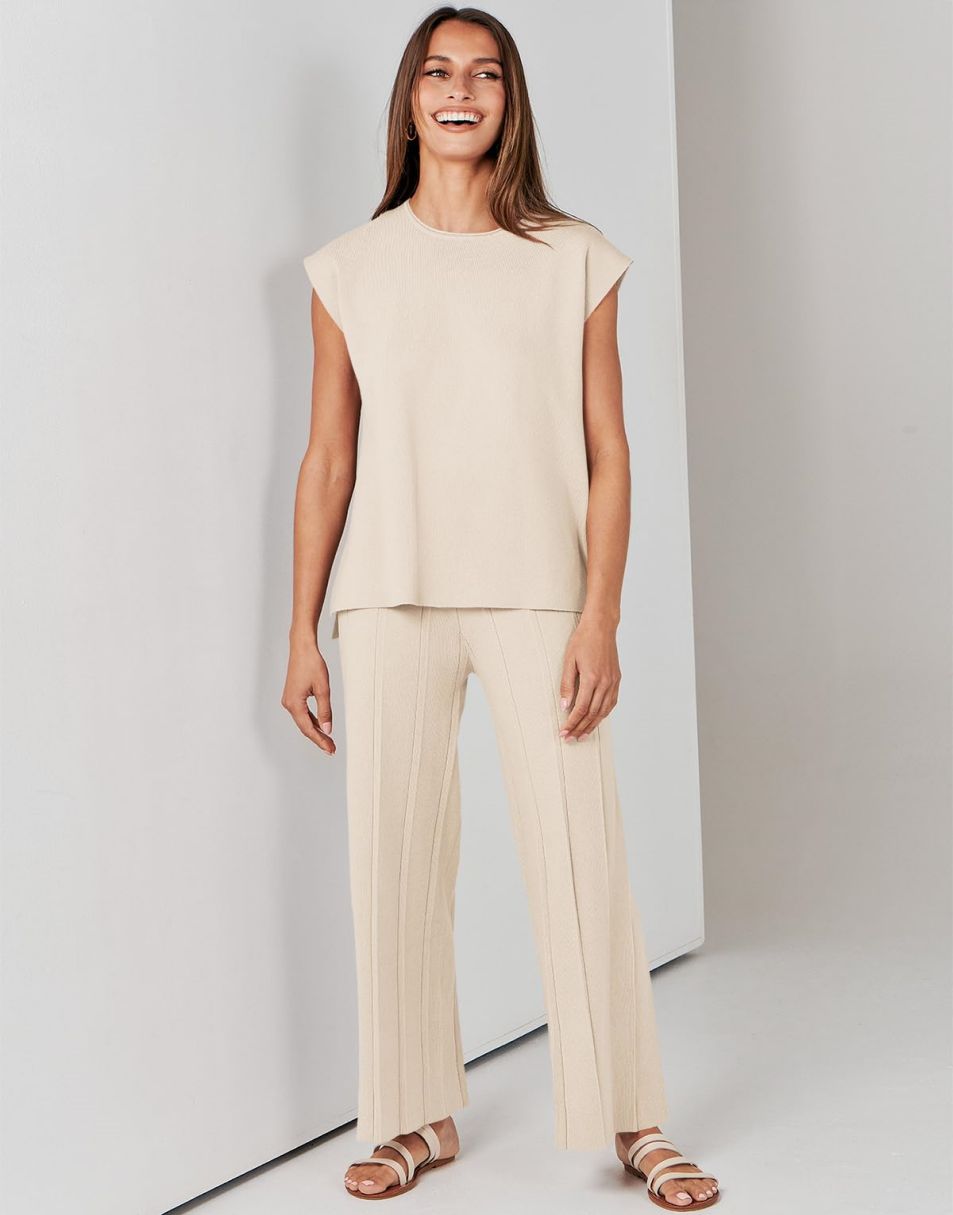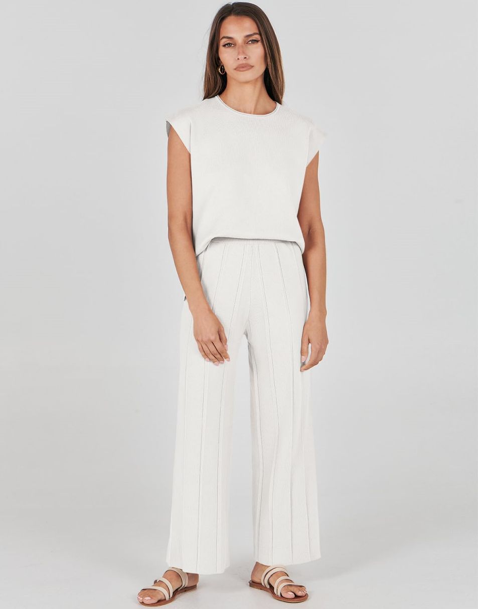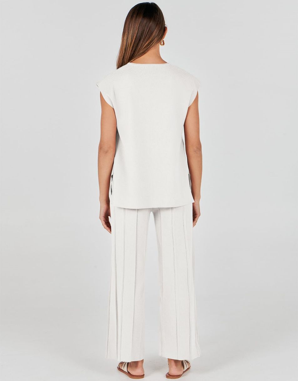 • ANRABESS Two Piece Outfits for Women Summer Sweater Sets Knit Pullover Tops Elastic Waisted Pants Lounge Sets Tracksuit