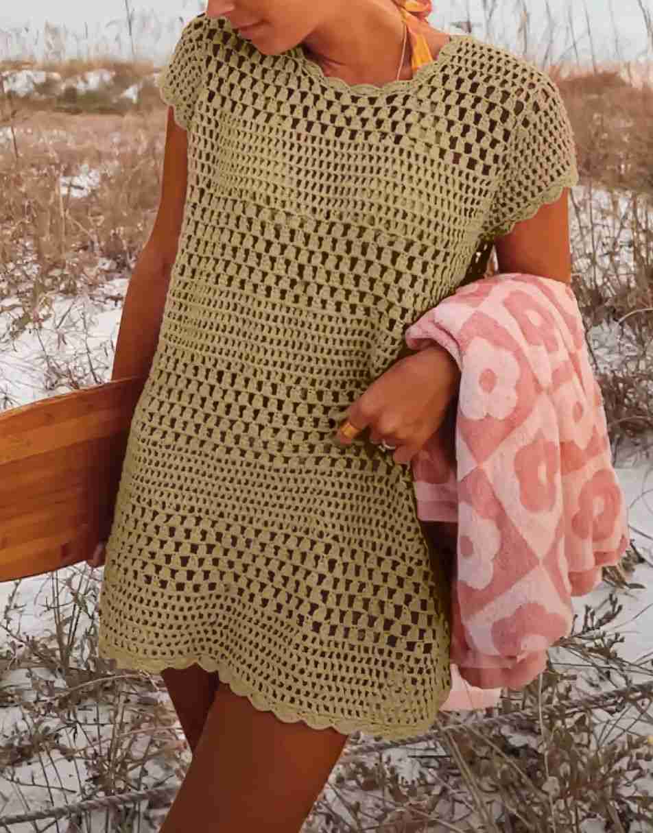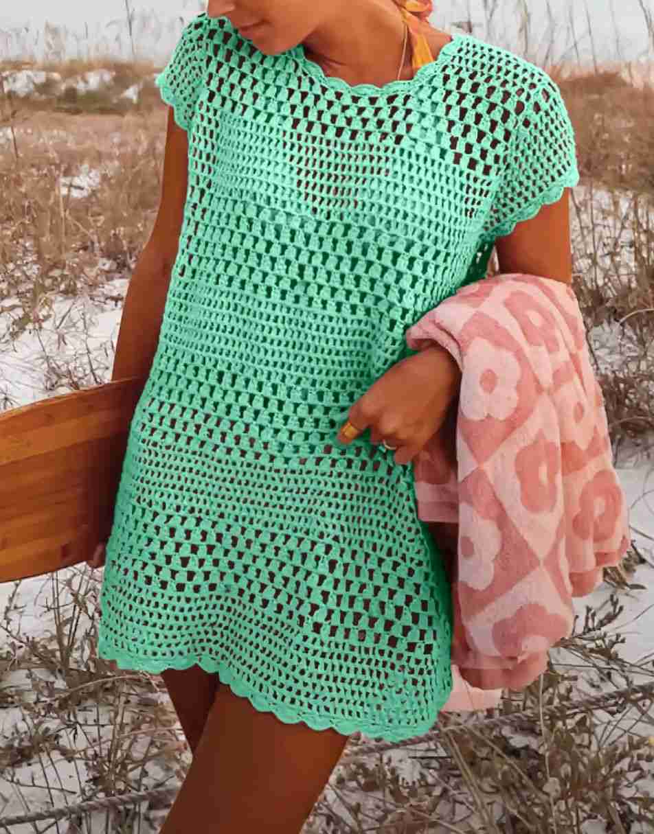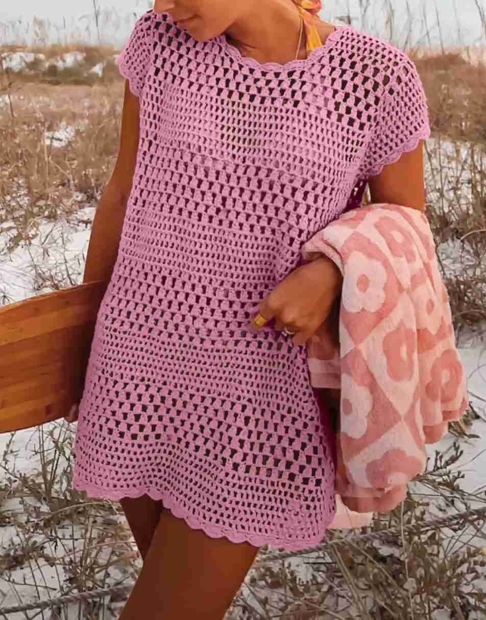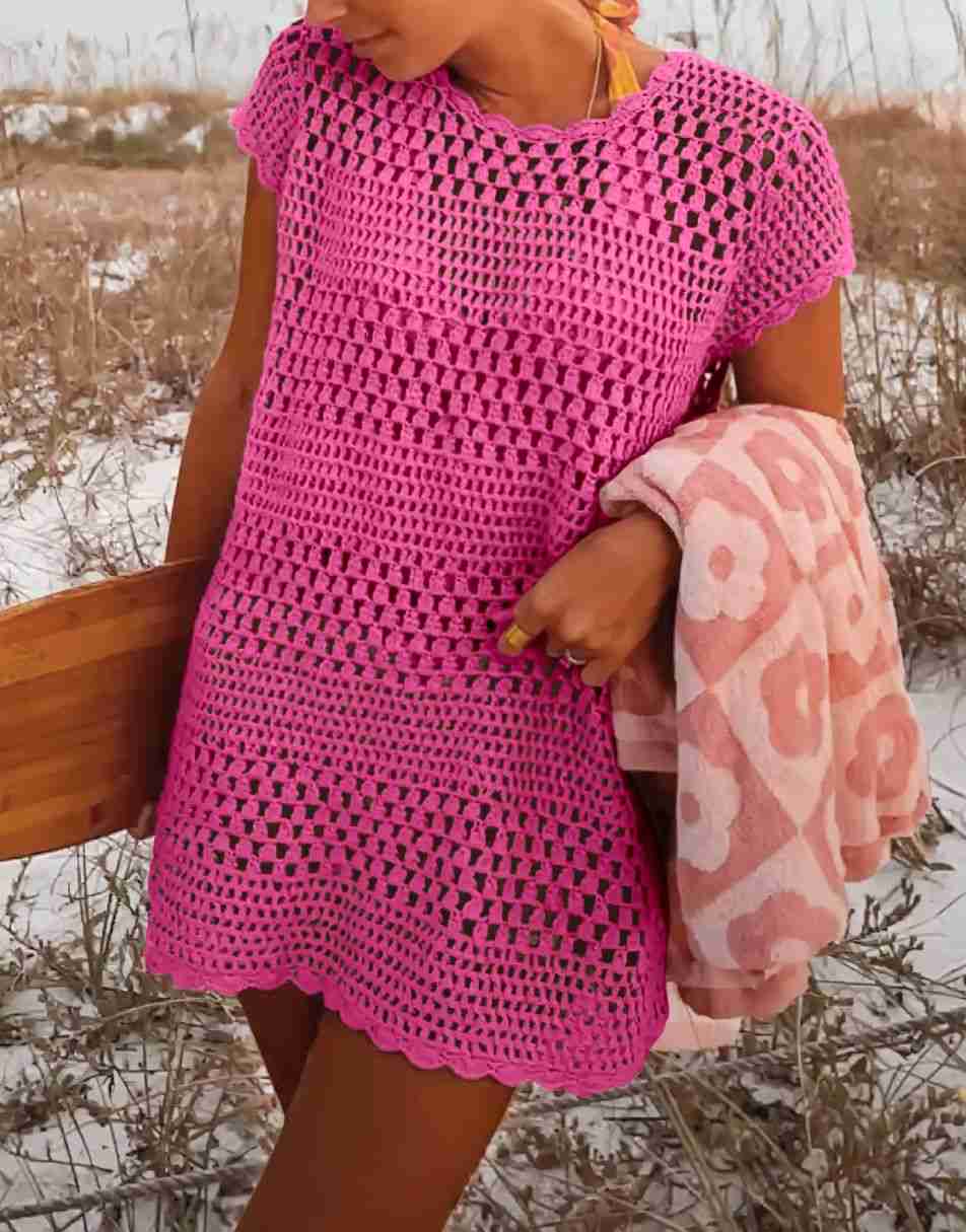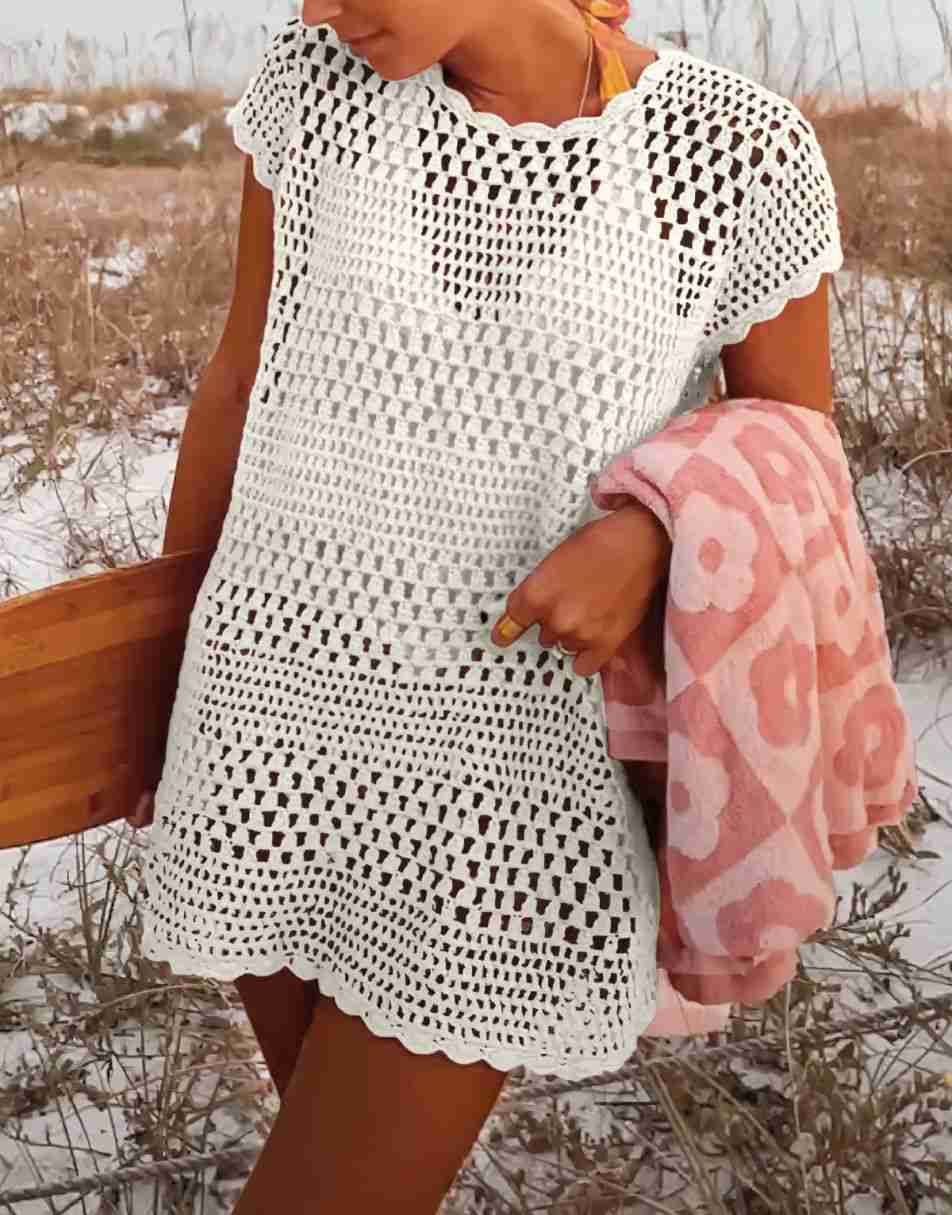 - Chic Design - Our hollow out mini dress features a round neck, short sleeves, and a knit crochet swimsuit that is both elegant and classy. It adds the perfect touch of sophistication to your beachwear.