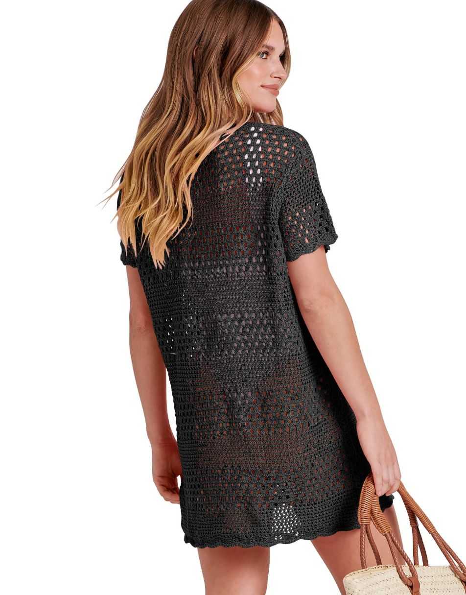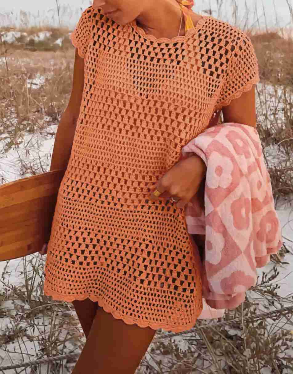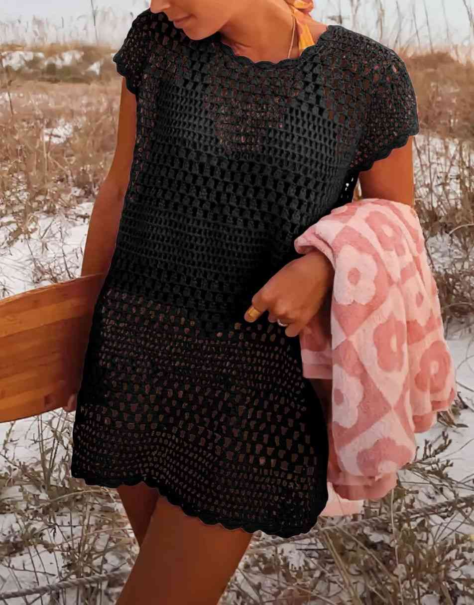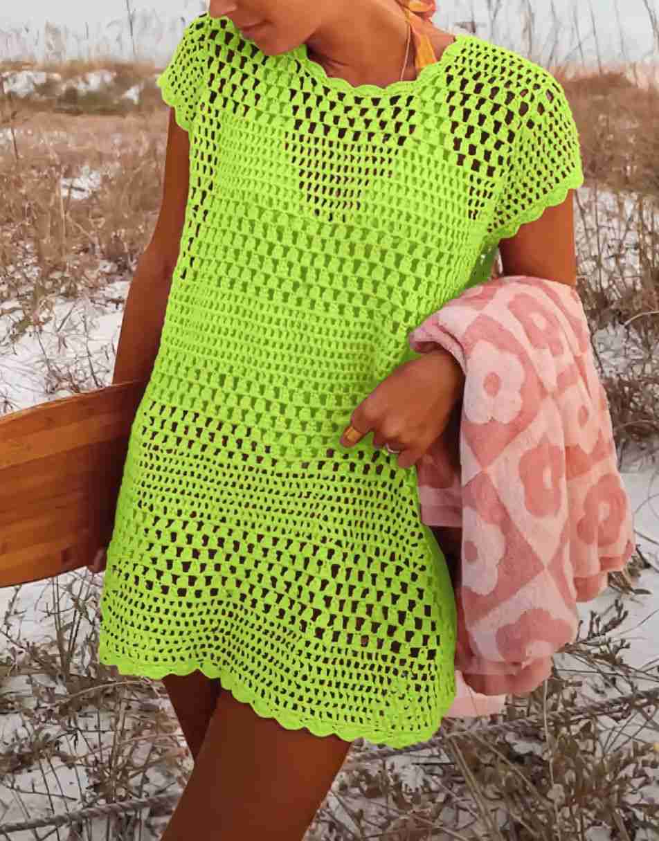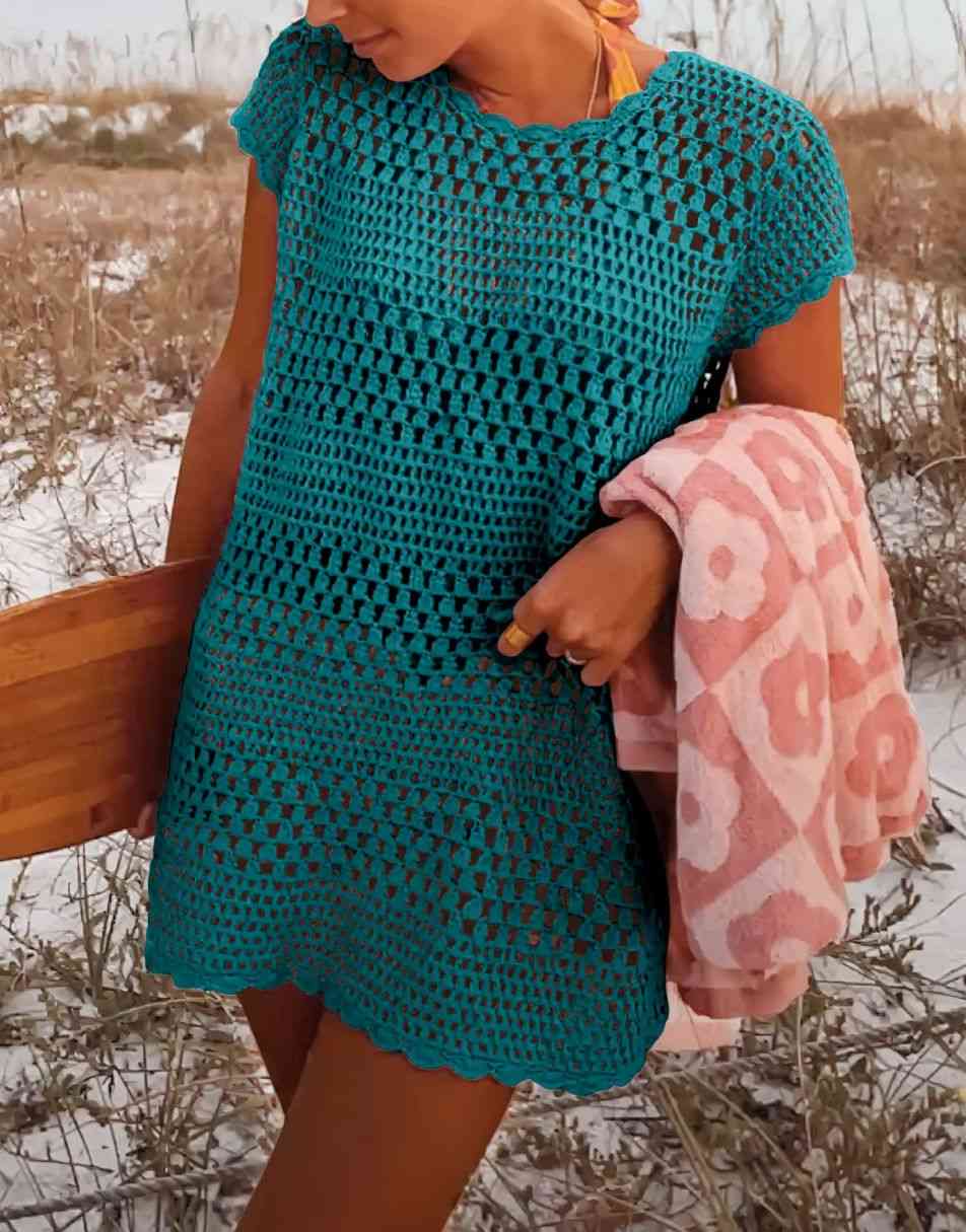 - Chic Design - Our hollow out mini dress features a round neck, short sleeves, and a knit crochet swimsuit that is both elegant and classy. It adds the perfect touch of sophistication to your beachwear.