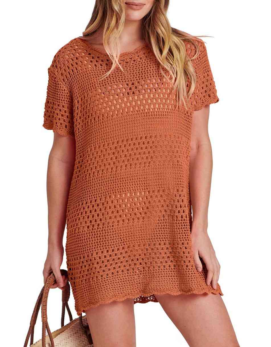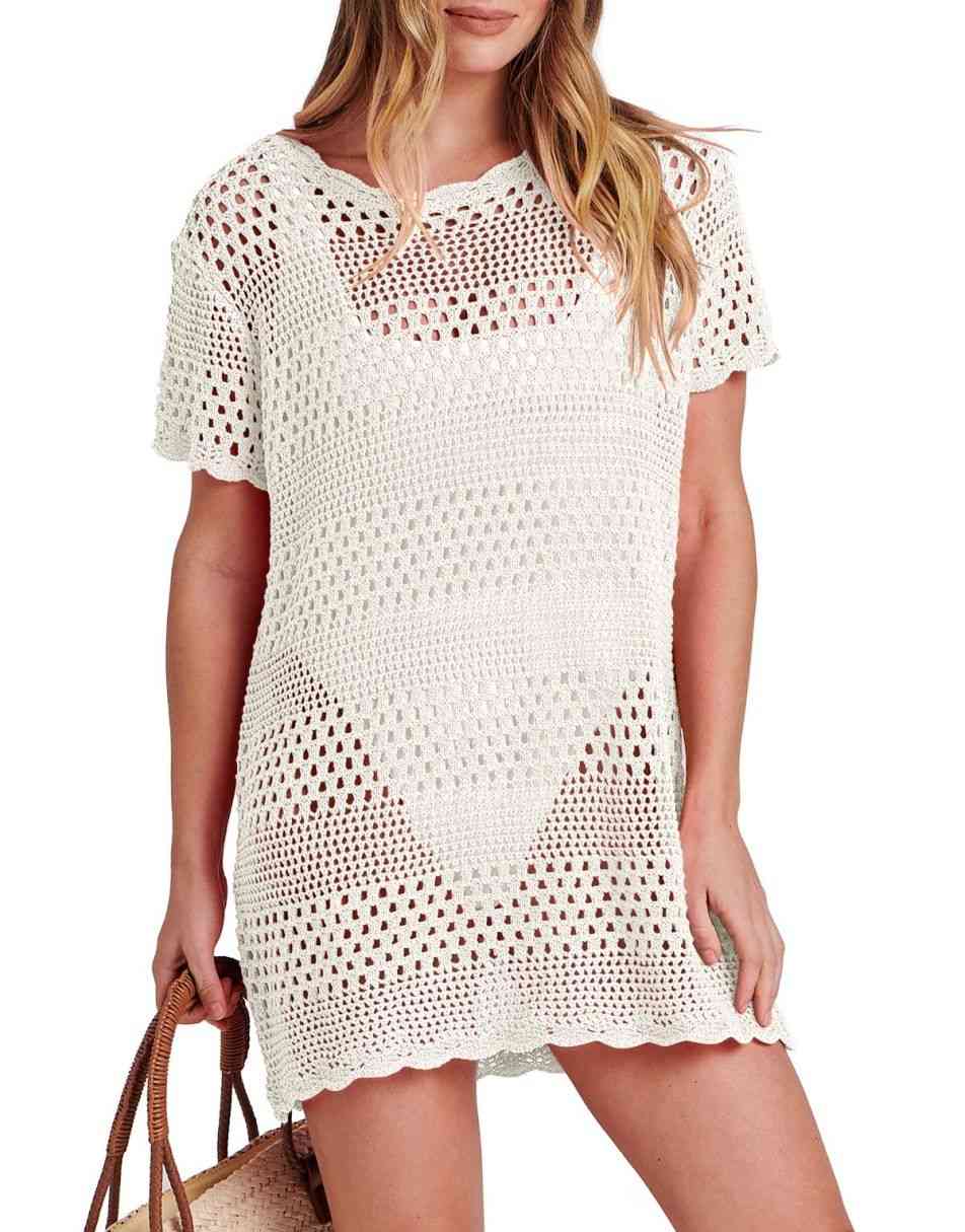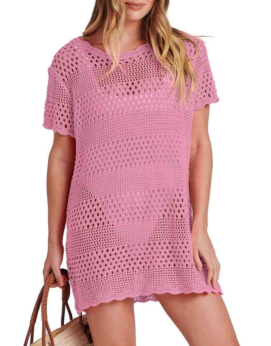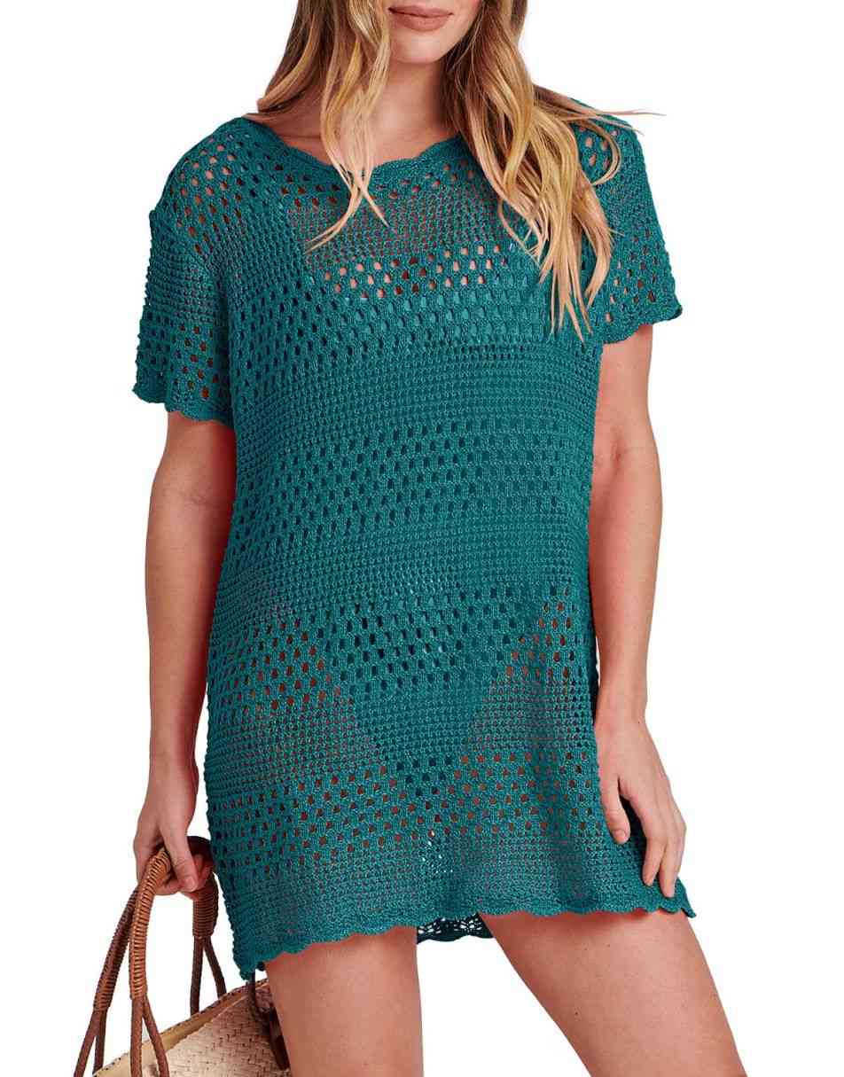 - Chic Design - Our hollow out mini dress features a round neck, short sleeves, and a knit crochet swimsuit that is both elegant and classy. It adds the perfect touch of sophistication to your beachwear.