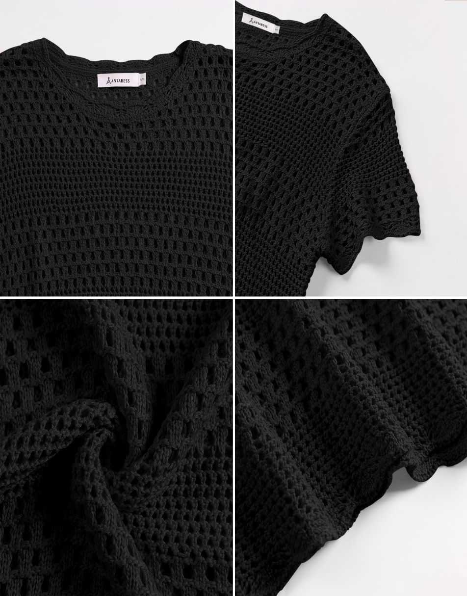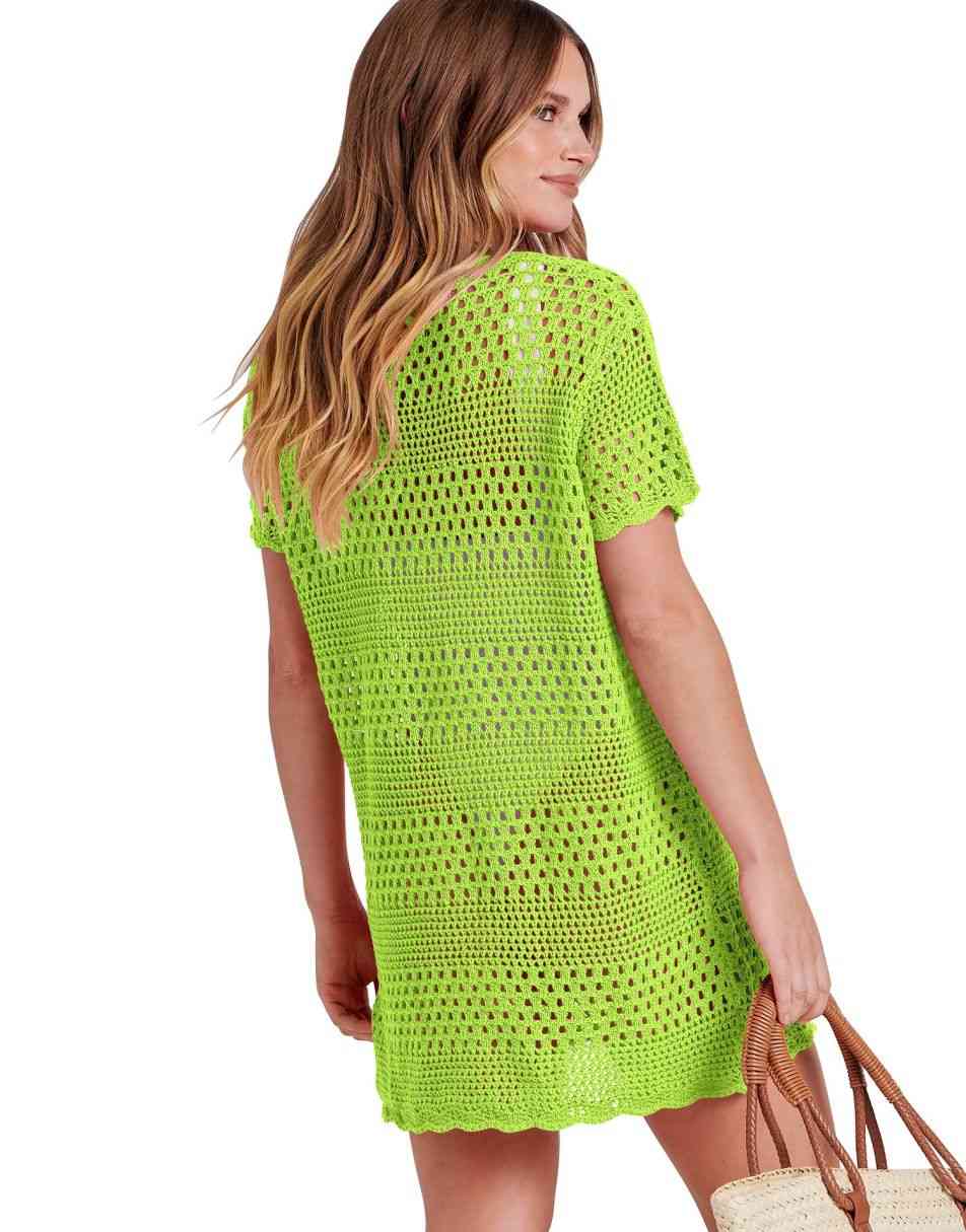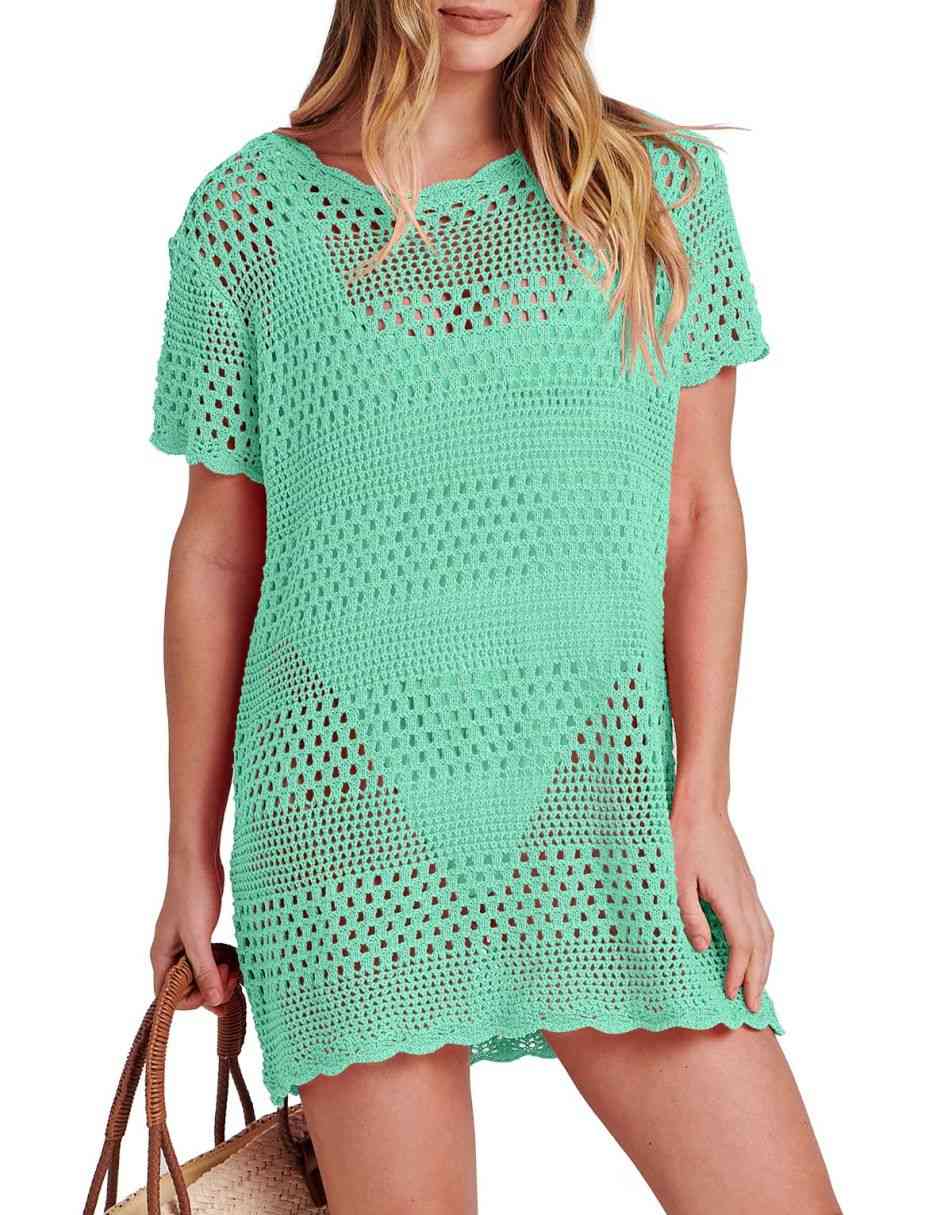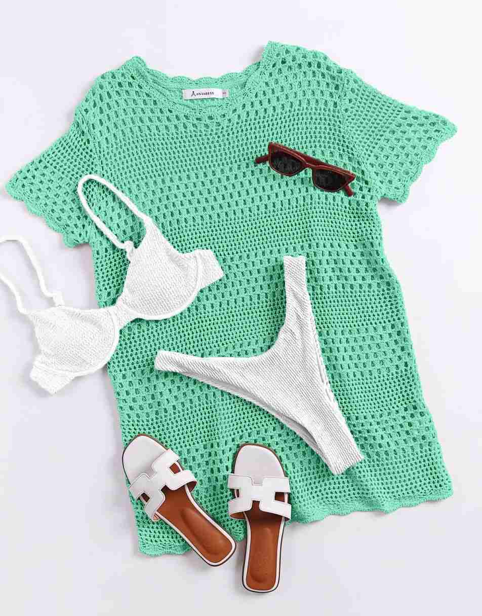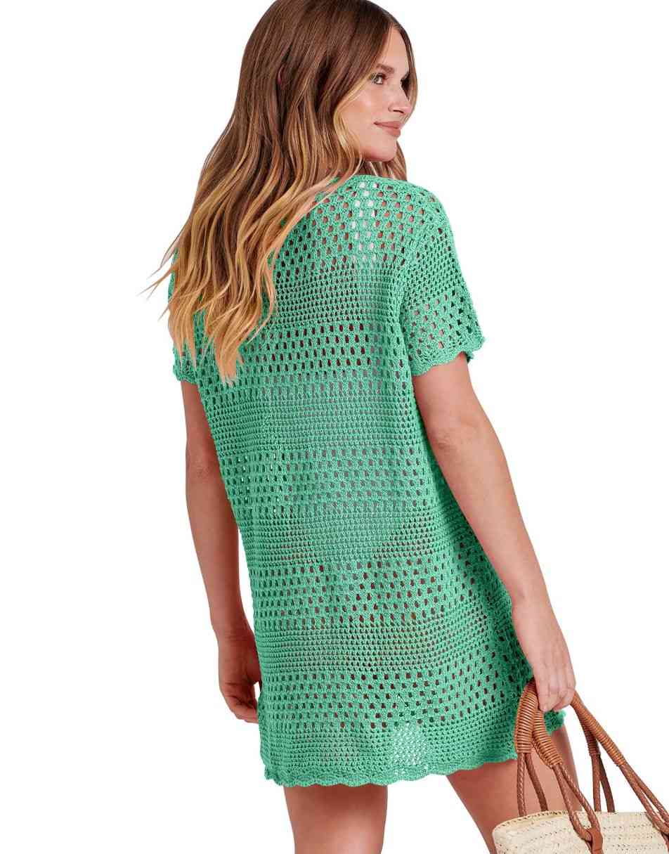 - Chic Design - Our hollow out mini dress features a round neck, short sleeves, and a knit crochet swimsuit that is both elegant and classy. It adds the perfect touch of sophistication to your beachwear.