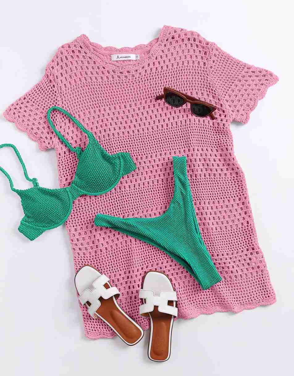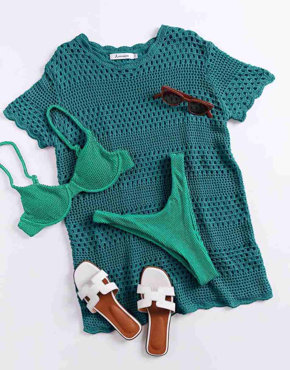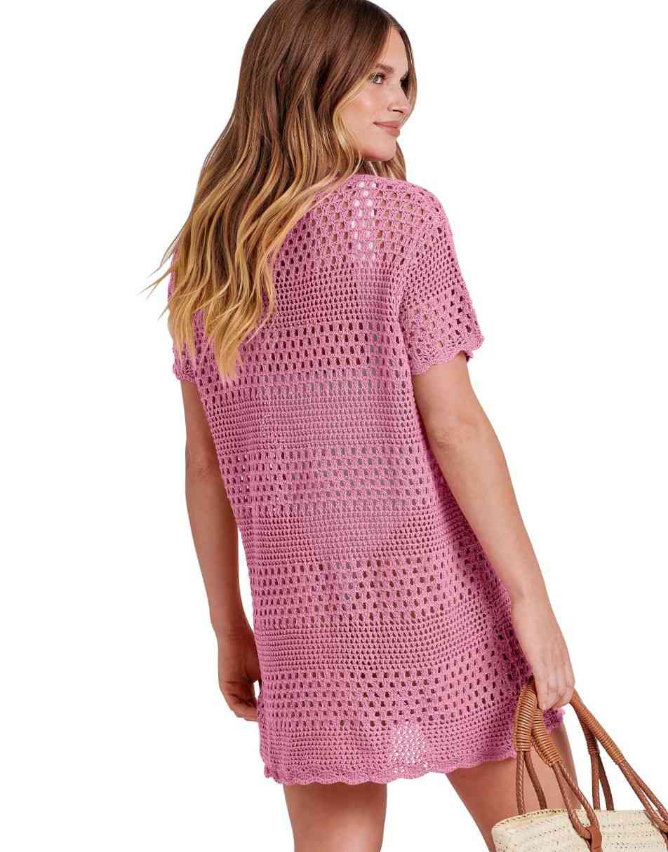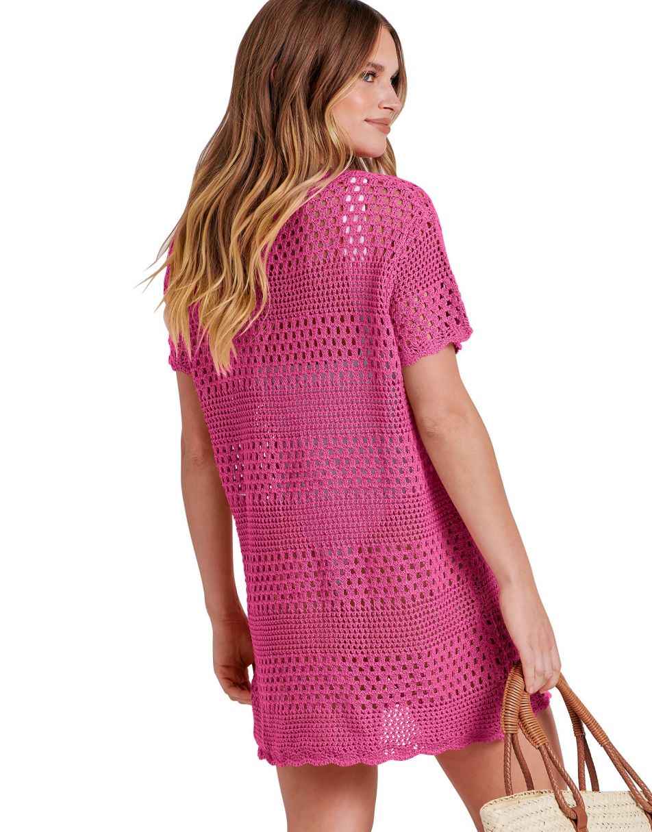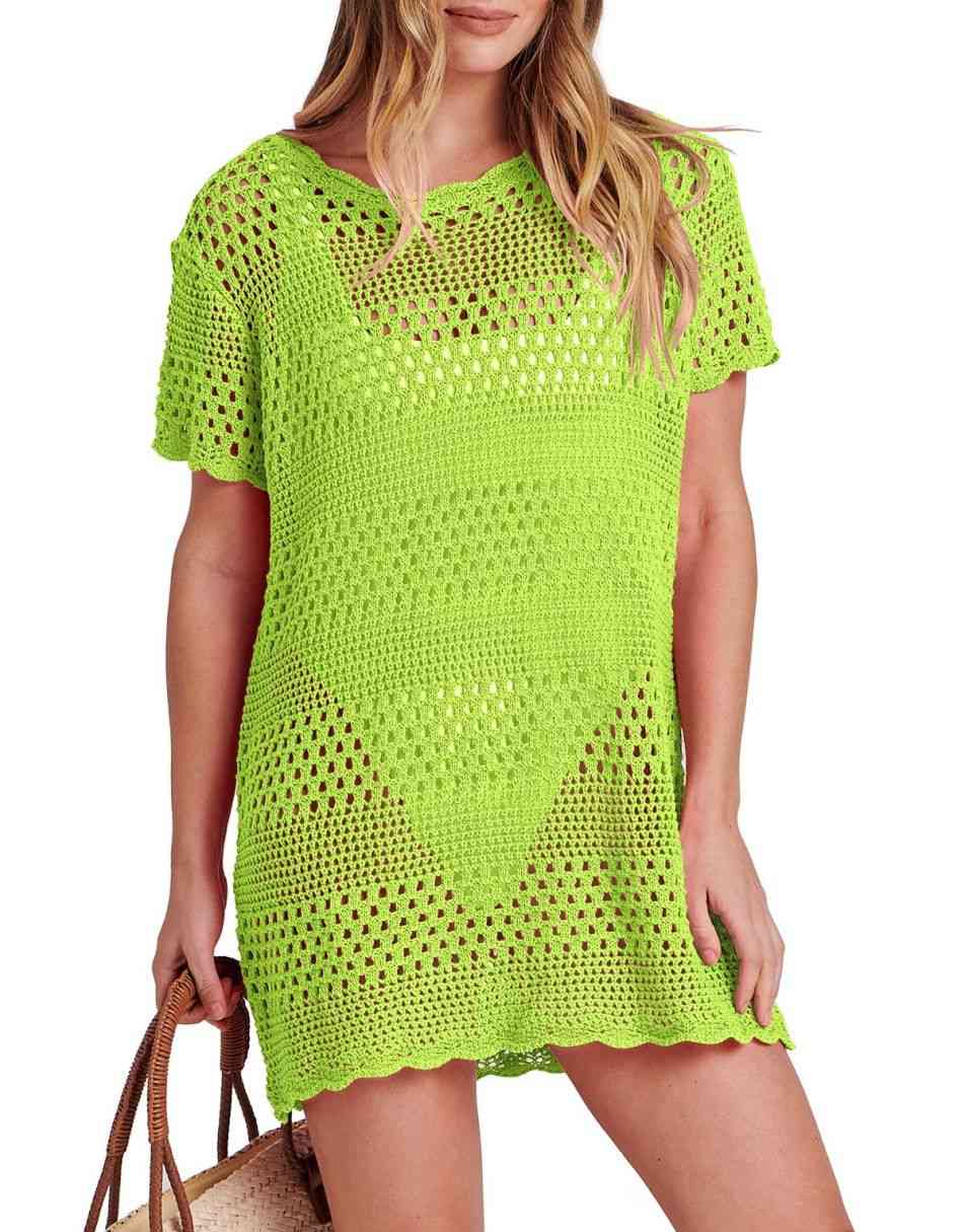 - Chic Design - Our hollow out mini dress features a round neck, short sleeves, and a knit crochet swimsuit that is both elegant and classy. It adds the perfect touch of sophistication to your beachwear.