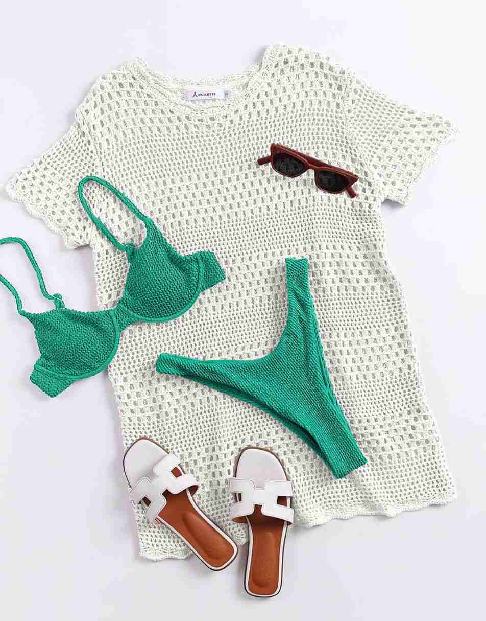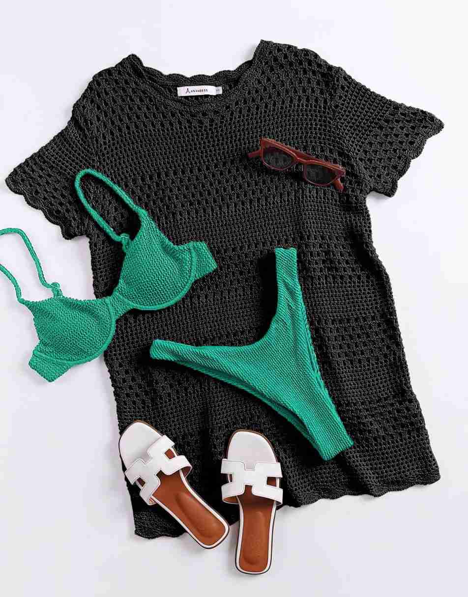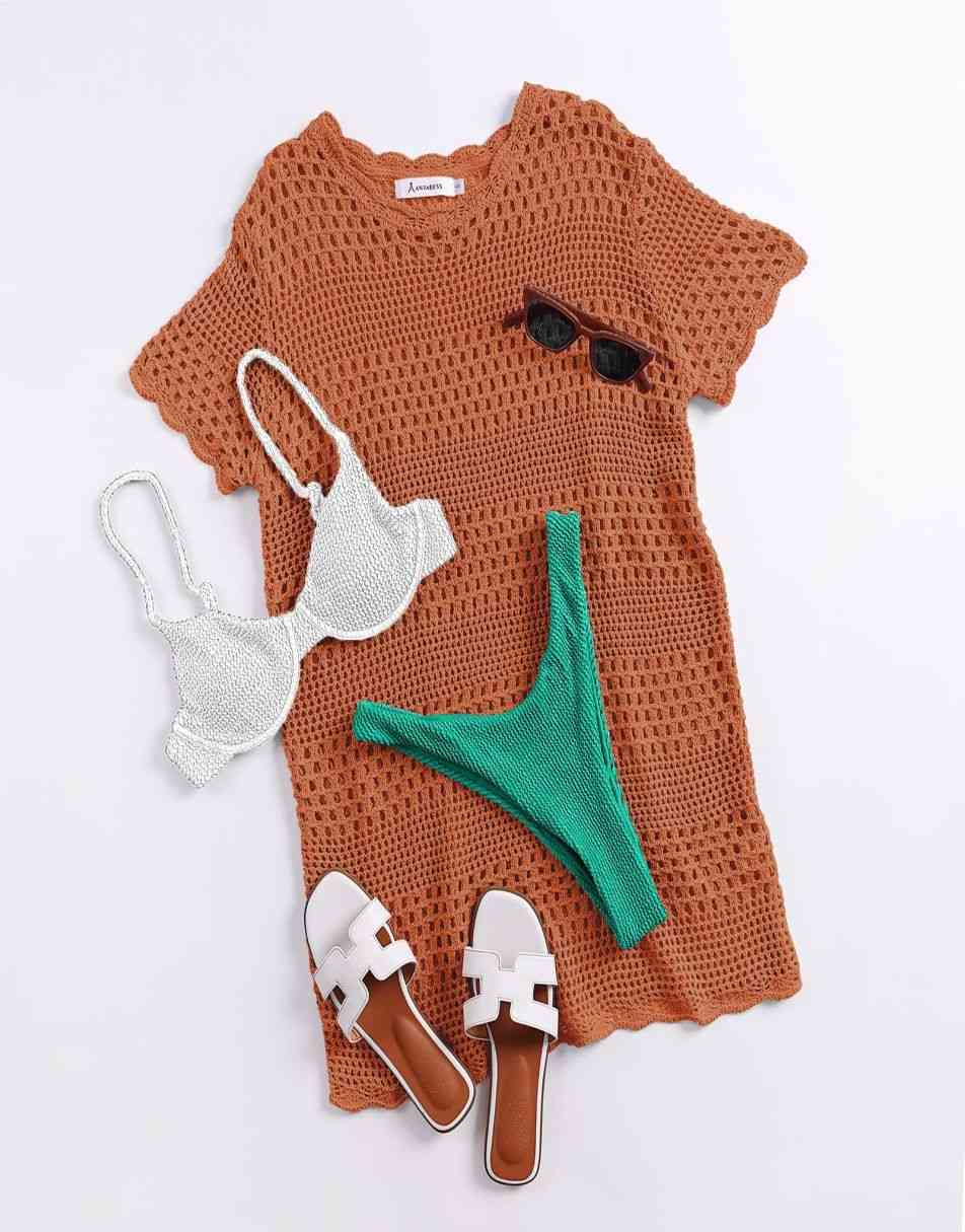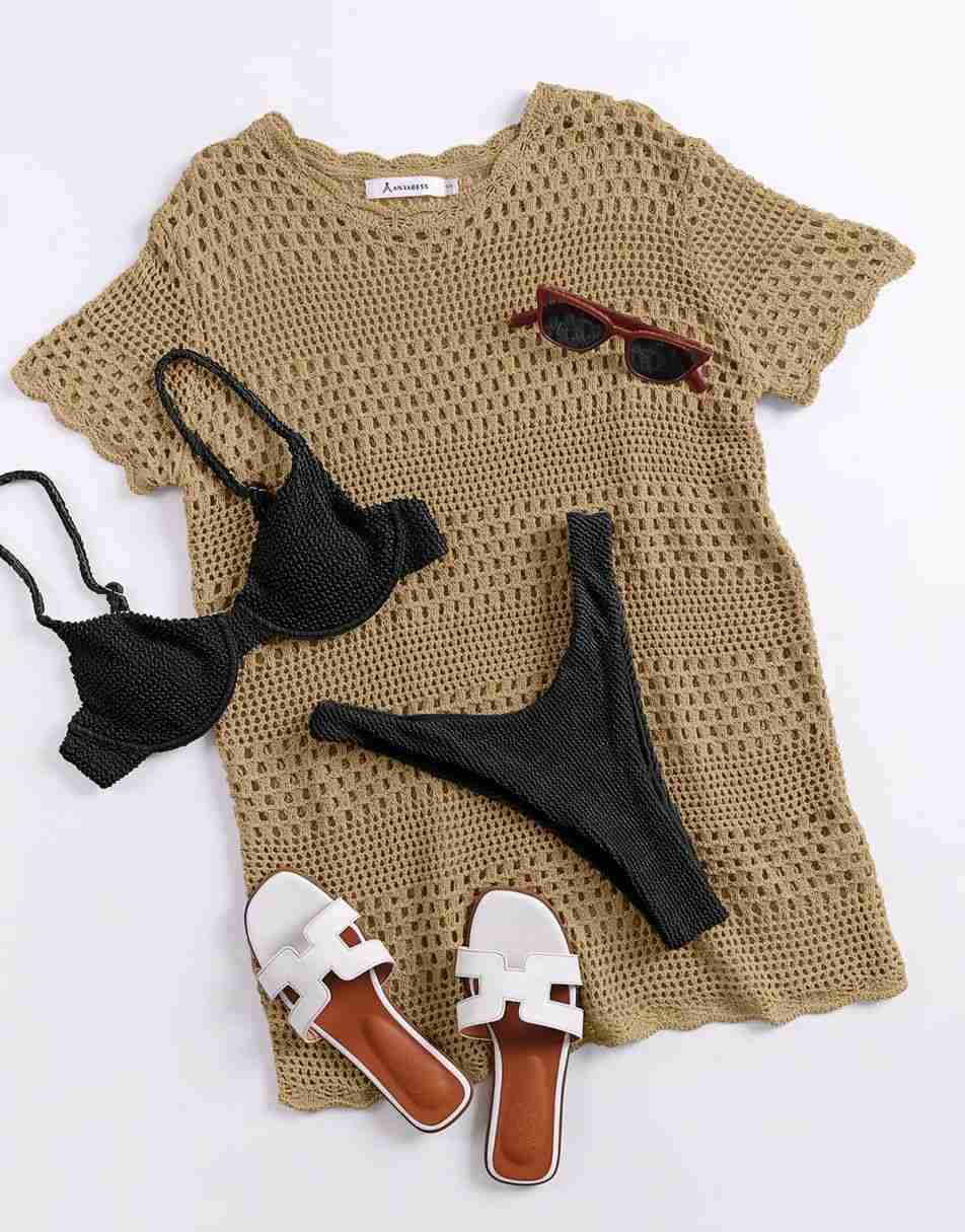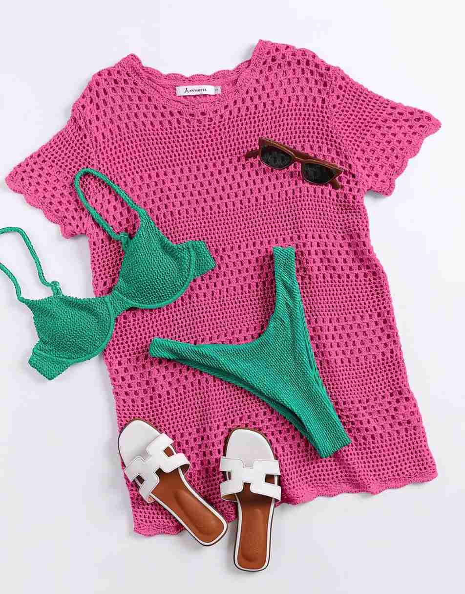 - Chic Design - Our hollow out mini dress features a round neck, short sleeves, and a knit crochet swimsuit that is both elegant and classy. It adds the perfect touch of sophistication to your beachwear.
