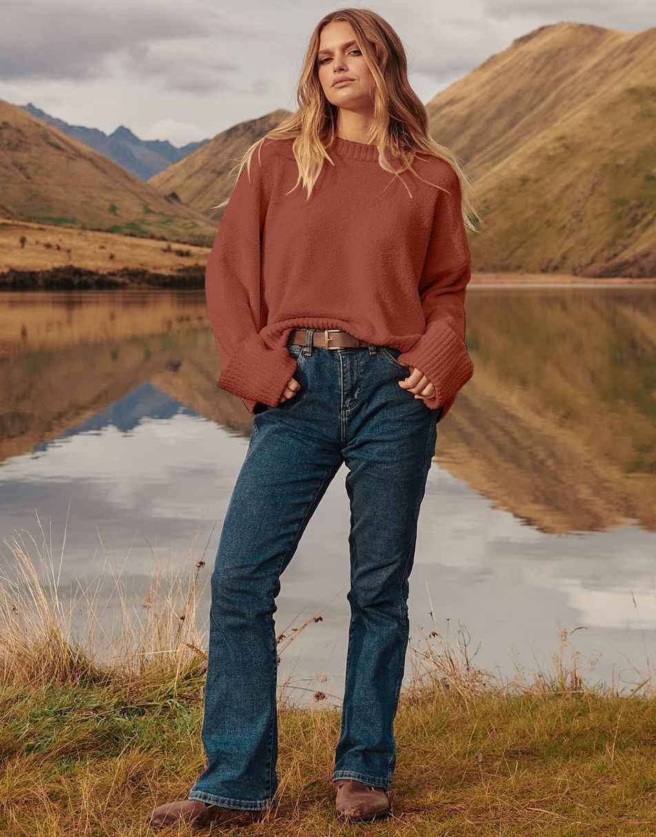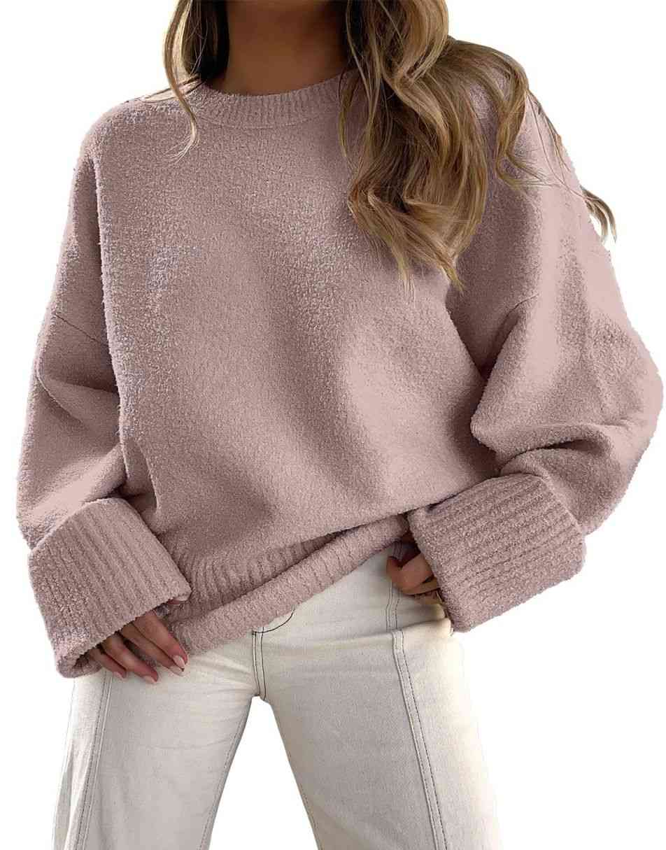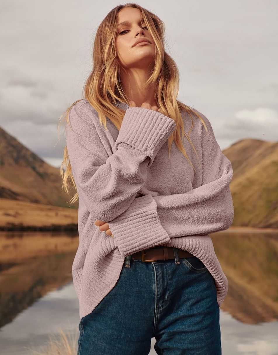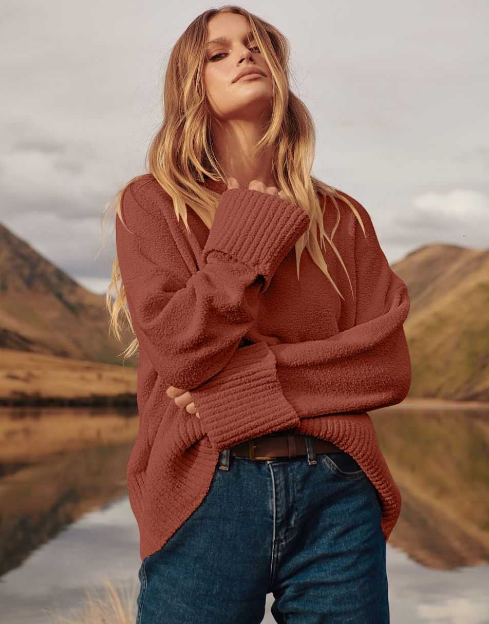 • ANRABESS Women's Crewneck Long Sleeve Oversized Fuzzy Knit Chunky Warm Pullover Sweater Top