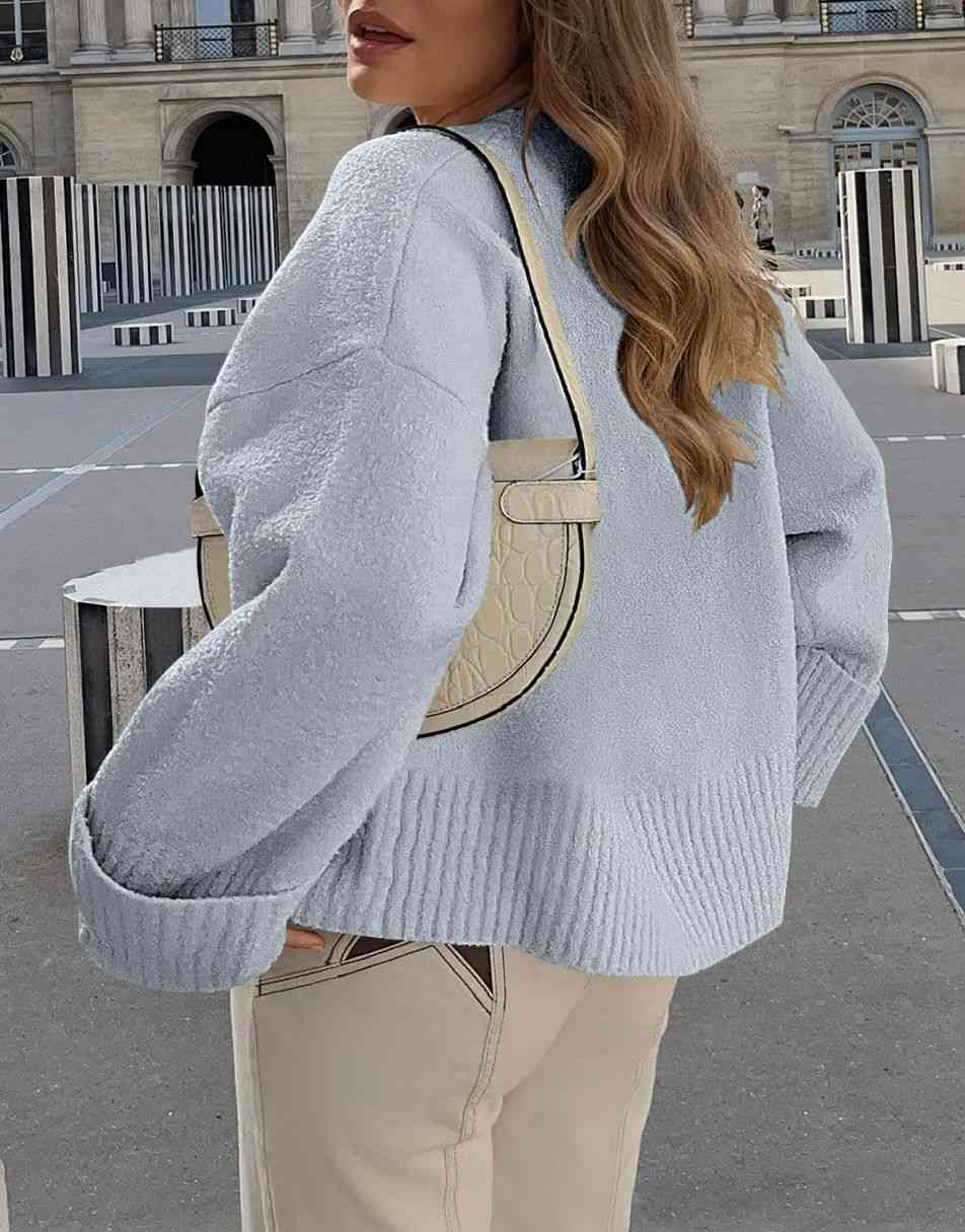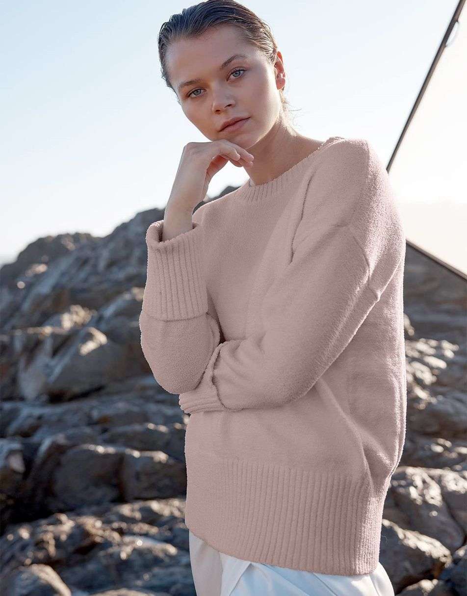 • Design - crew neck锛�long sleeve锛�ribbed cuff,solid color锛�oversized style,fuzzy knit sweater.