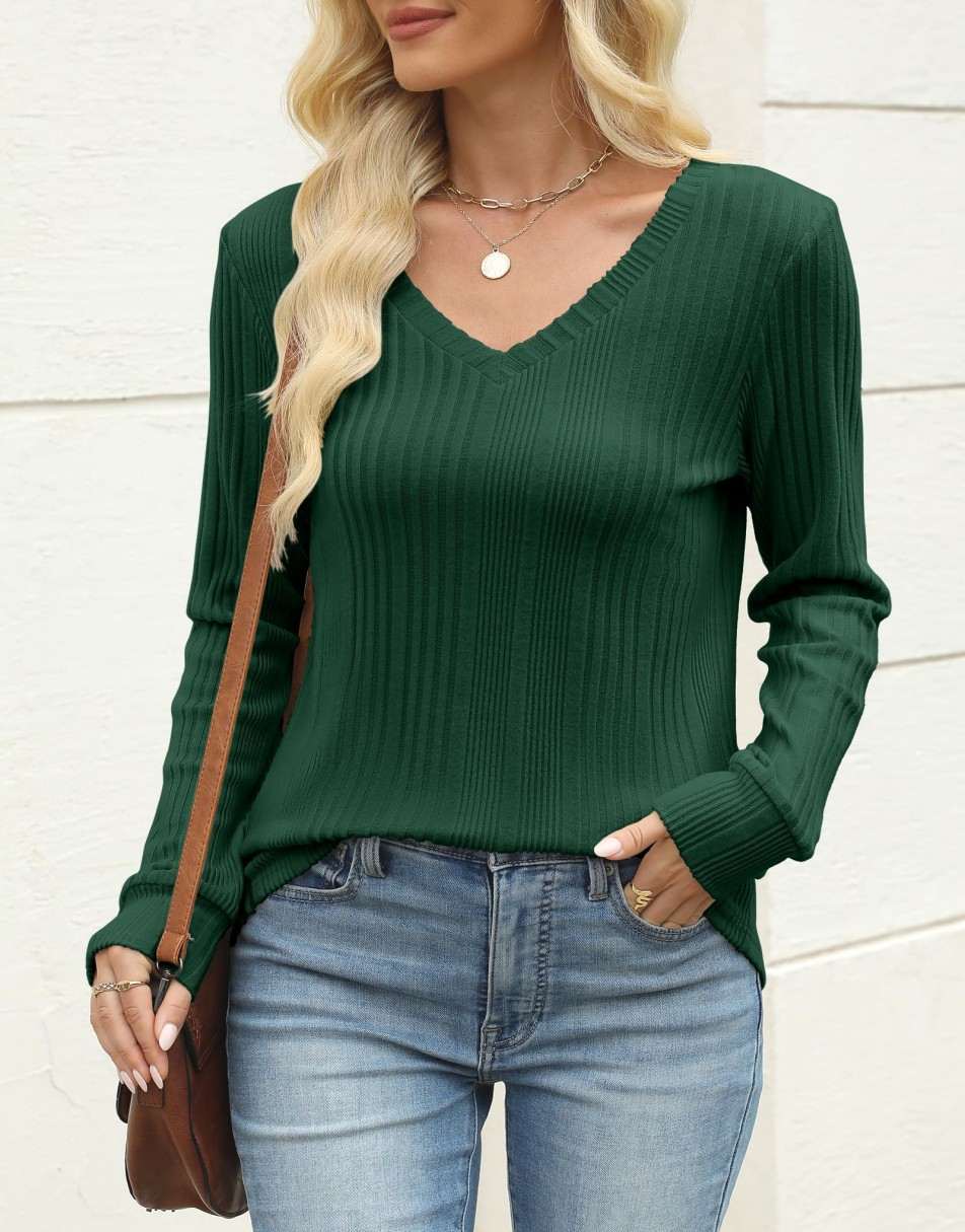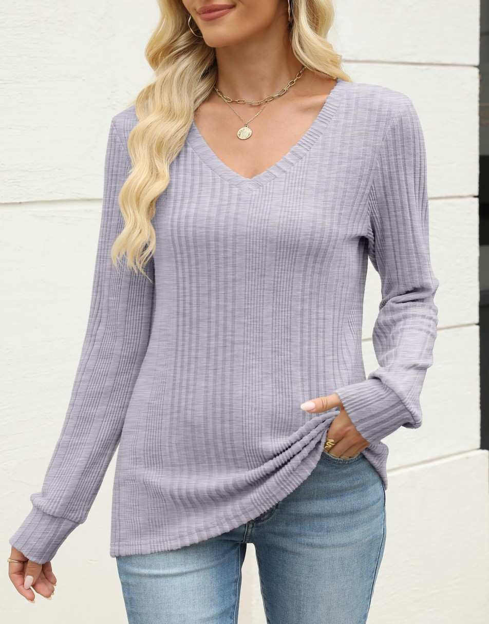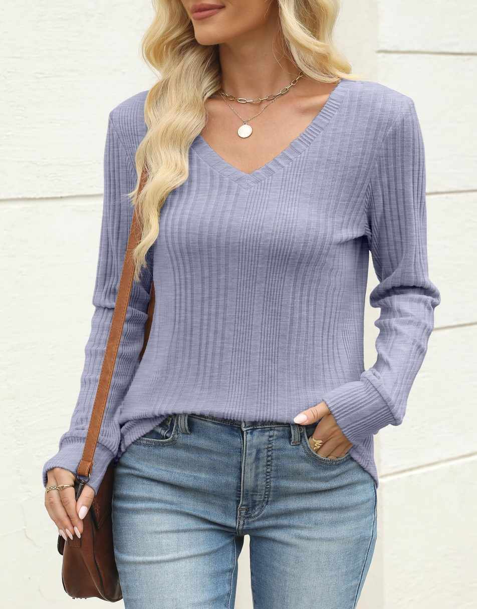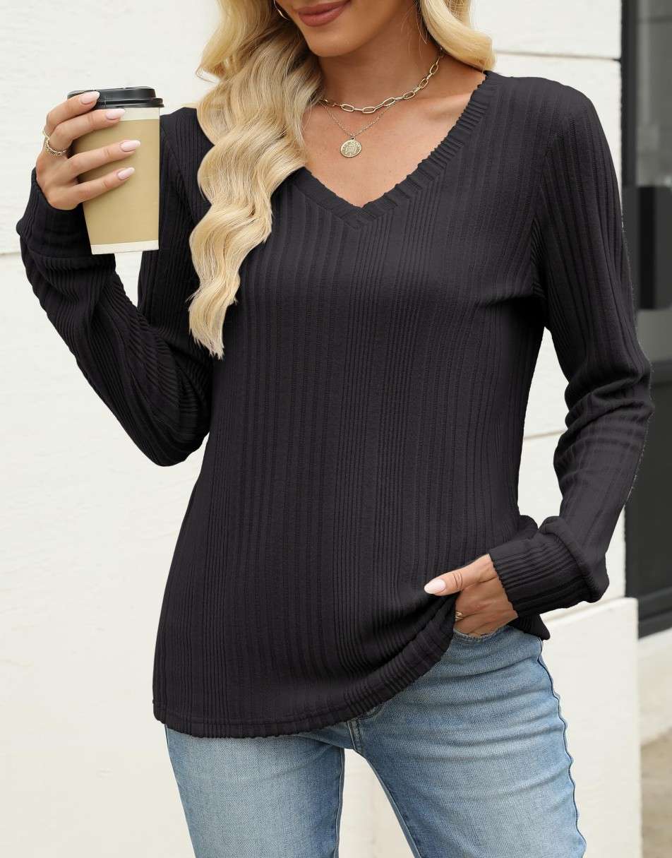 - Features - Women's Casual lightweight sweater, v neck, long sleeve shirts, irregular pit strips fabric tops.The women tops great for casual daily wear, school, office, work, shopping, vacation, travel, going out. The lightweight sweater goes well with jeans, shorts, leggings, or skirts.